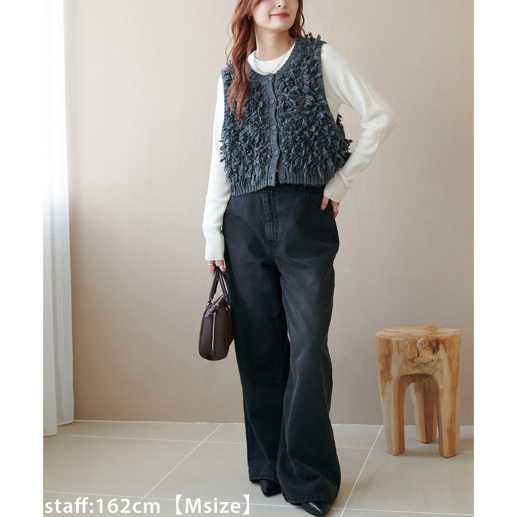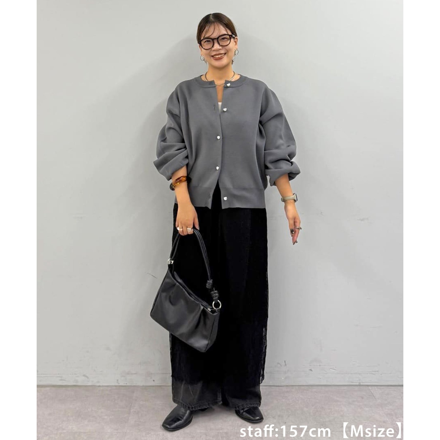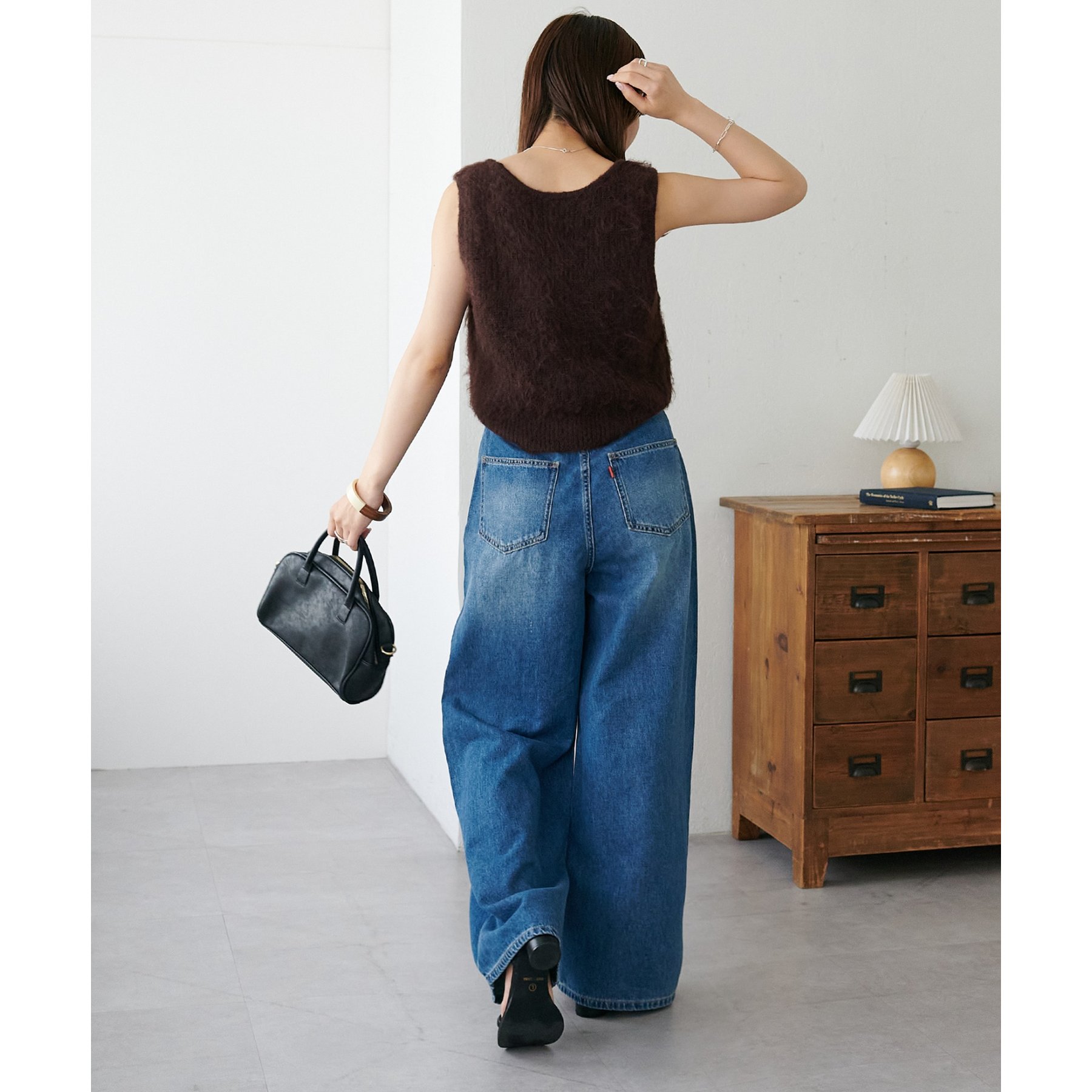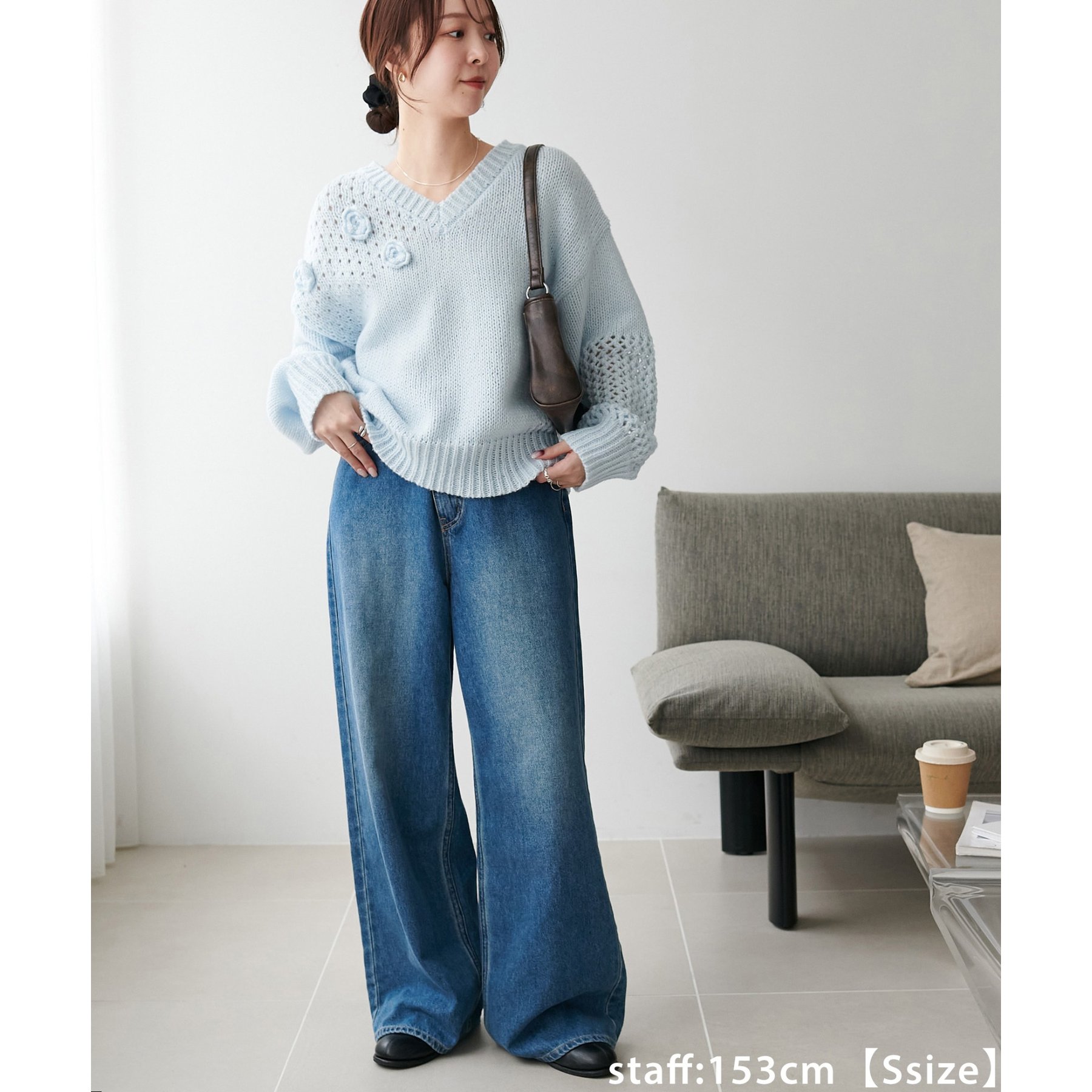 155cmスタッフ(Sサイズ着用):ワイドシルエットなのでコンパクトめなトップスと合わせると全体のバランスがとりやすく、スタイルアップして見えます◎
