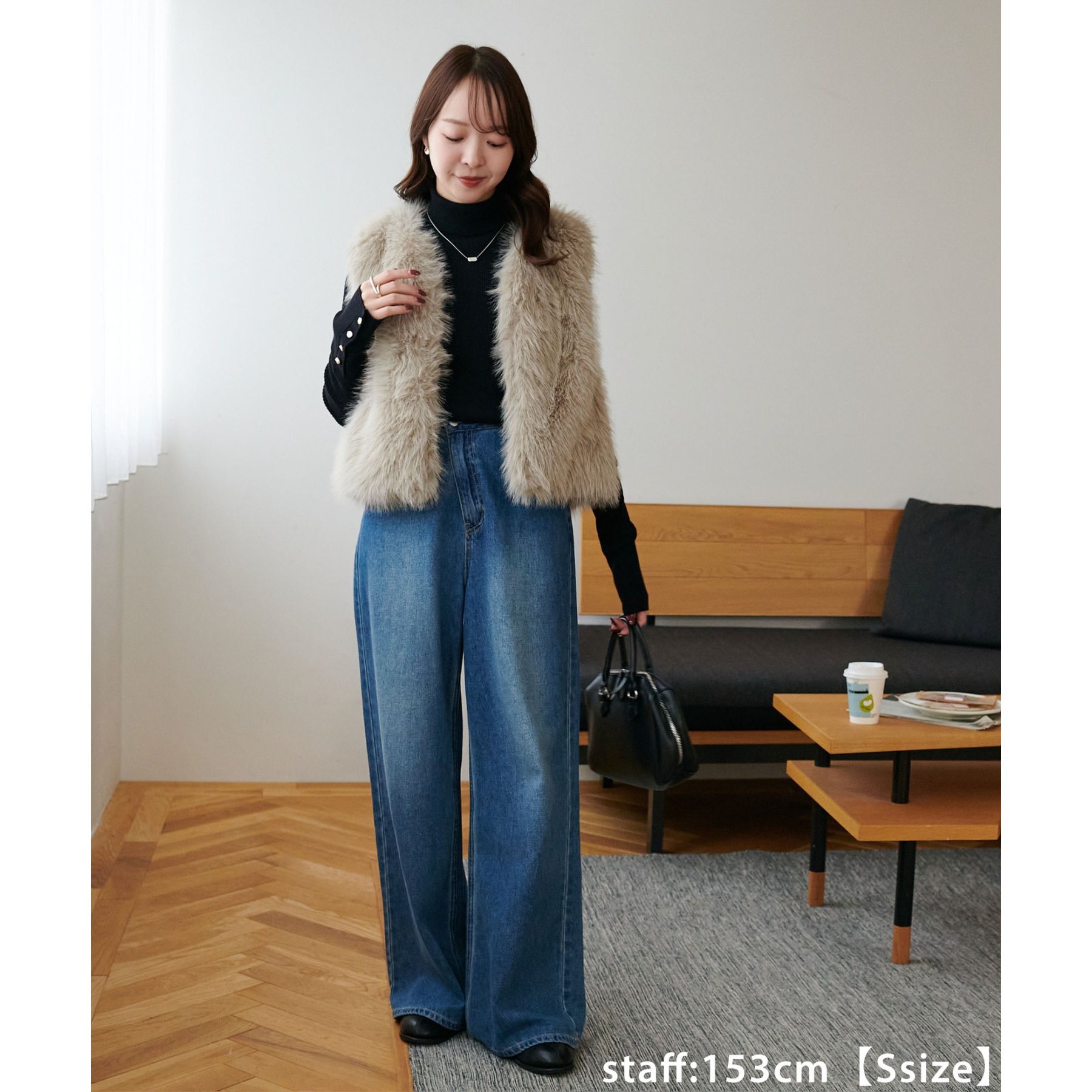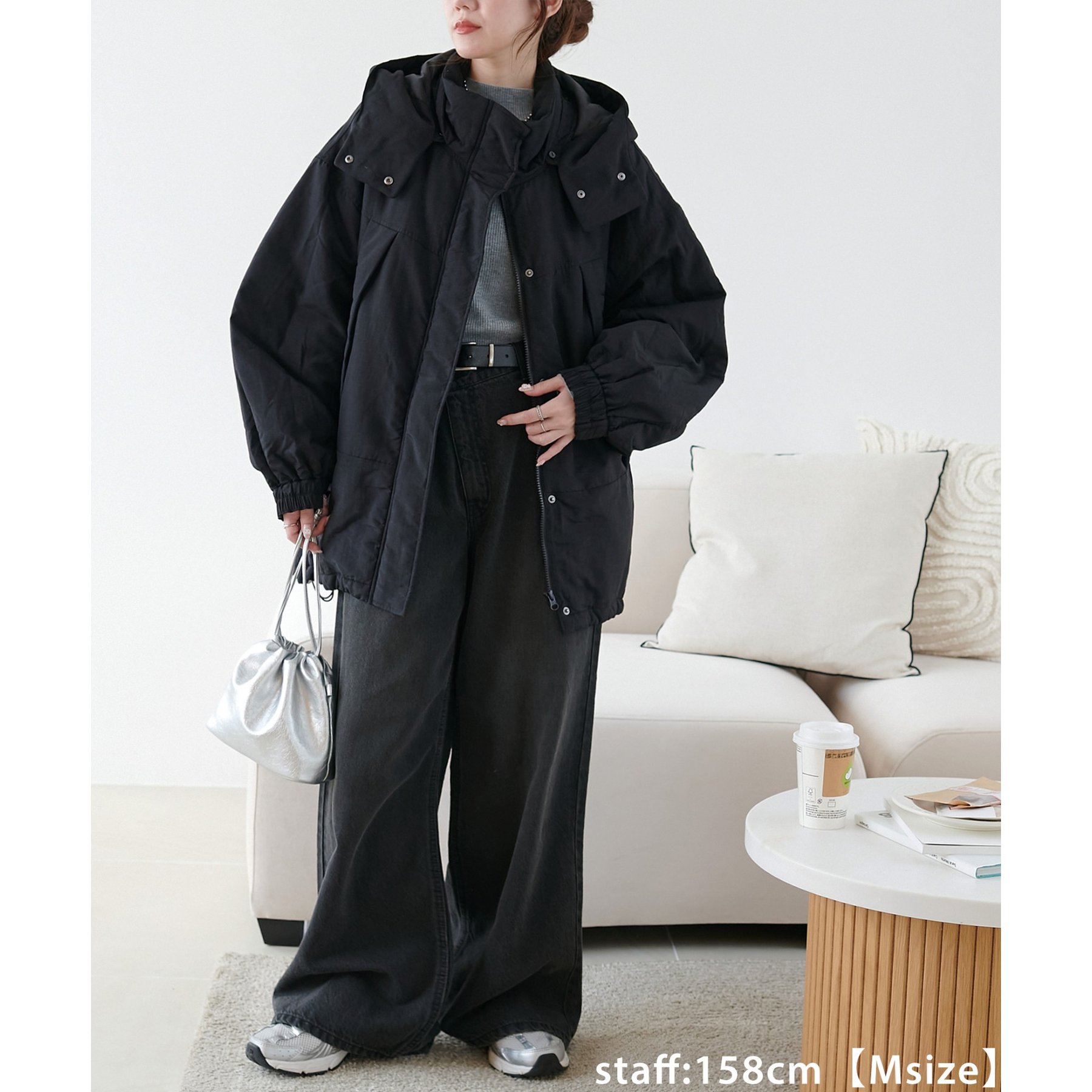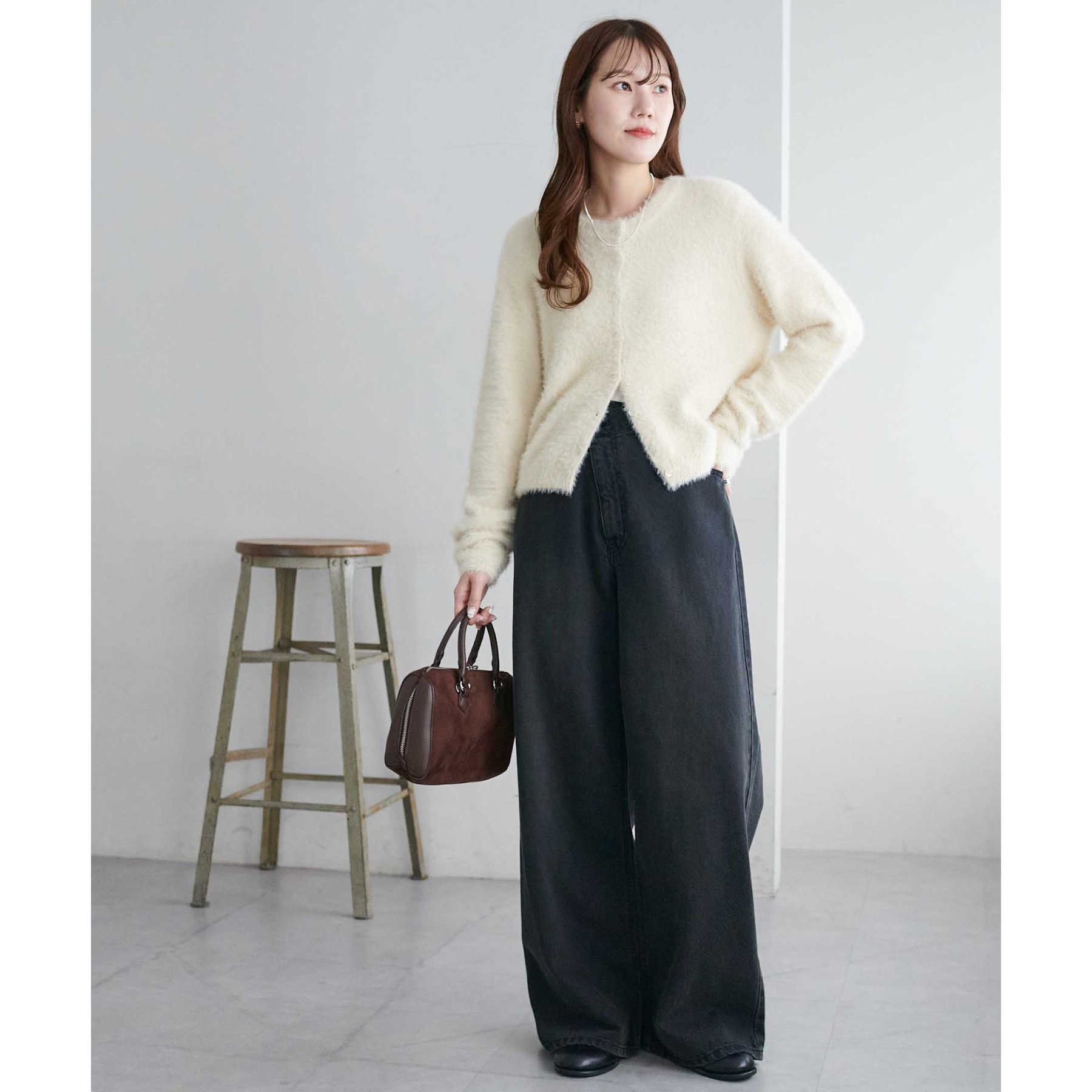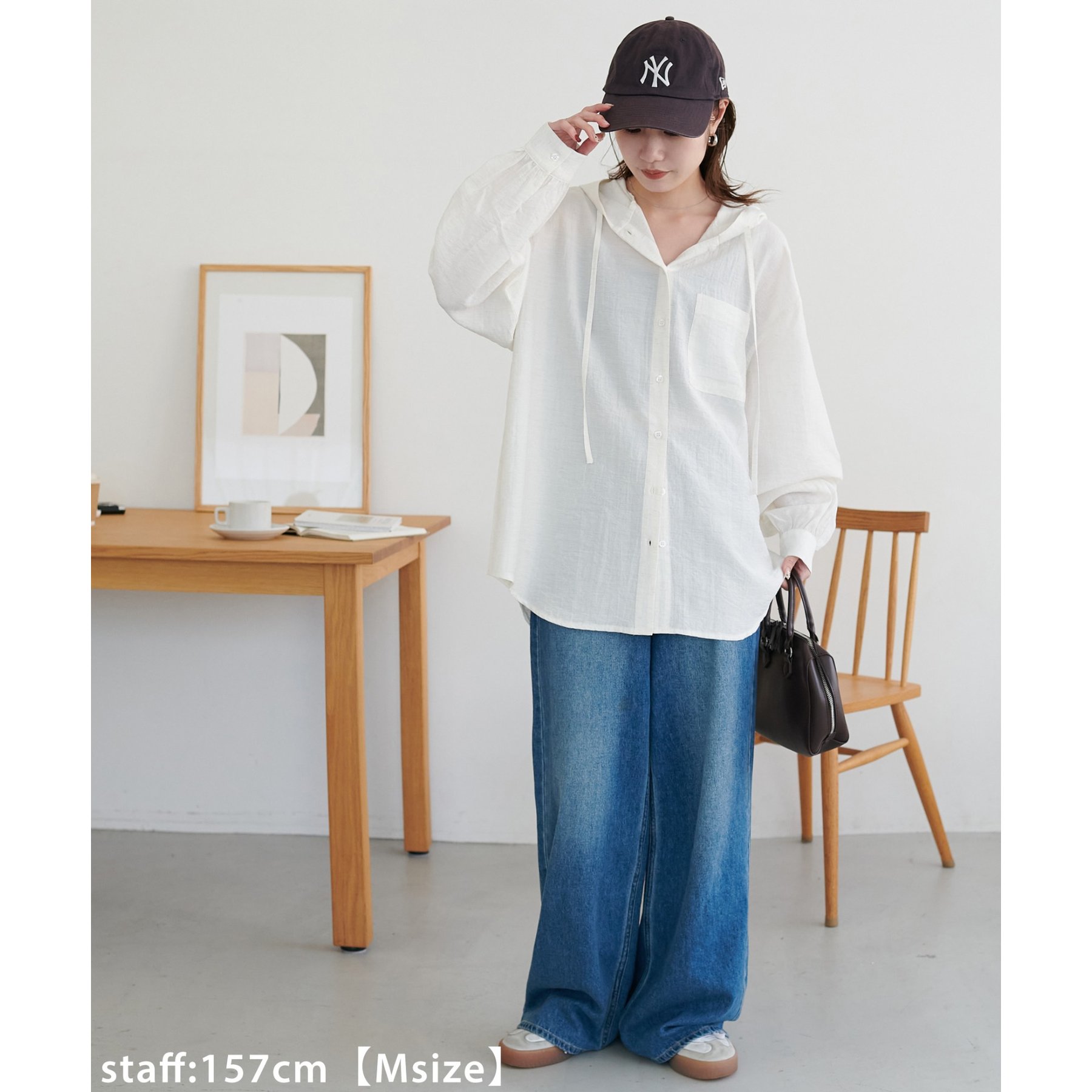155cmスタッフ(Sサイズ着用):ワイドシルエットなのでコンパクトめなトップスと合わせると全体のバランスがとりやすく、スタイルアップして見えます◎