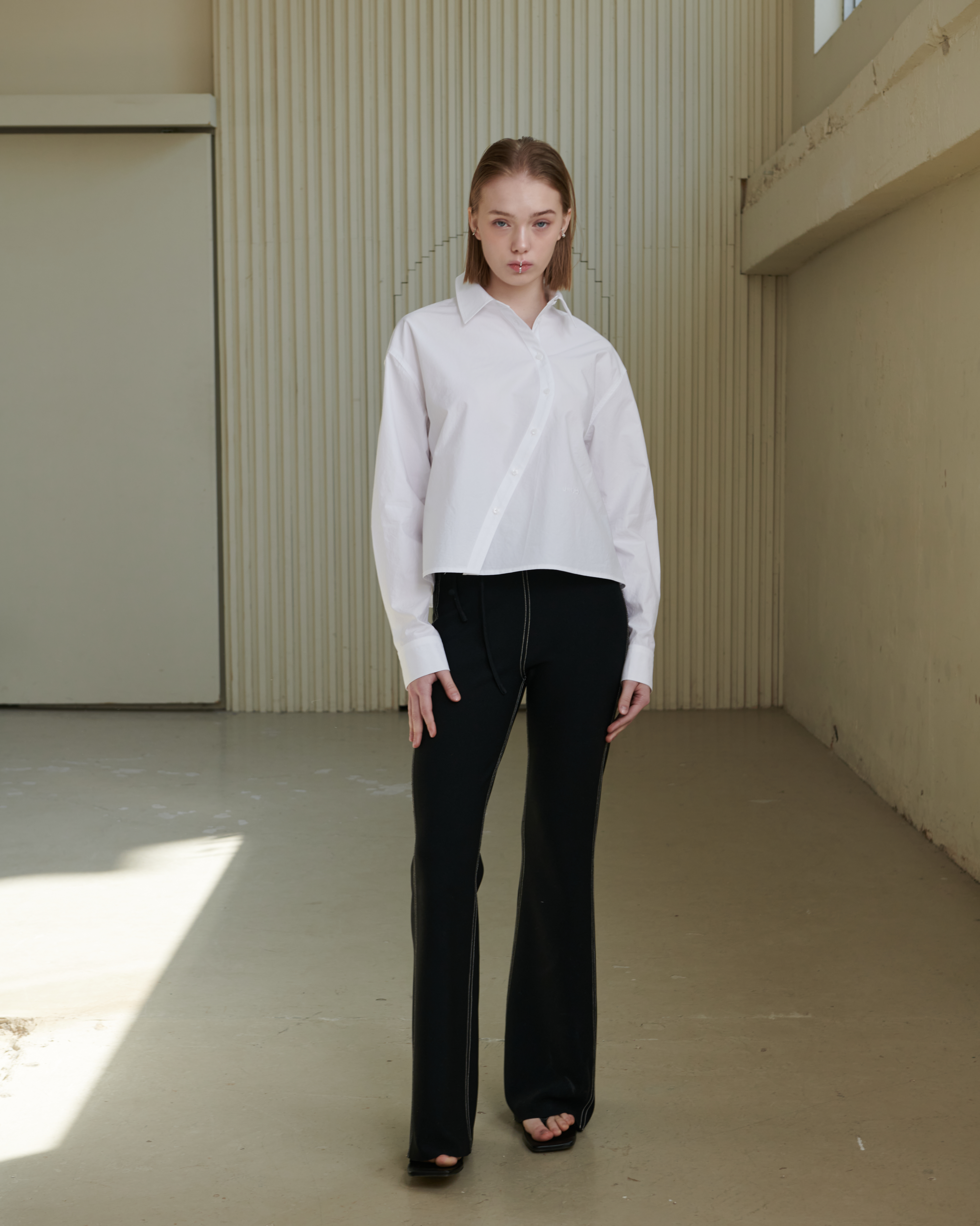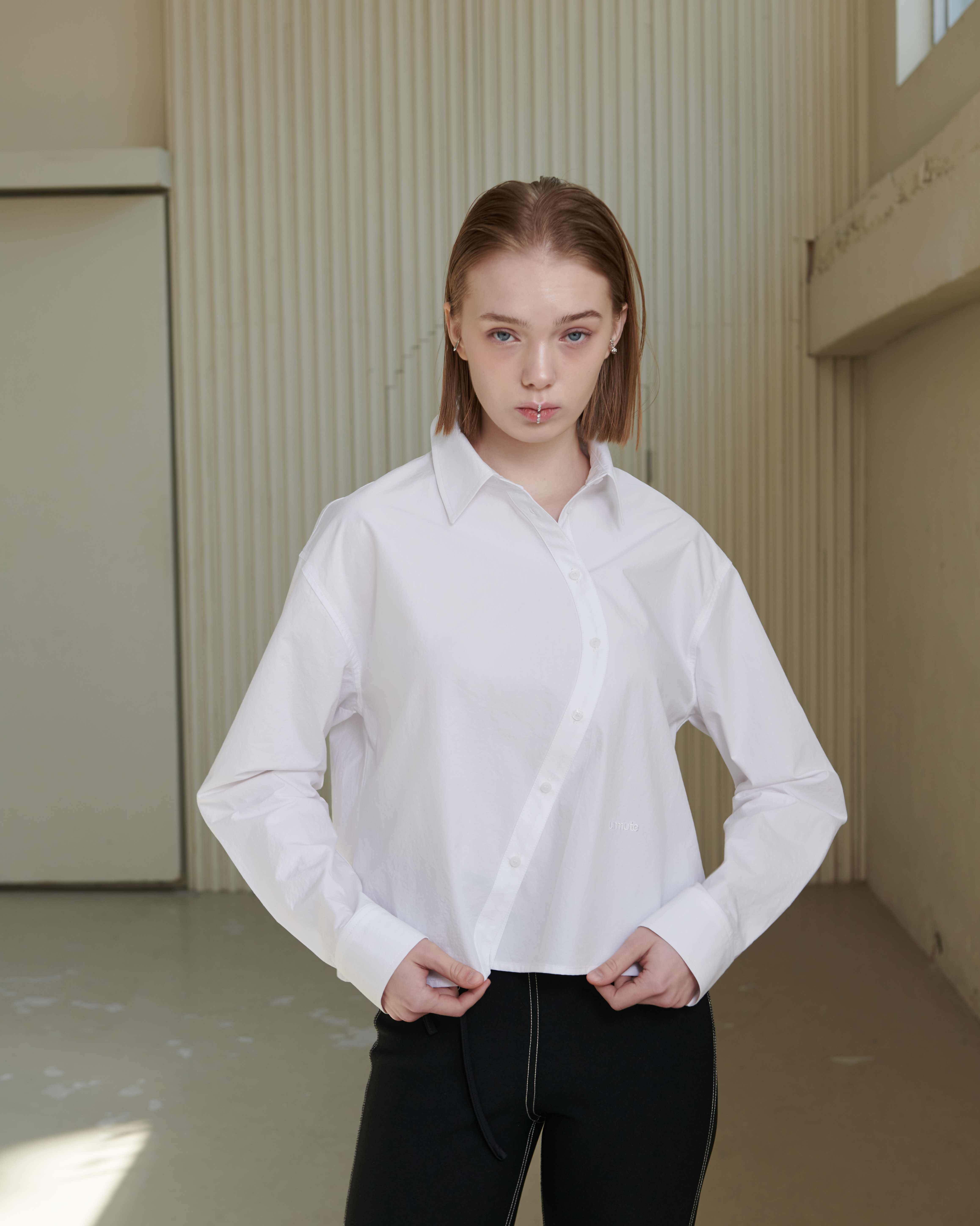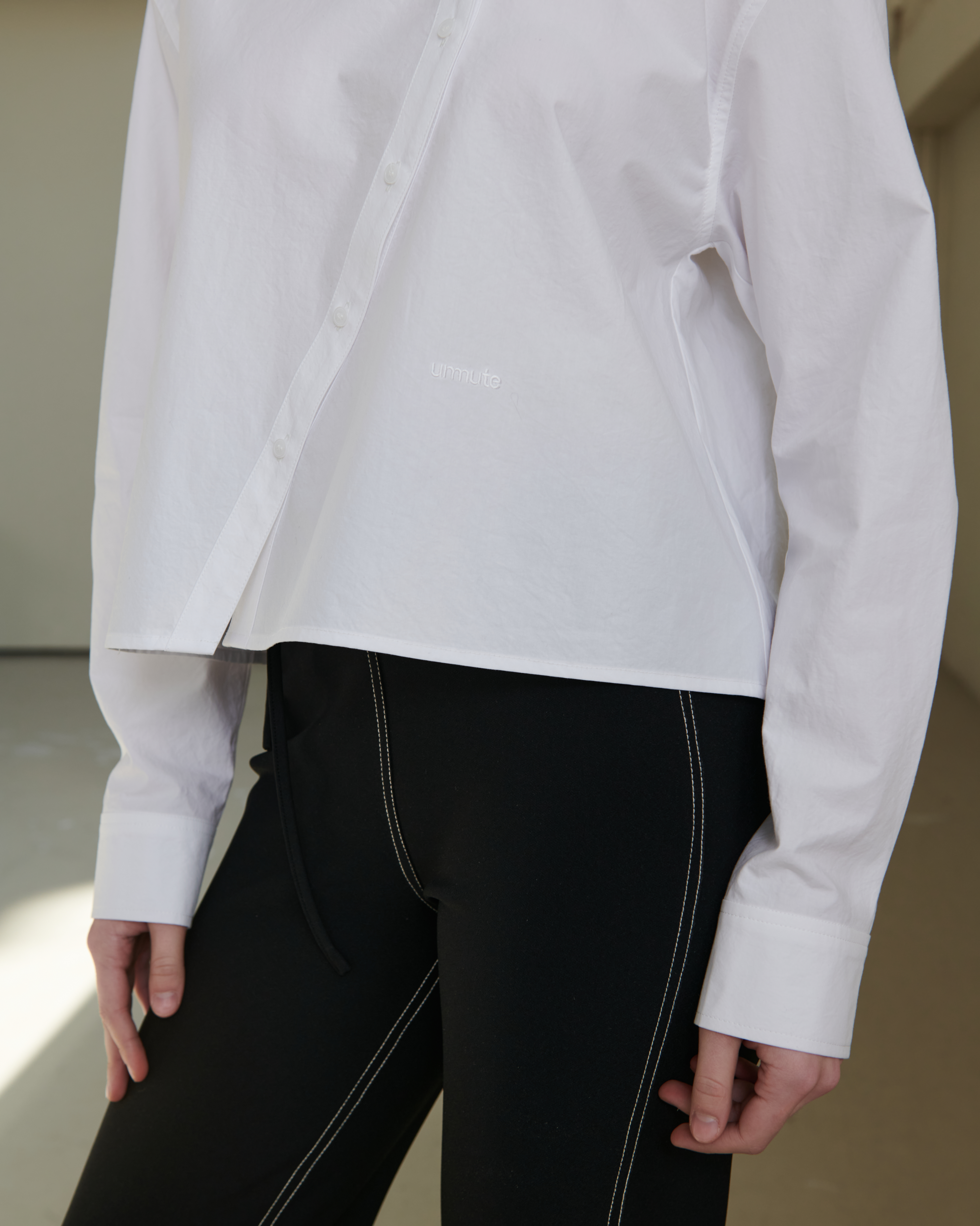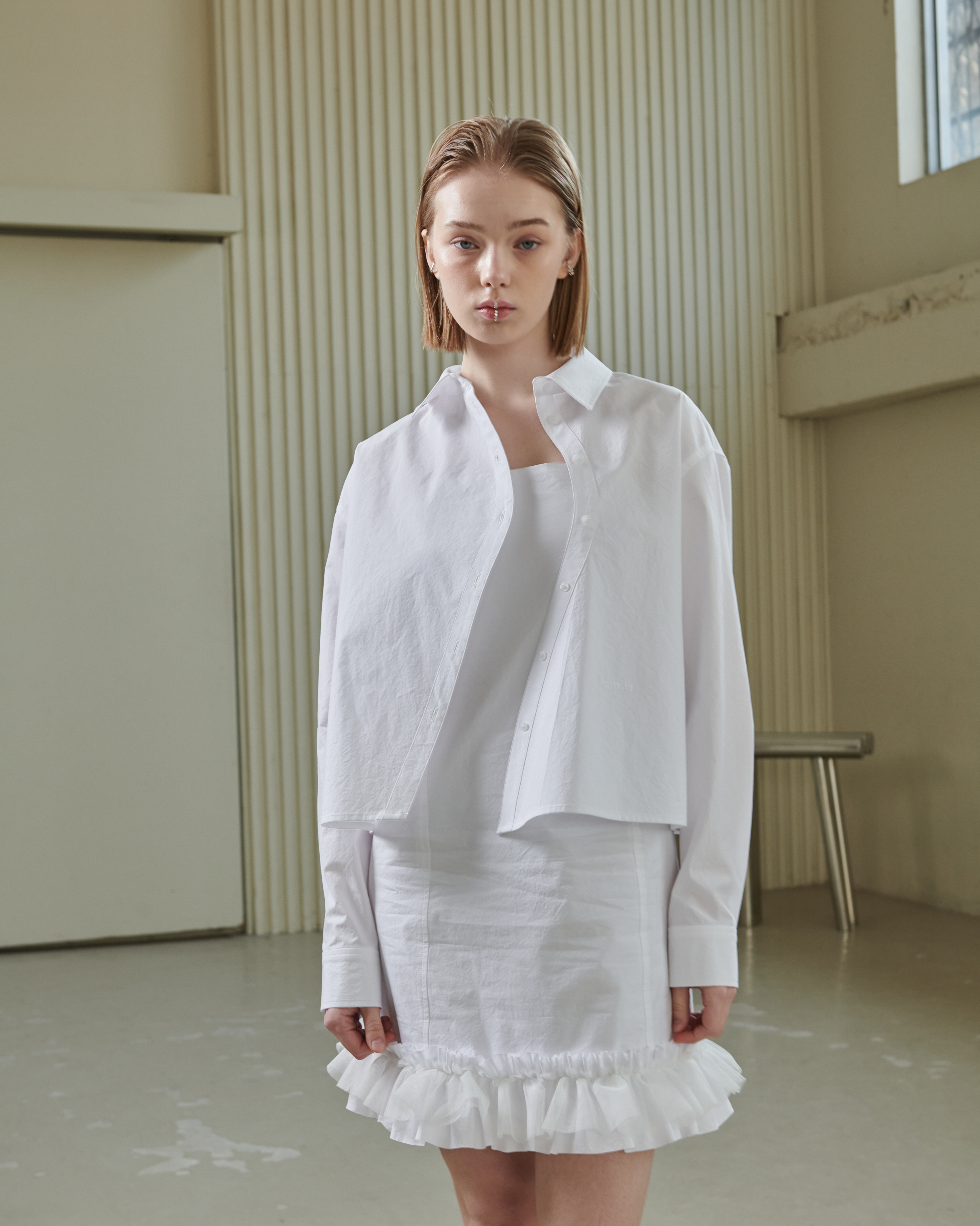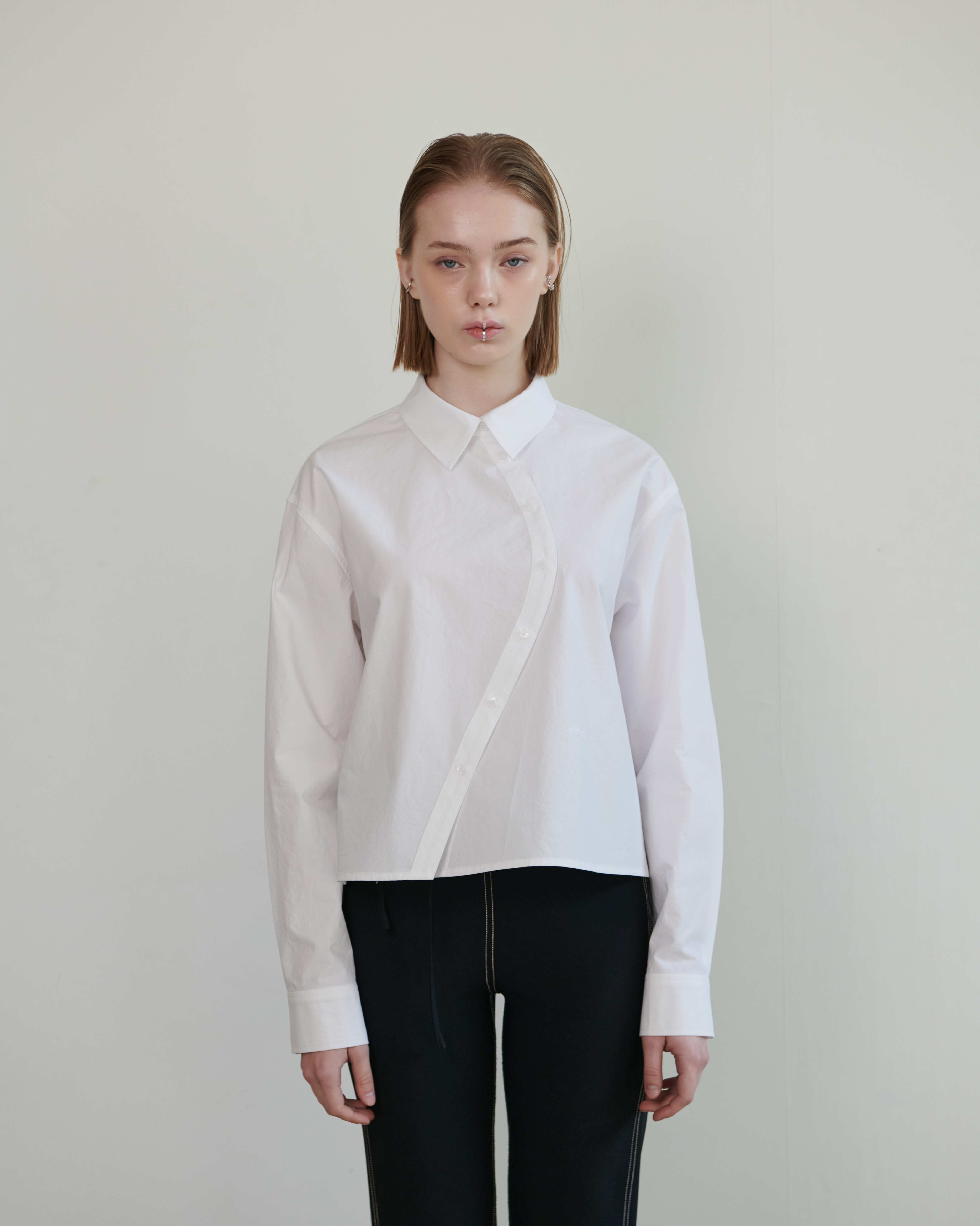 CURVED PLACKET CROPPED SHIRT_WHITE