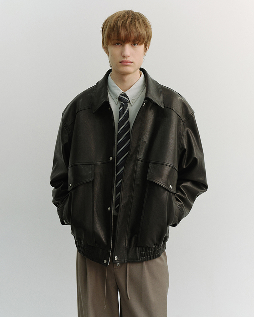 UNISEX OVERSIZED VINTAGE LEATHER BLOUSON BLACK_M_UDJU6A103BK