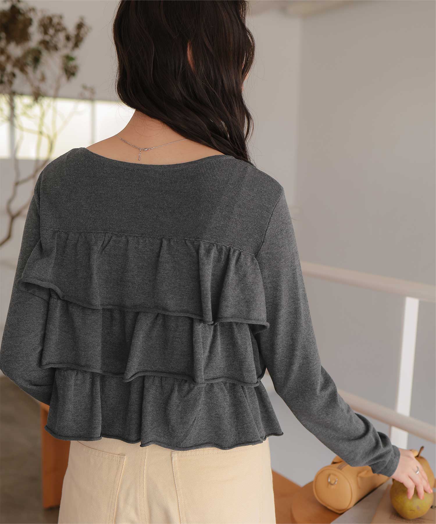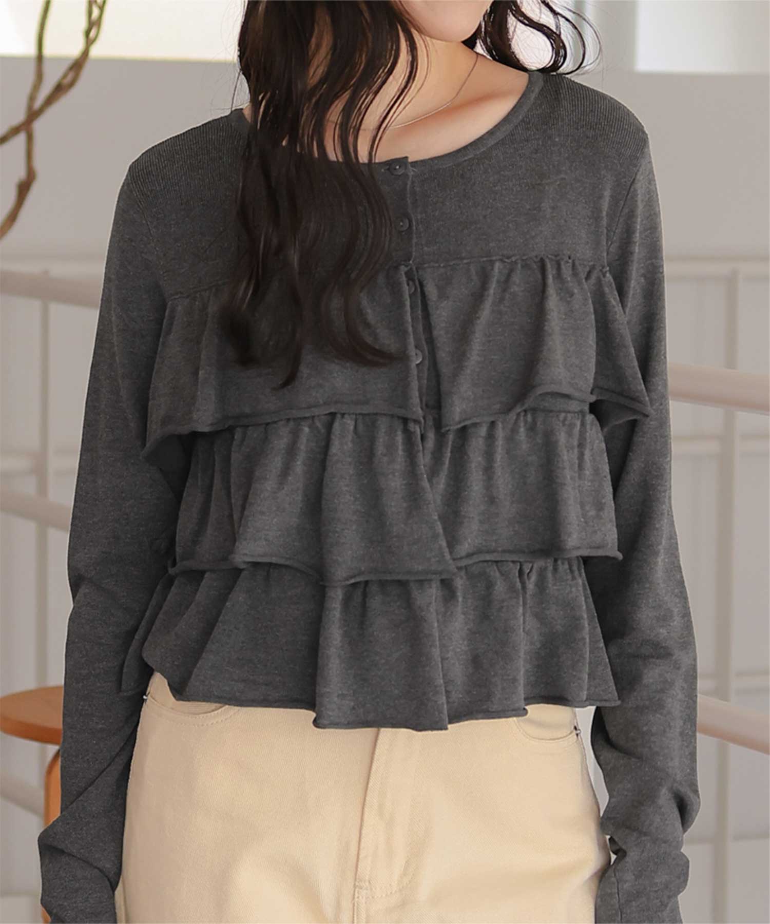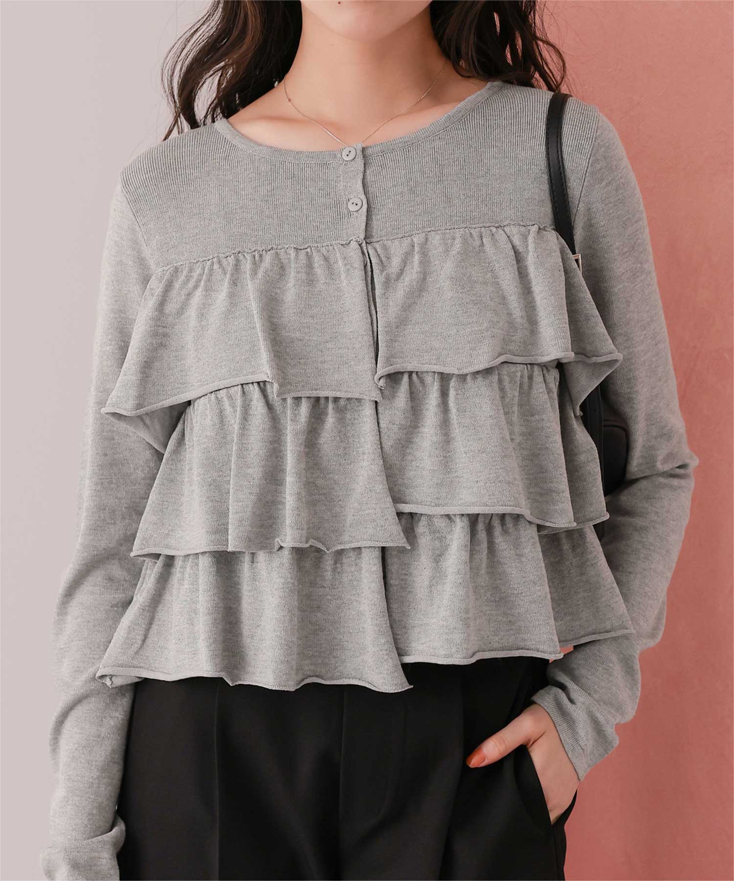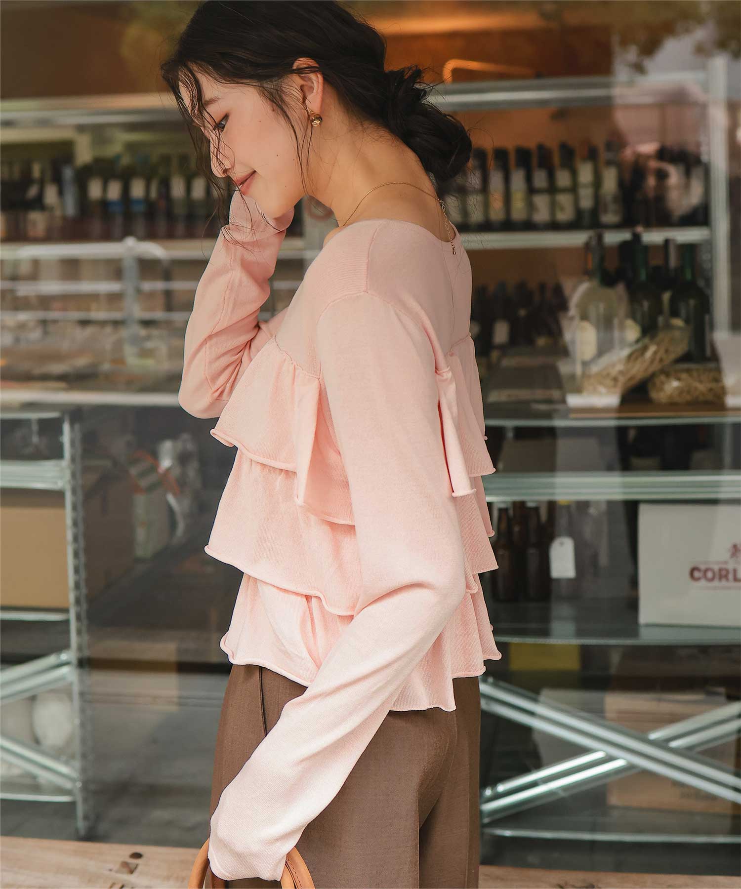 ・段ごとに揺れるティアードフリルが視線を奪う、1枚で着映える華やぎニット