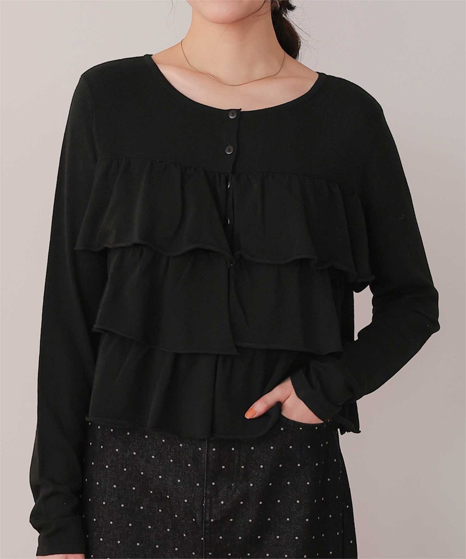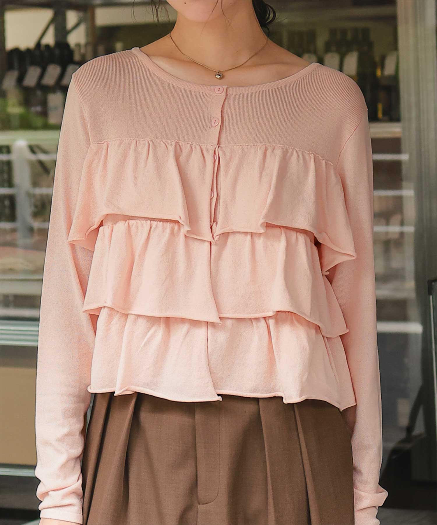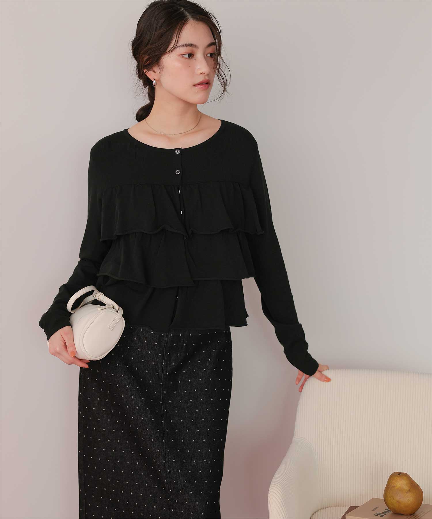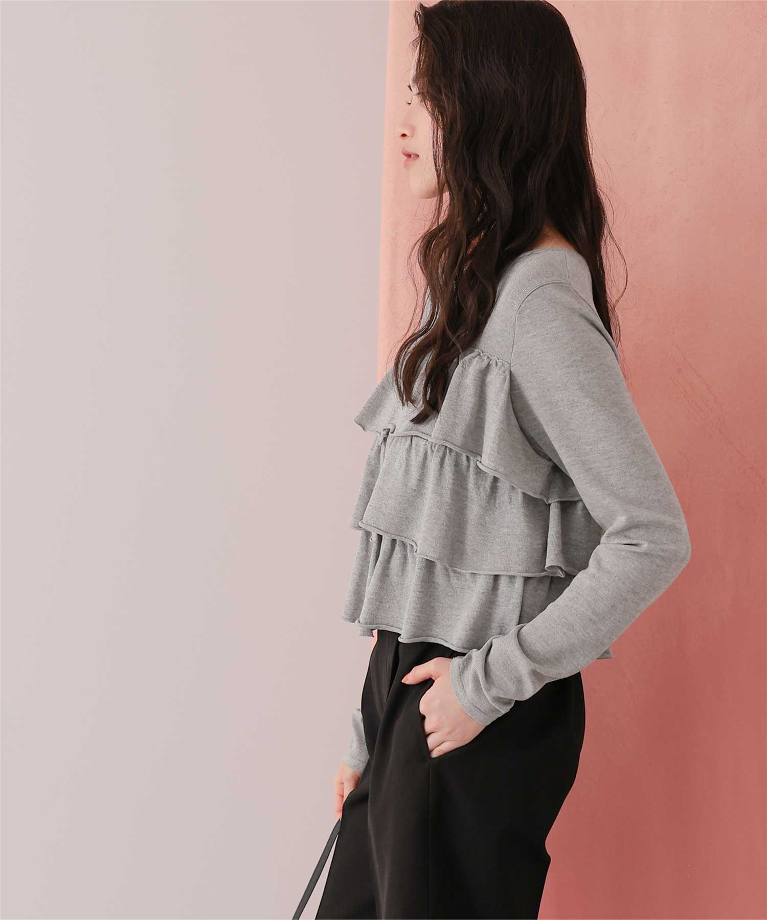 ・段ごとに揺れるティアードフリルが視線を奪う、1枚で着映える華やぎニット