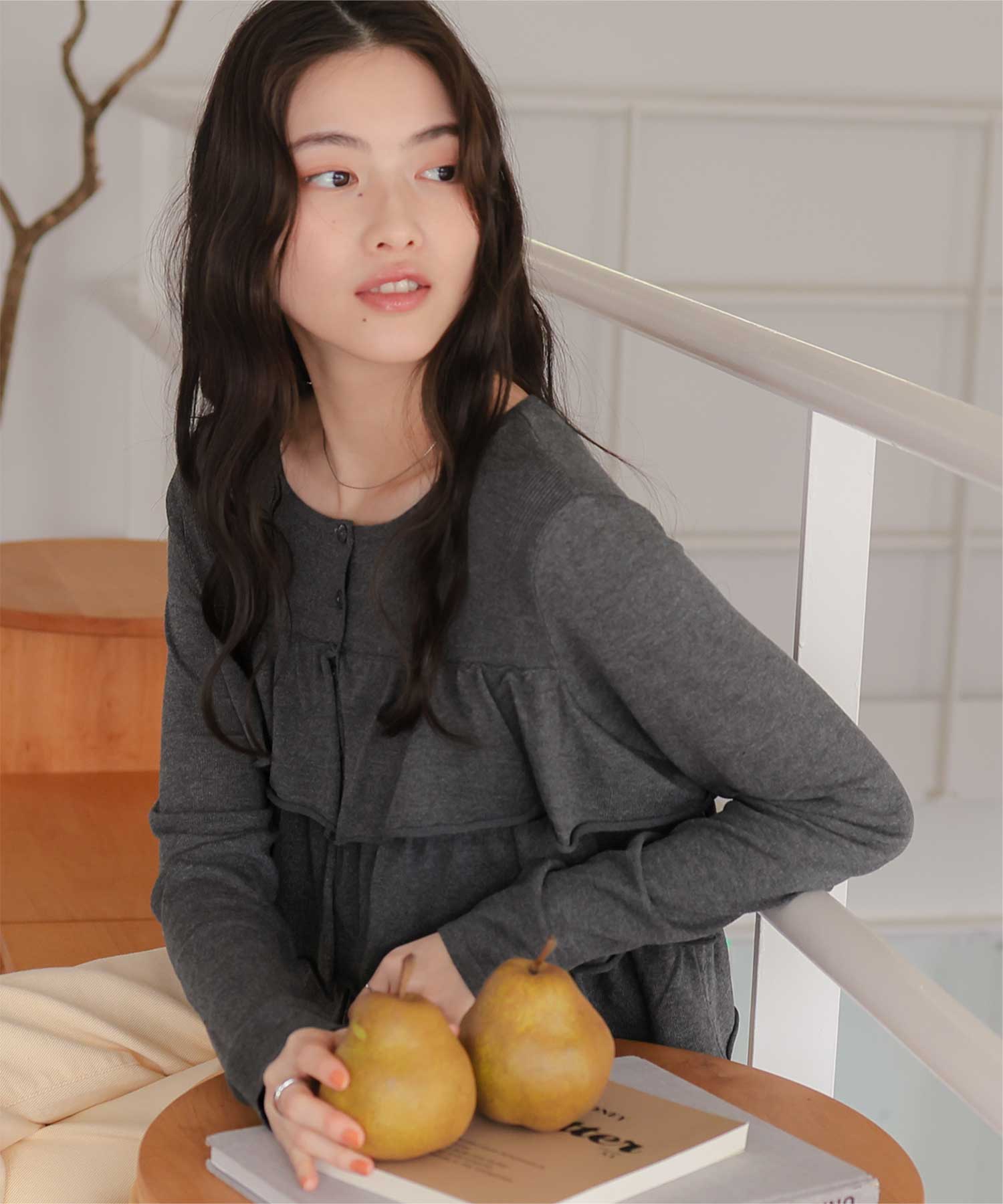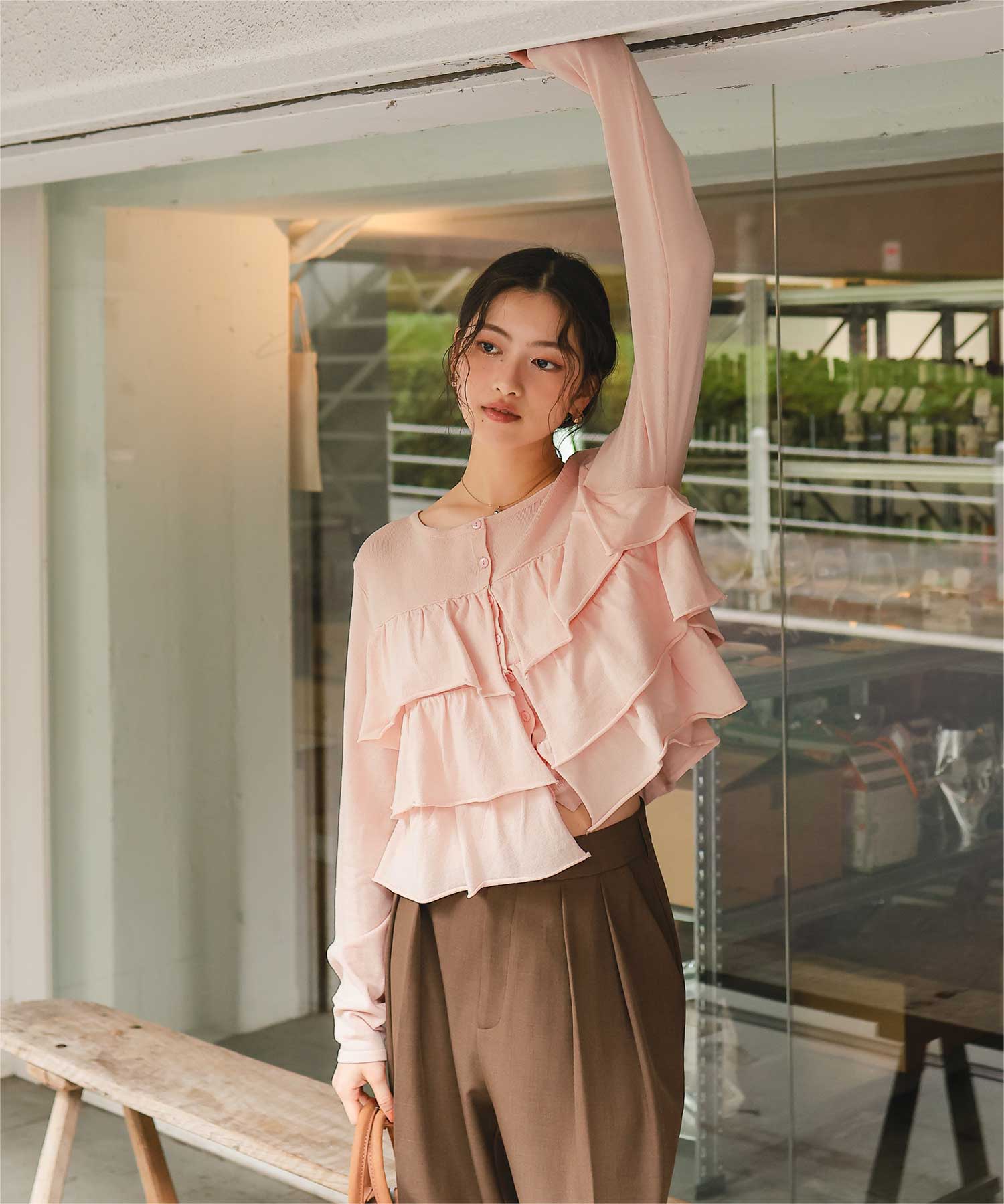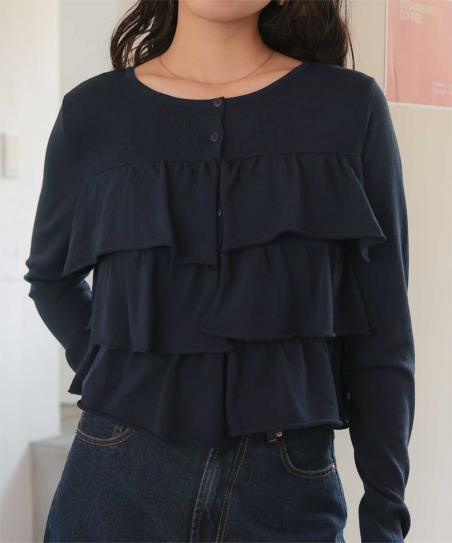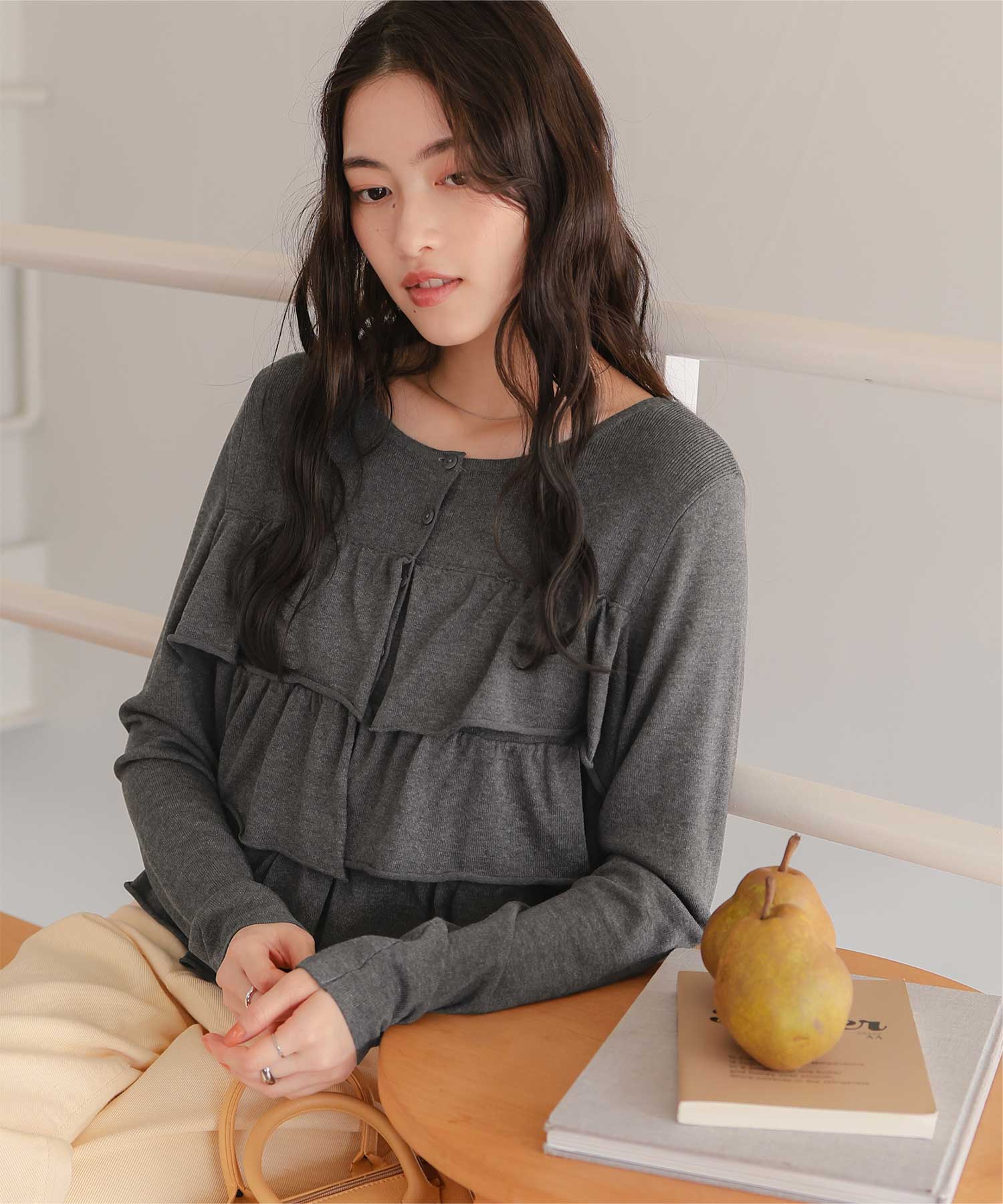 ・段ごとに揺れるティアードフリルが視線を奪う、1枚で着映える華やぎニット