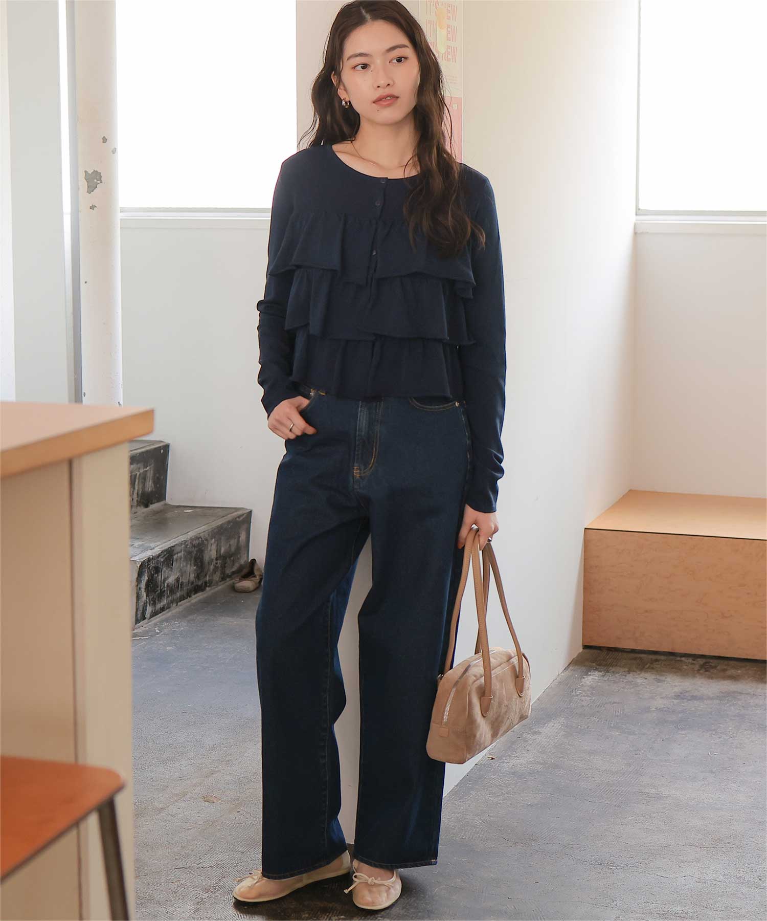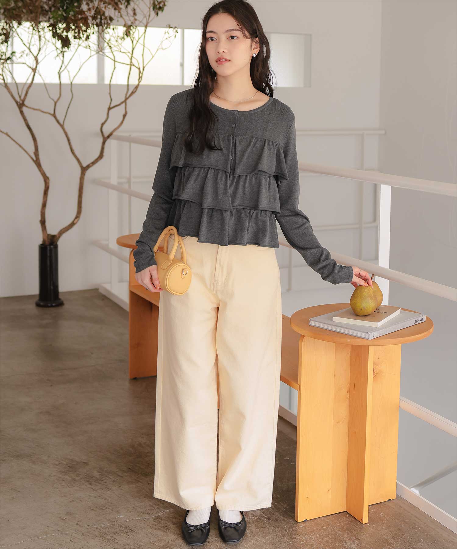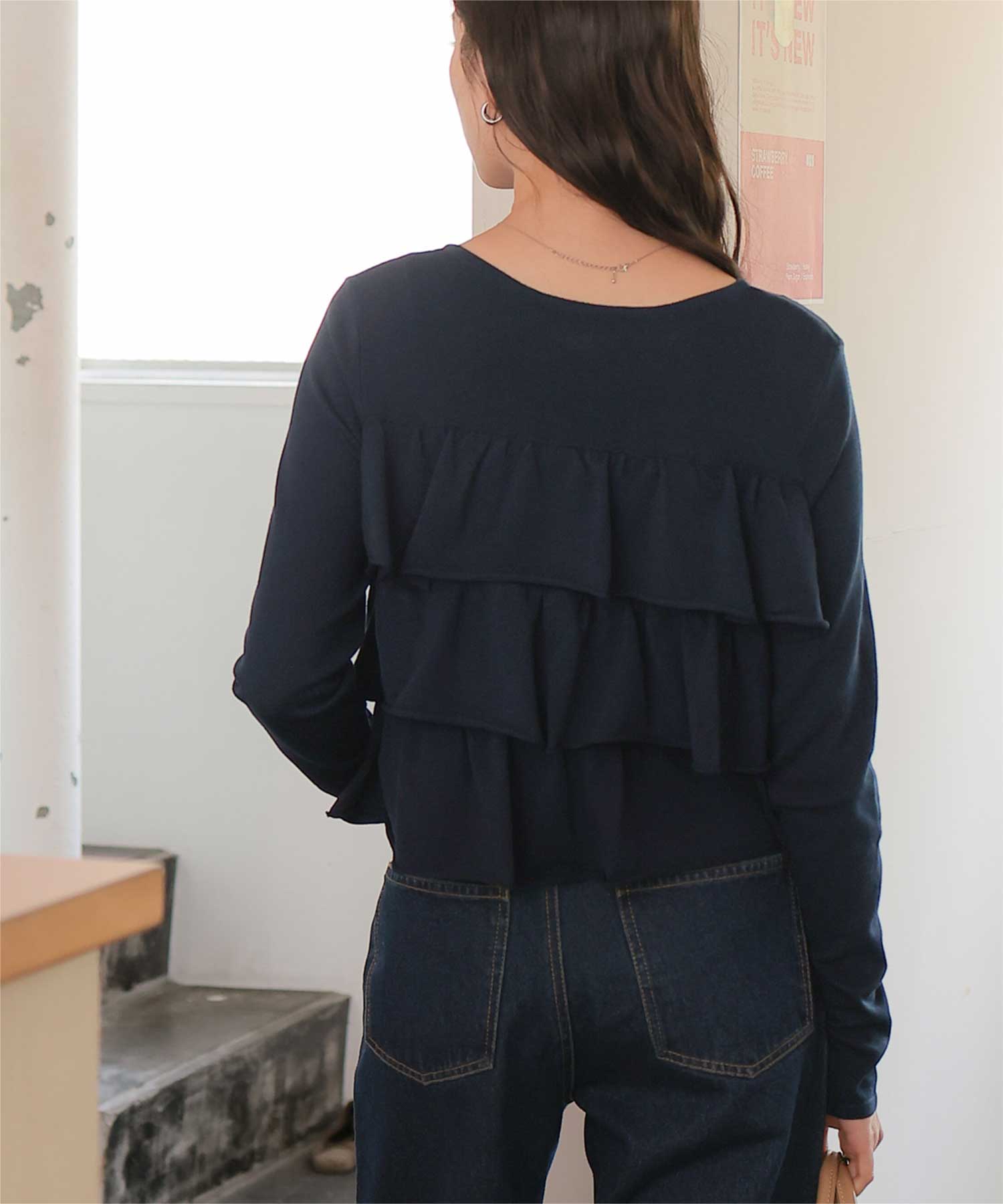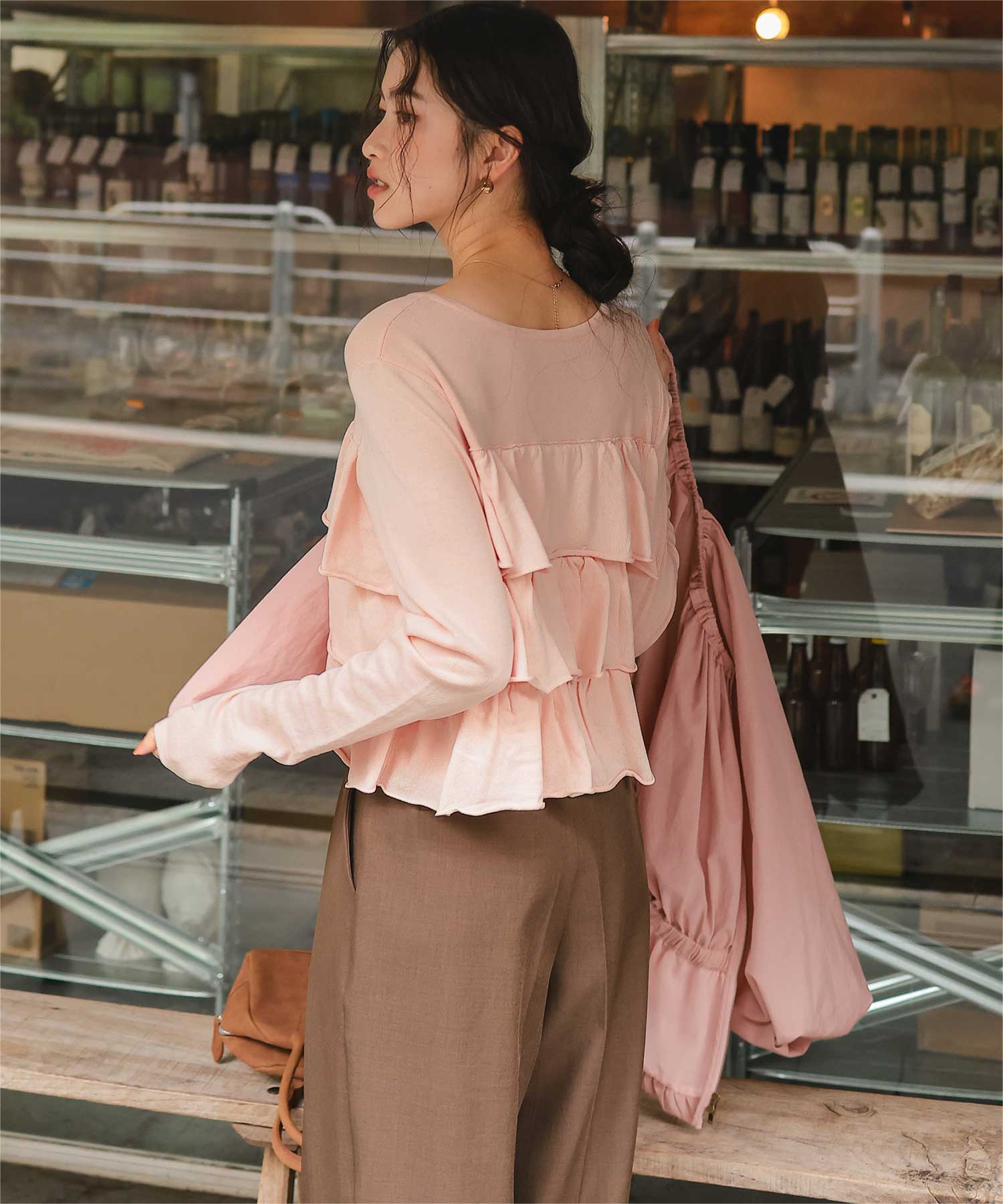 ・段ごとに揺れるティアードフリルが視線を奪う、1枚で着映える華やぎニット