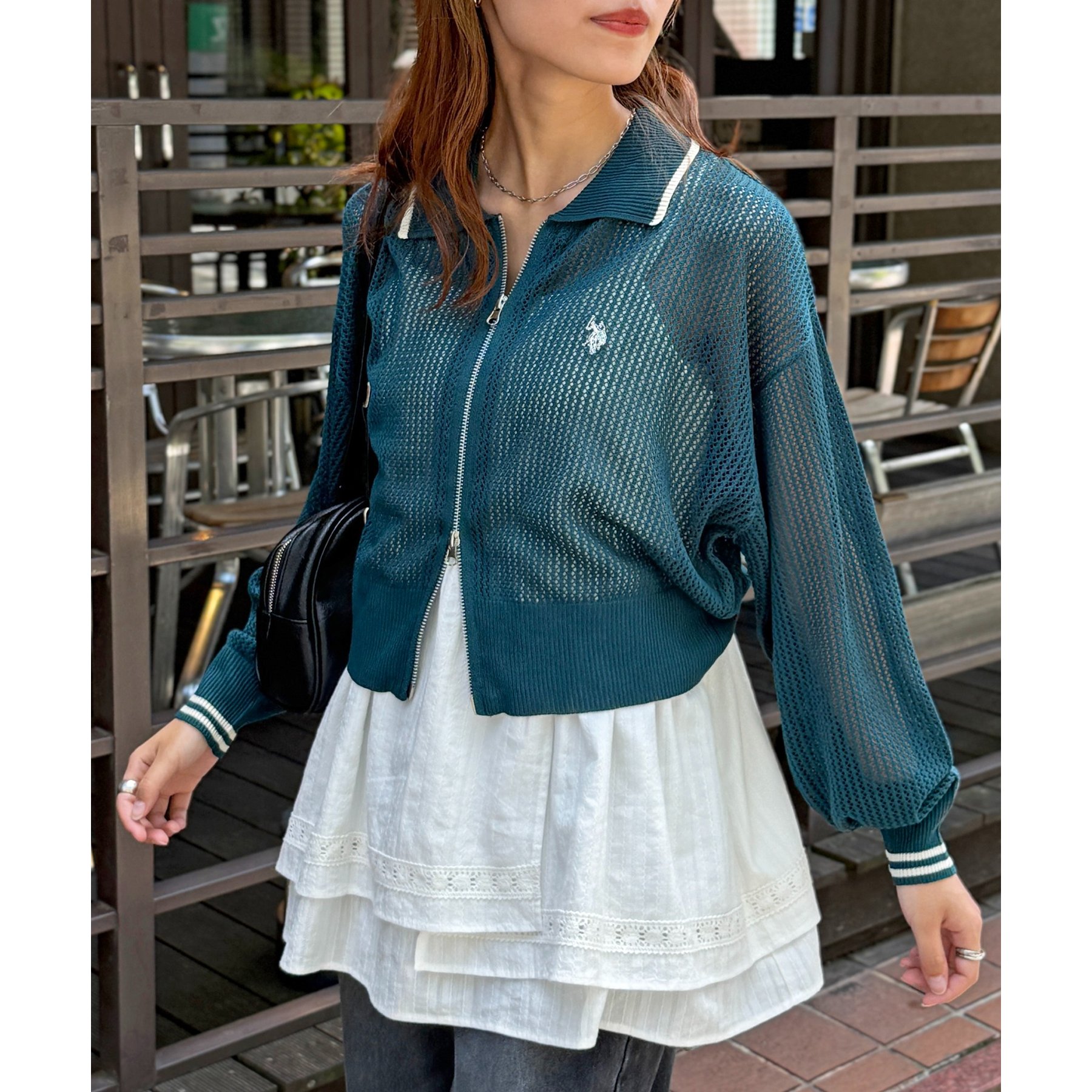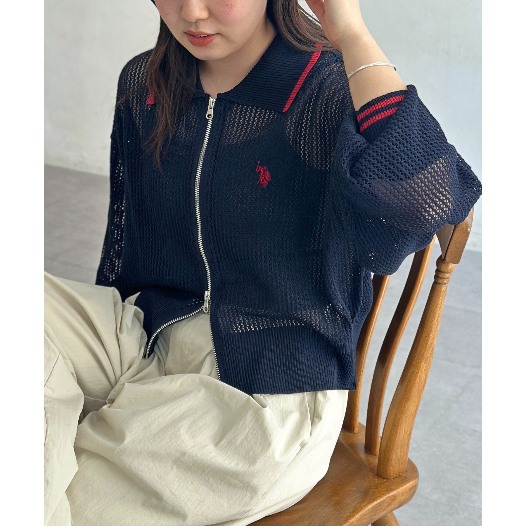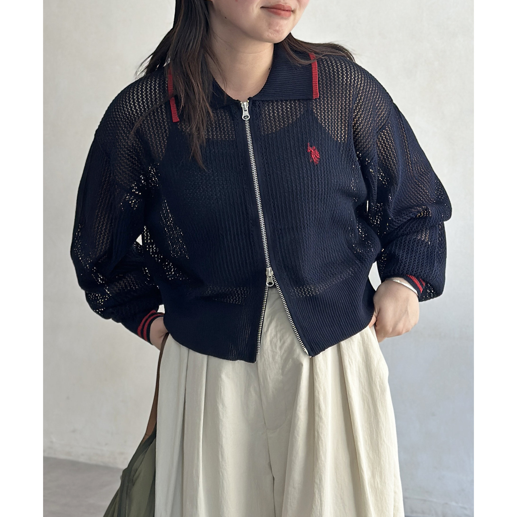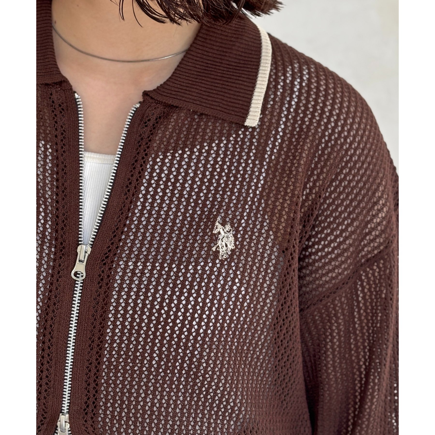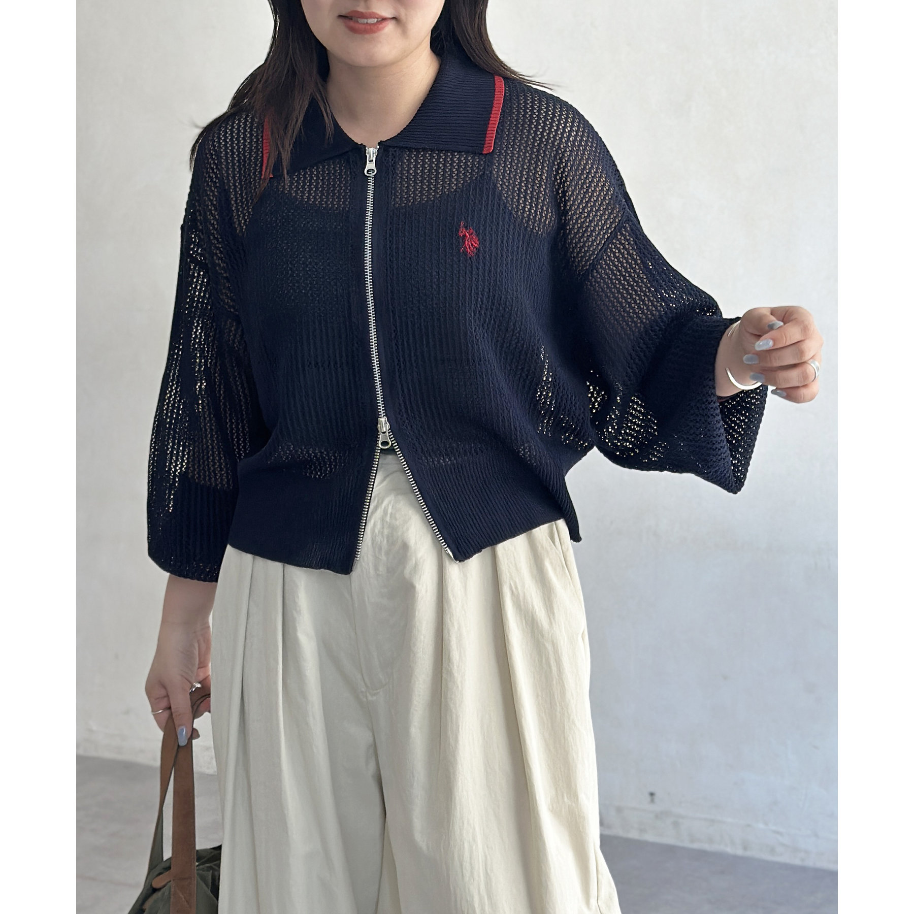 【U.S. POLO ASSN.】襟付きメッシュカーディガン