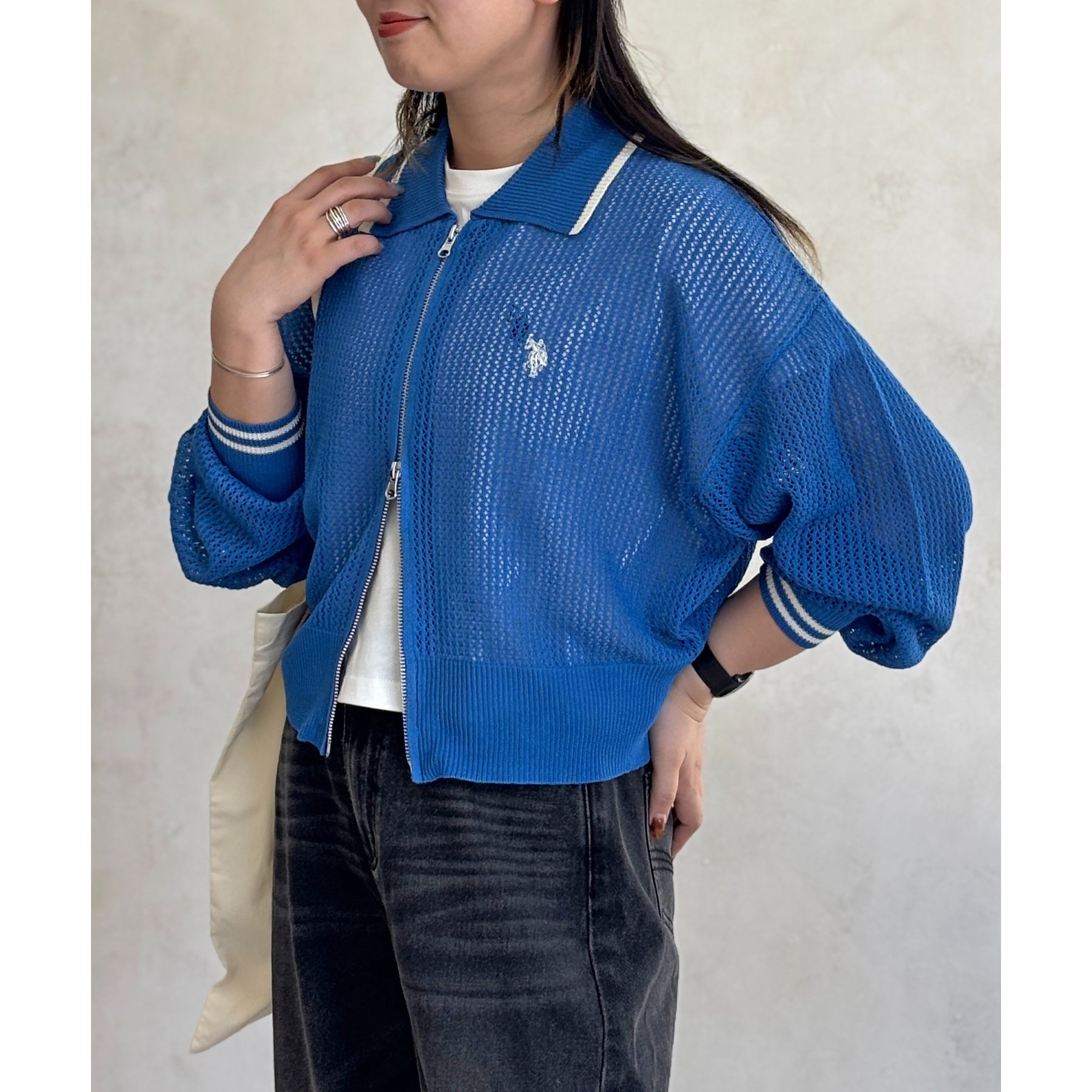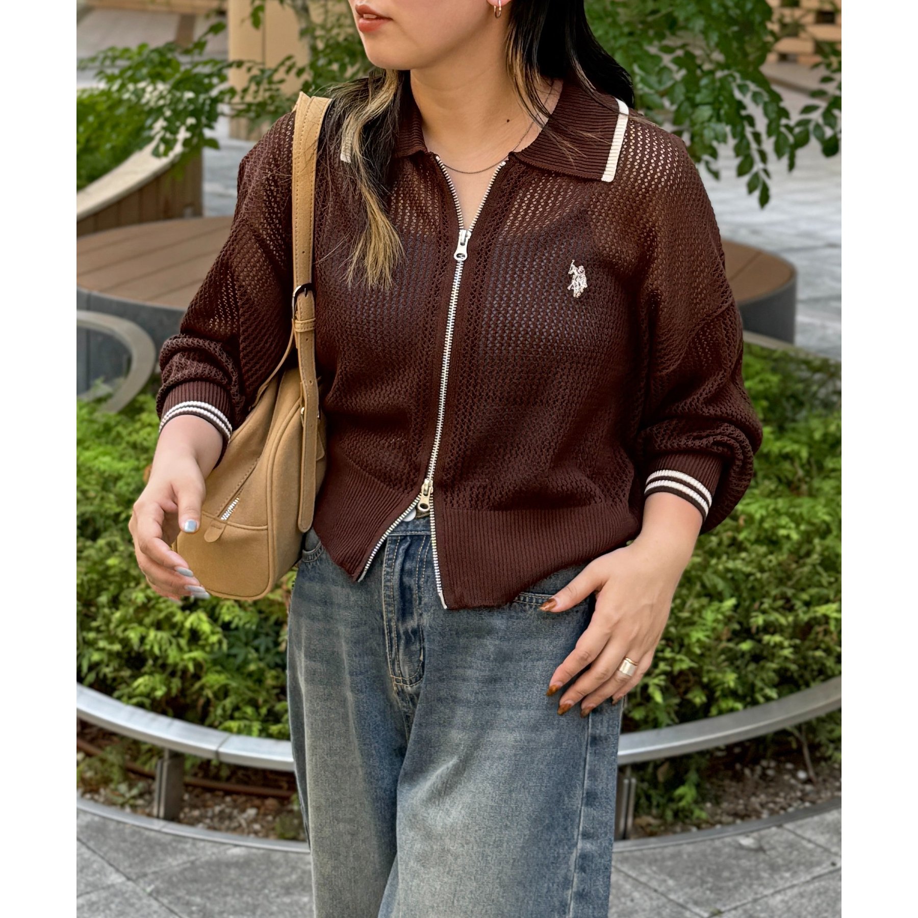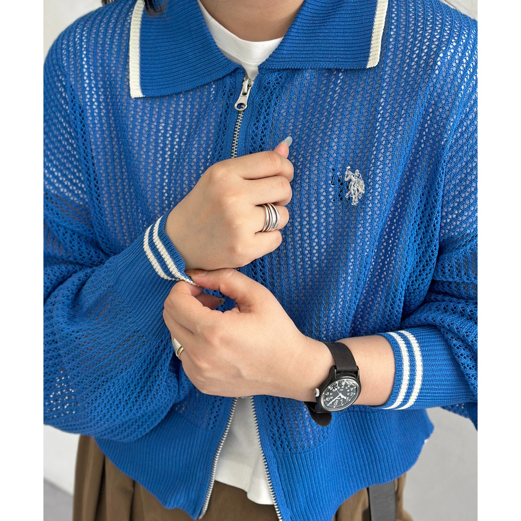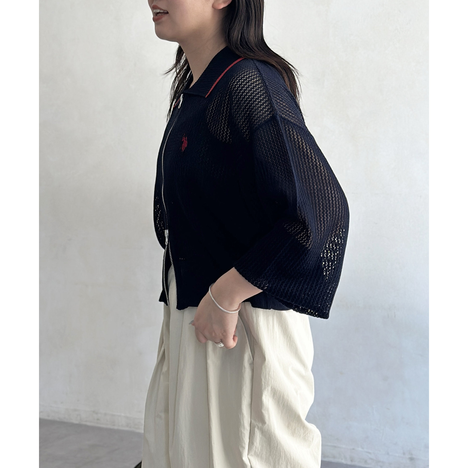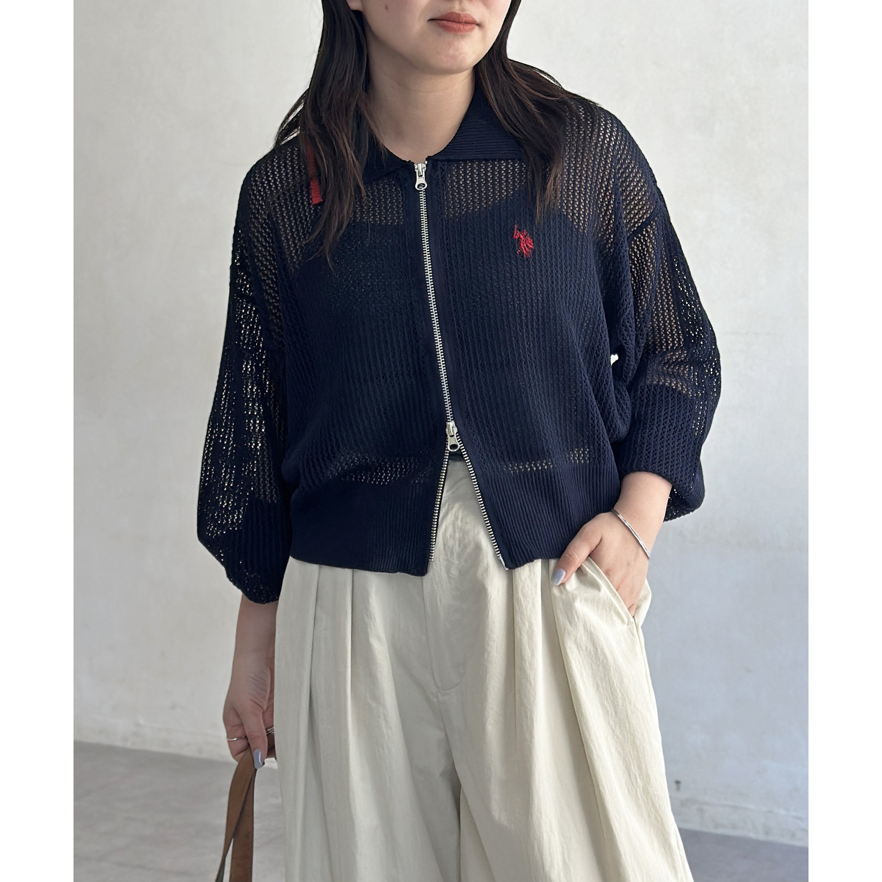 【U.S. POLO ASSN.】襟付きメッシュカーディガン