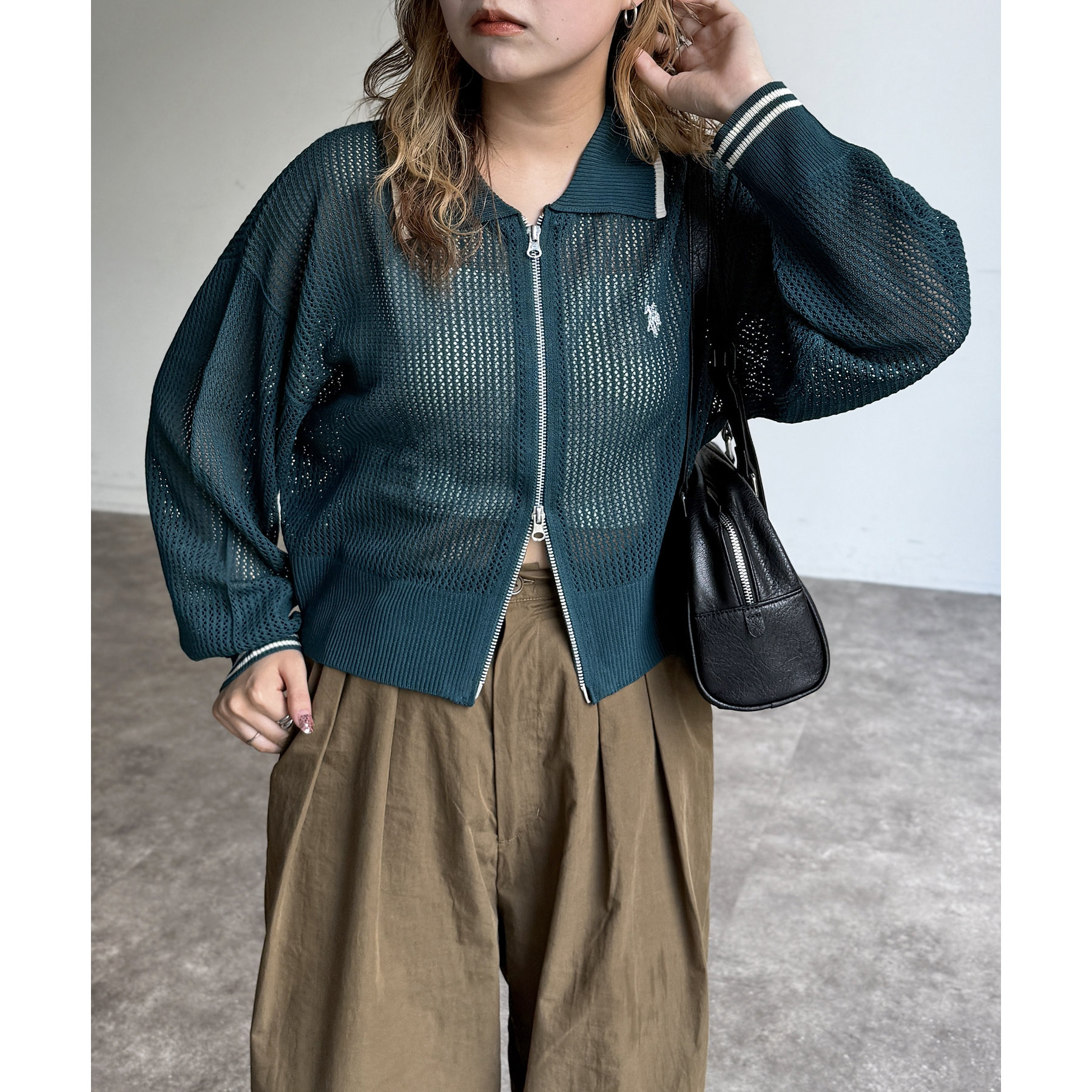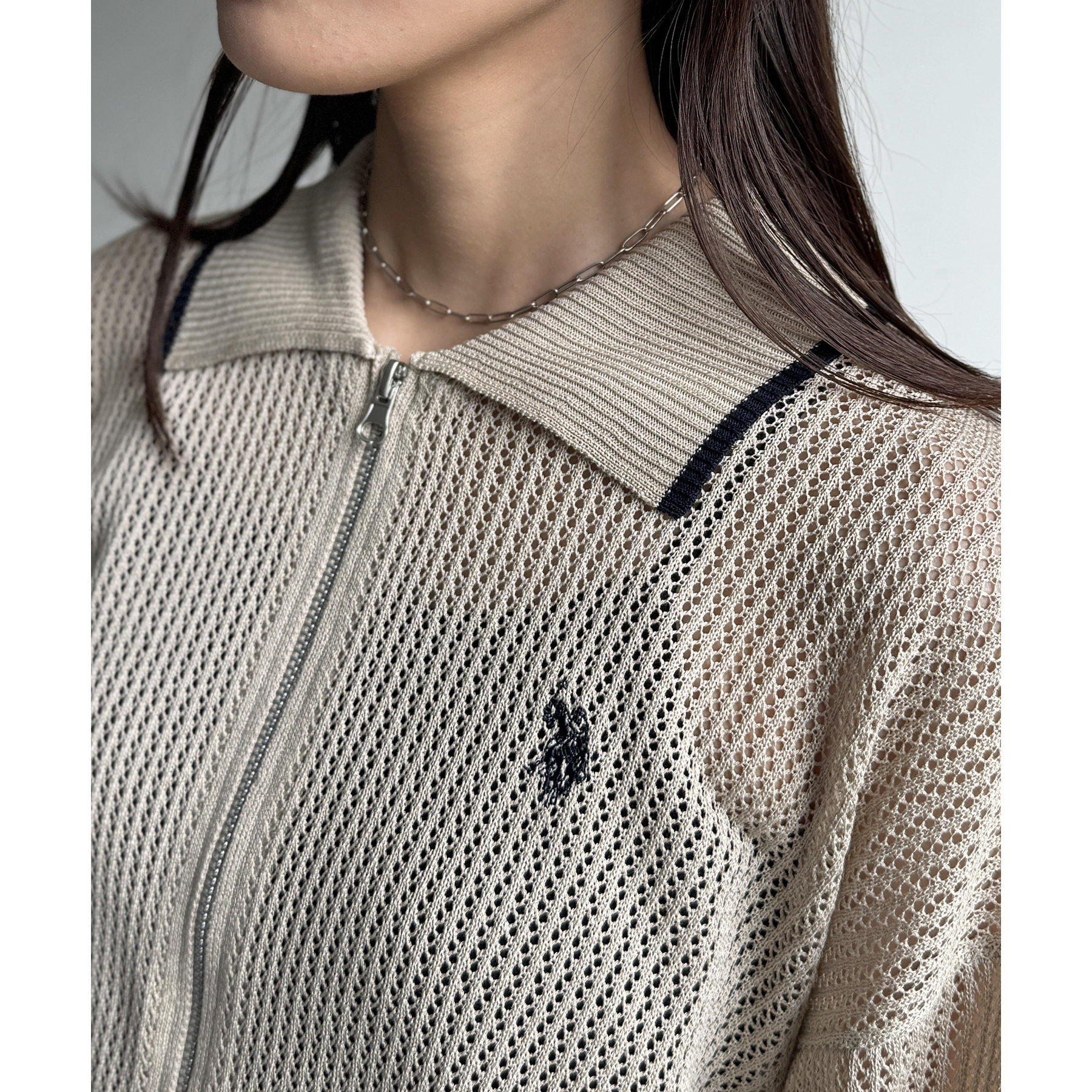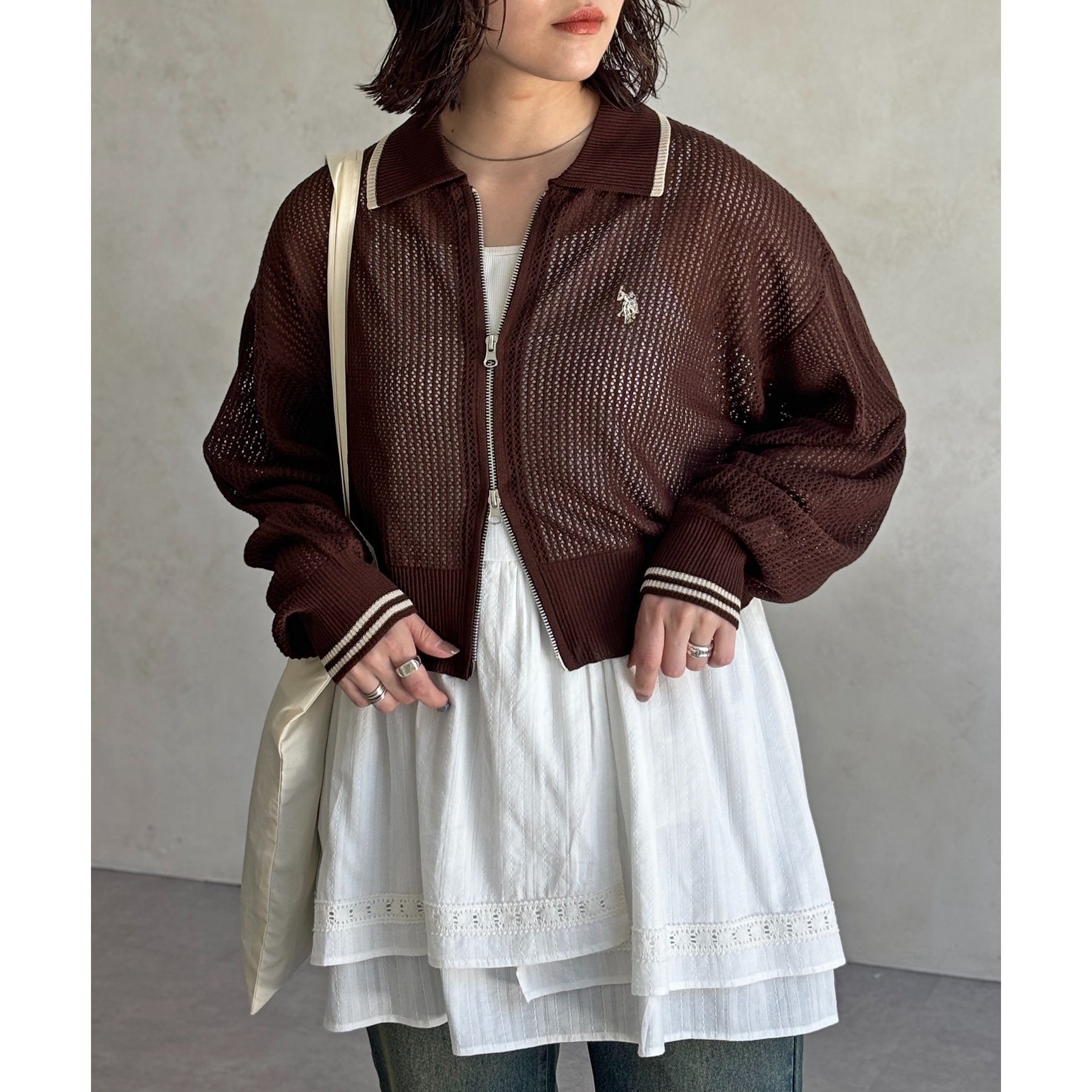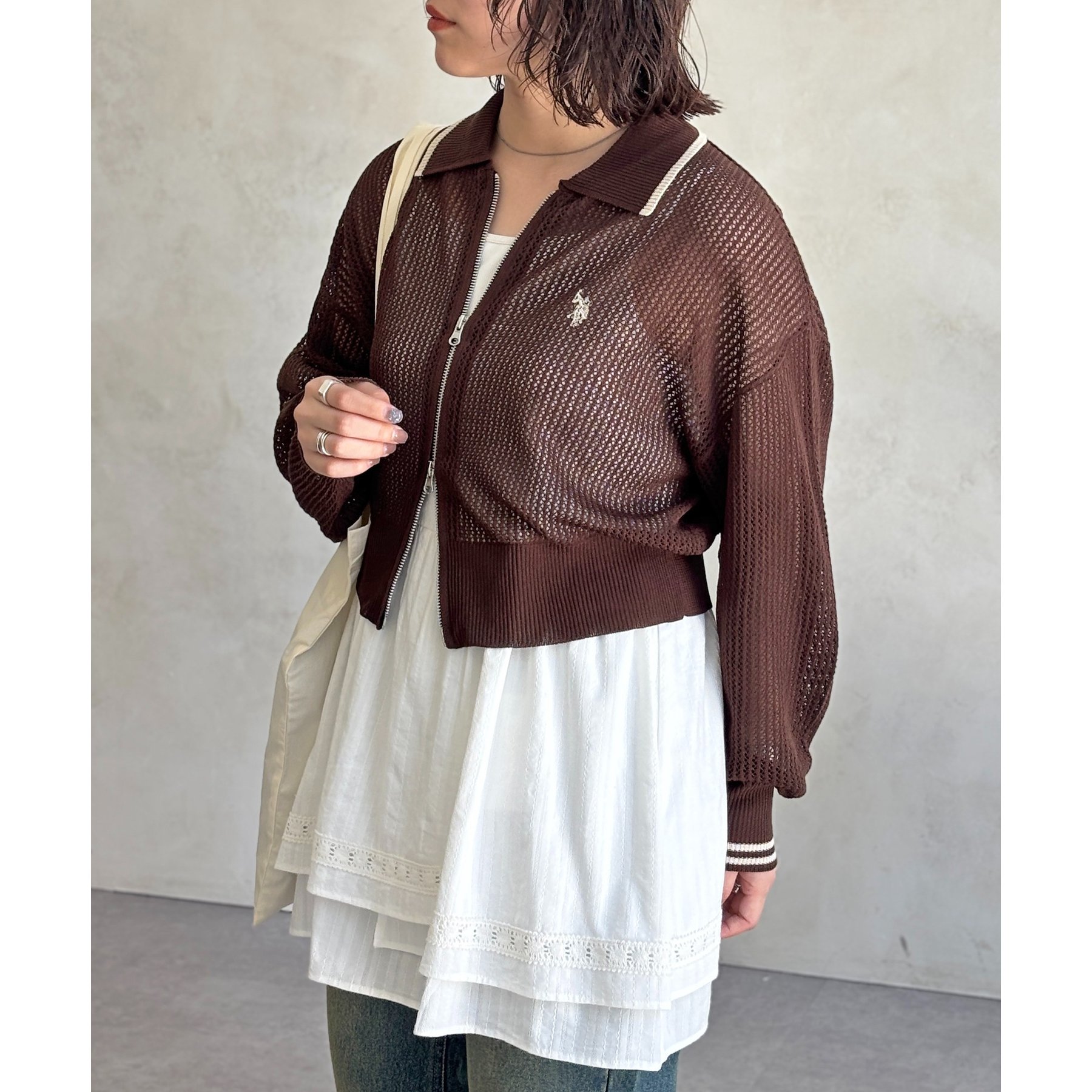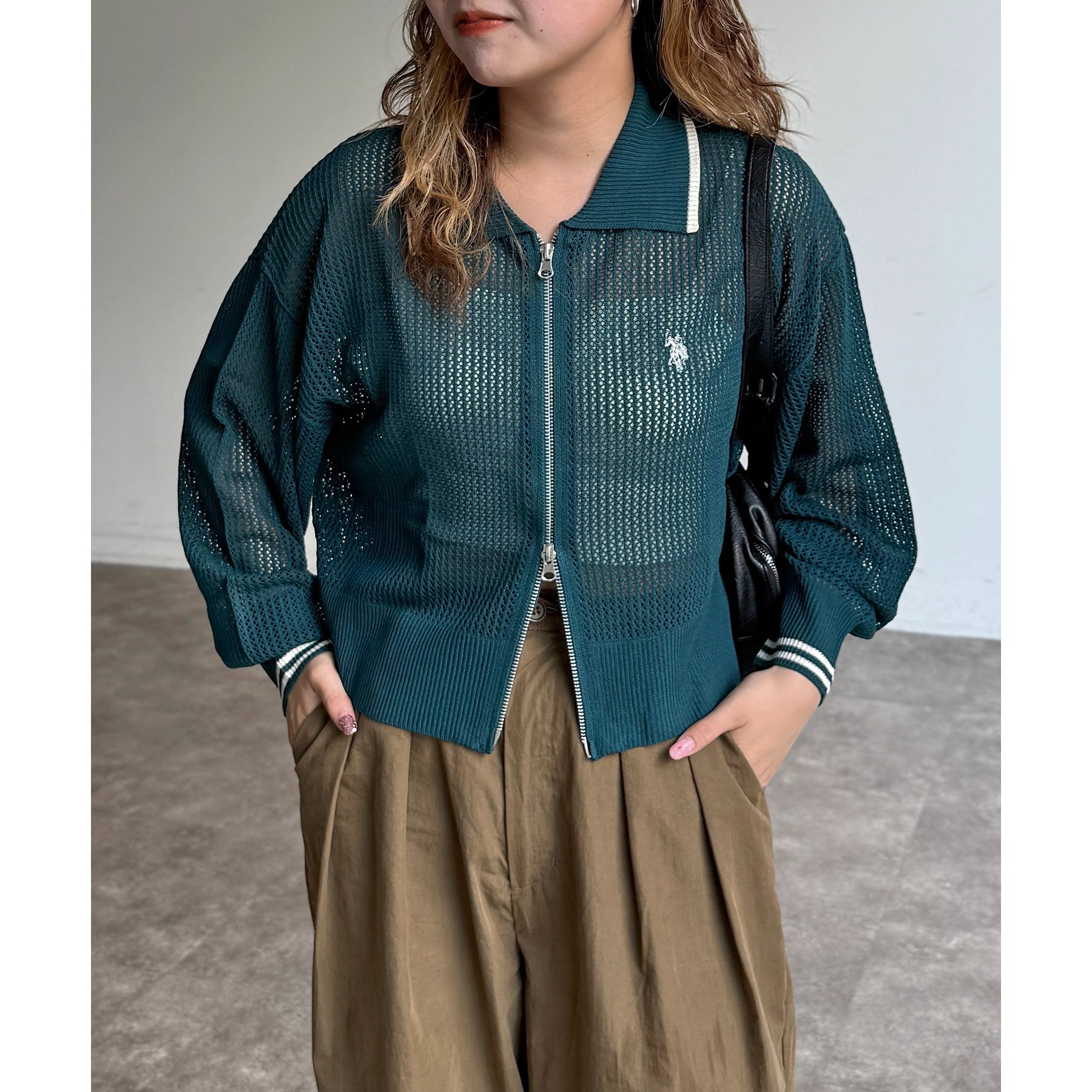 【U.S. POLO ASSN.】襟付きメッシュカーディガン