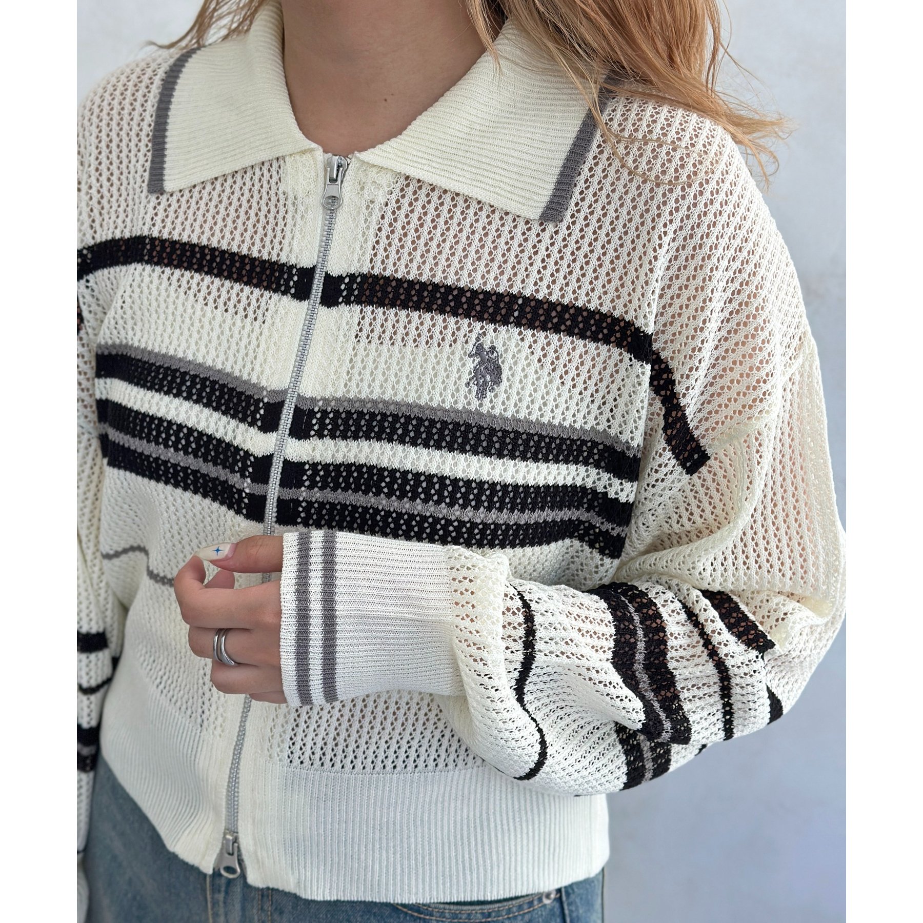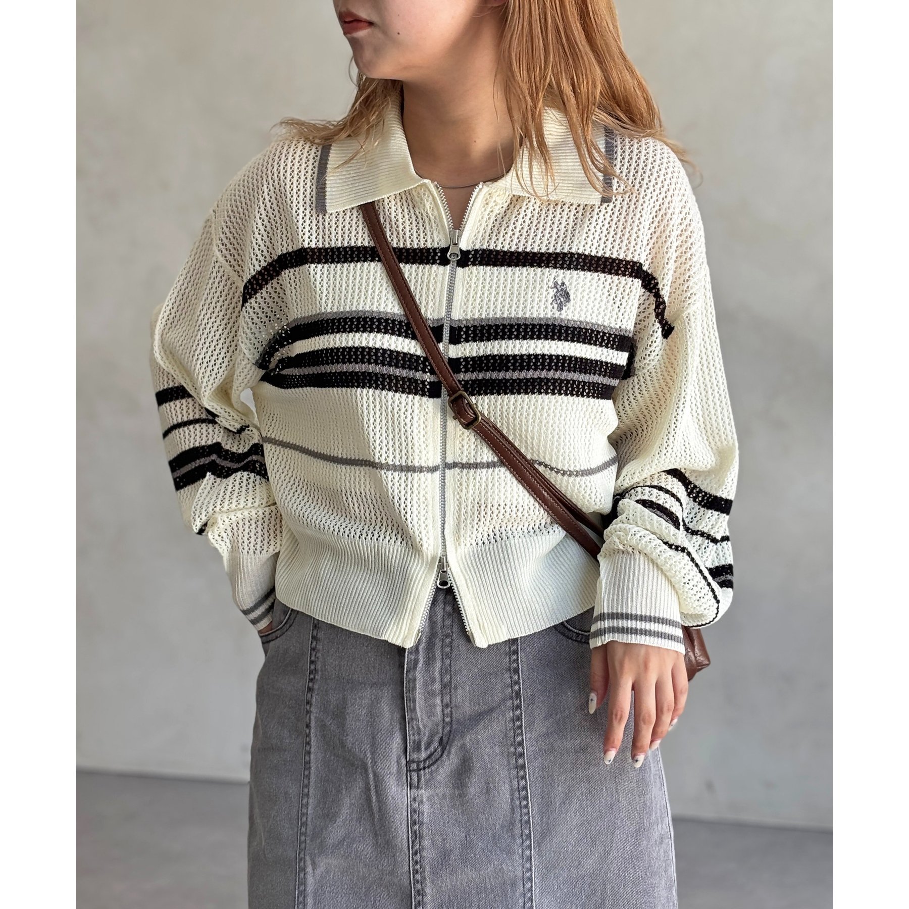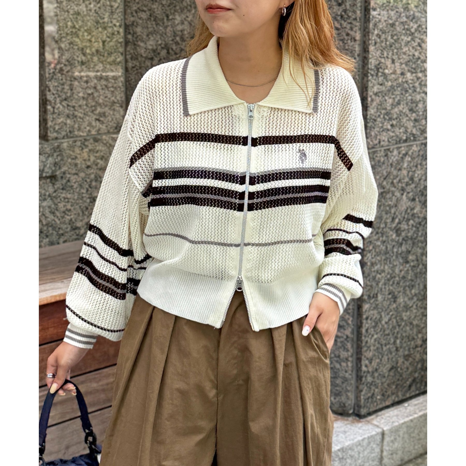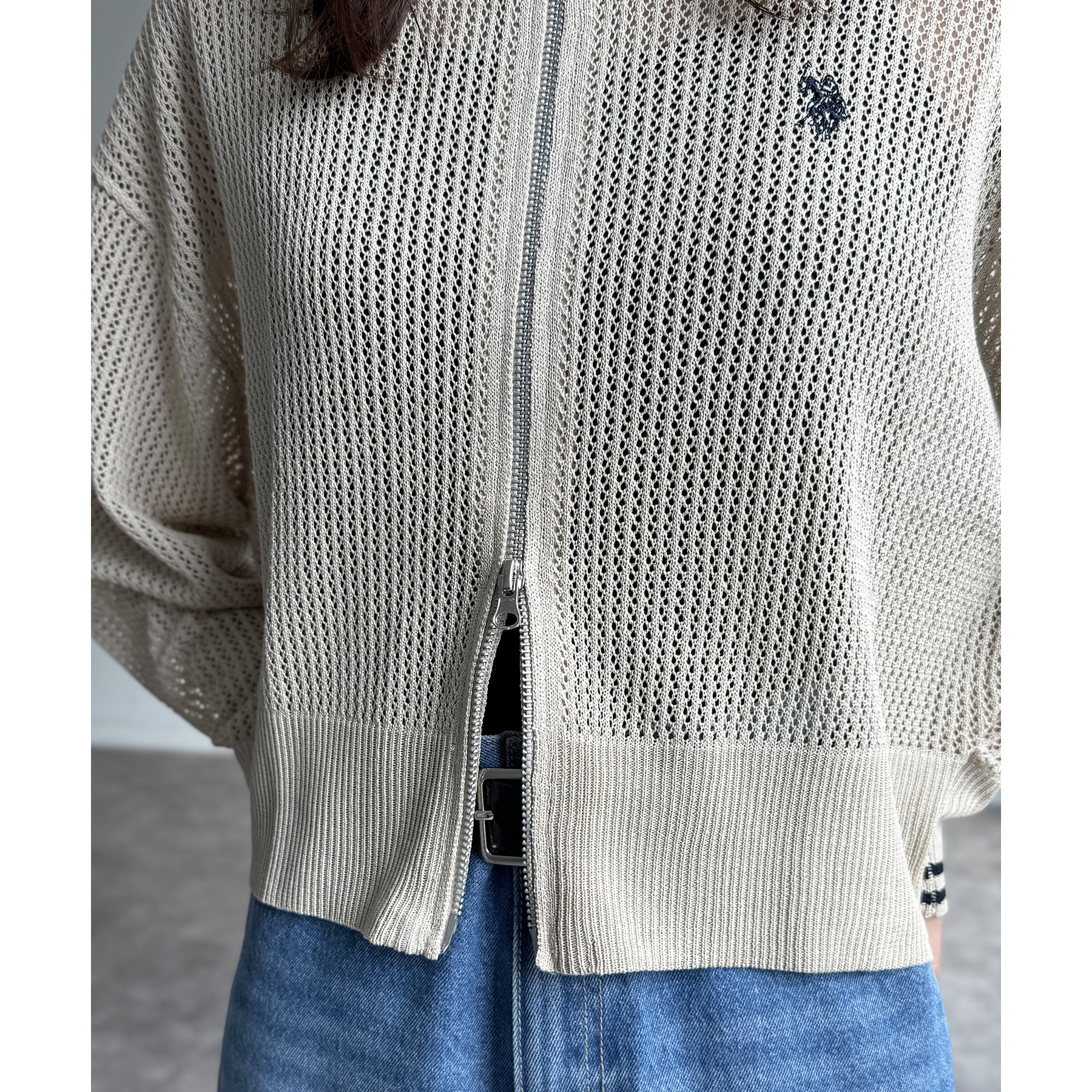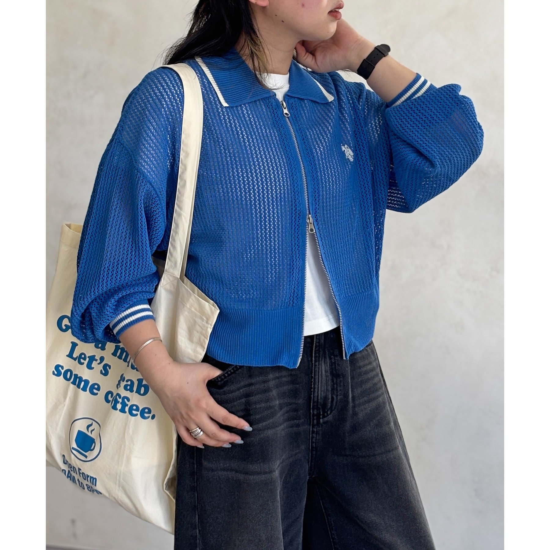 【U.S. POLO ASSN.】襟付きメッシュカーディガン