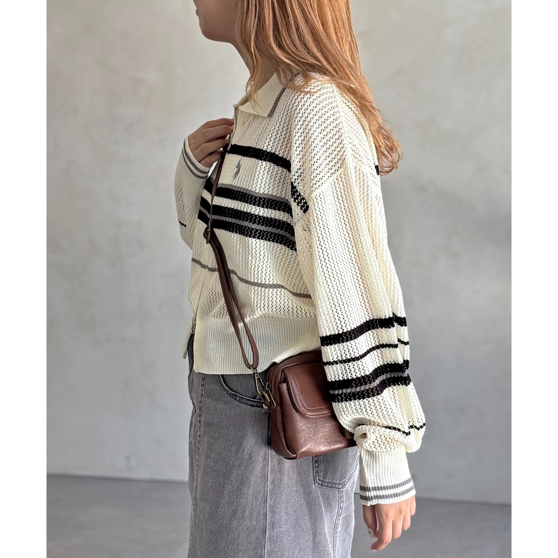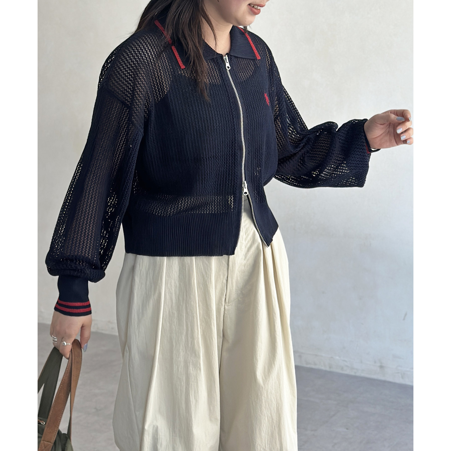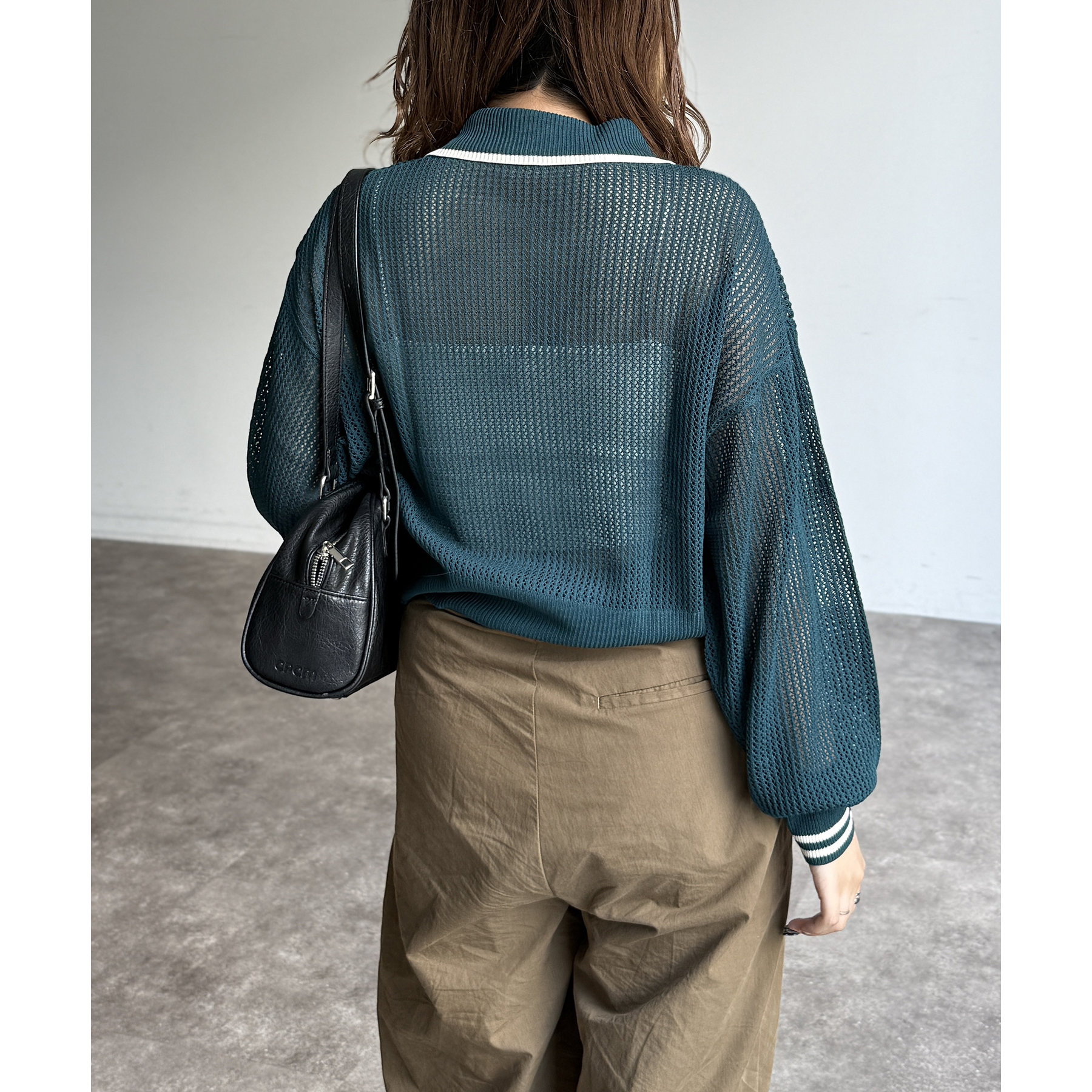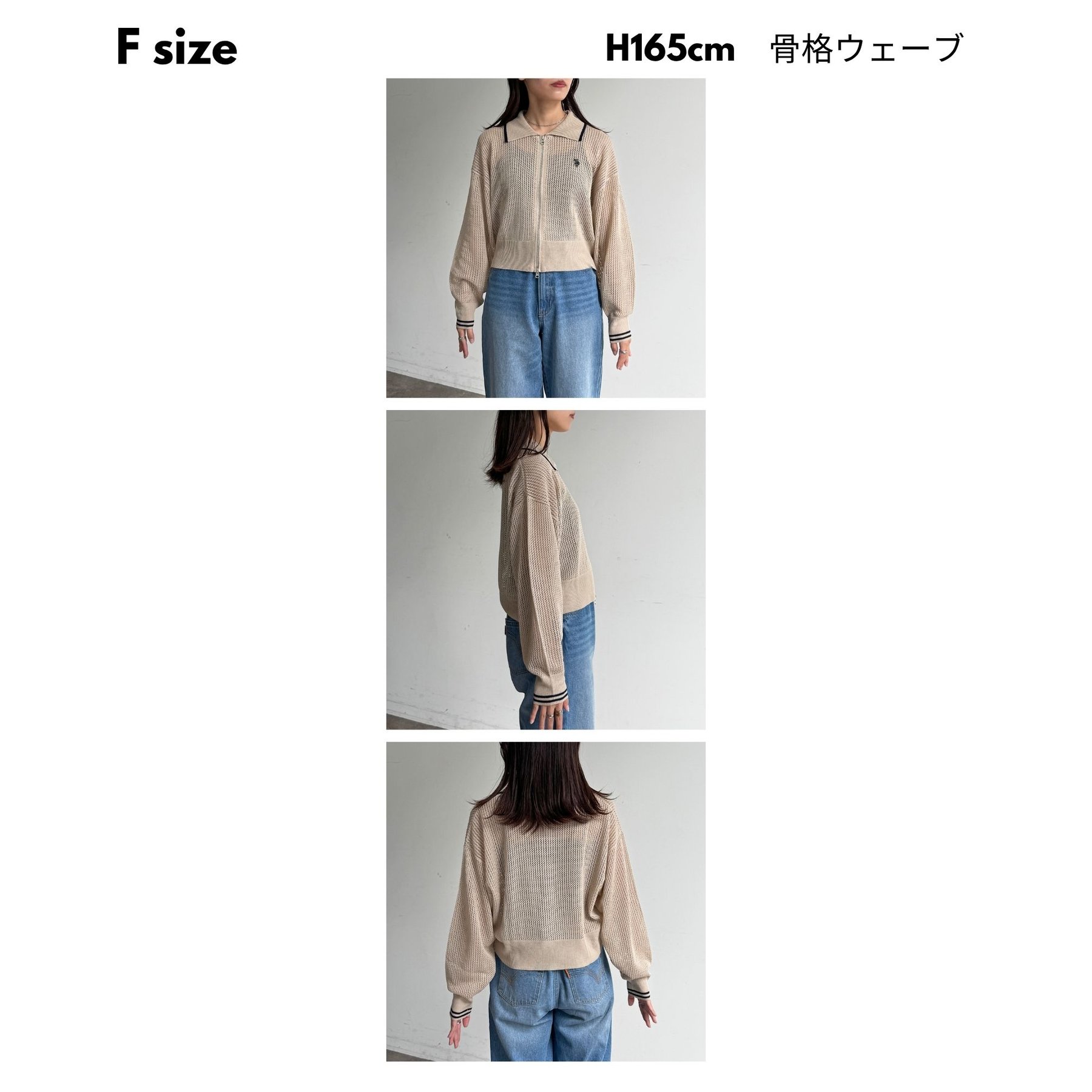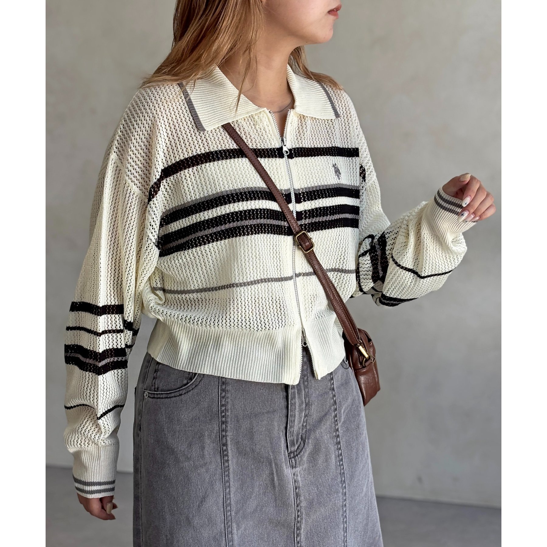 【U.S. POLO ASSN.】襟付きメッシュカーディガン