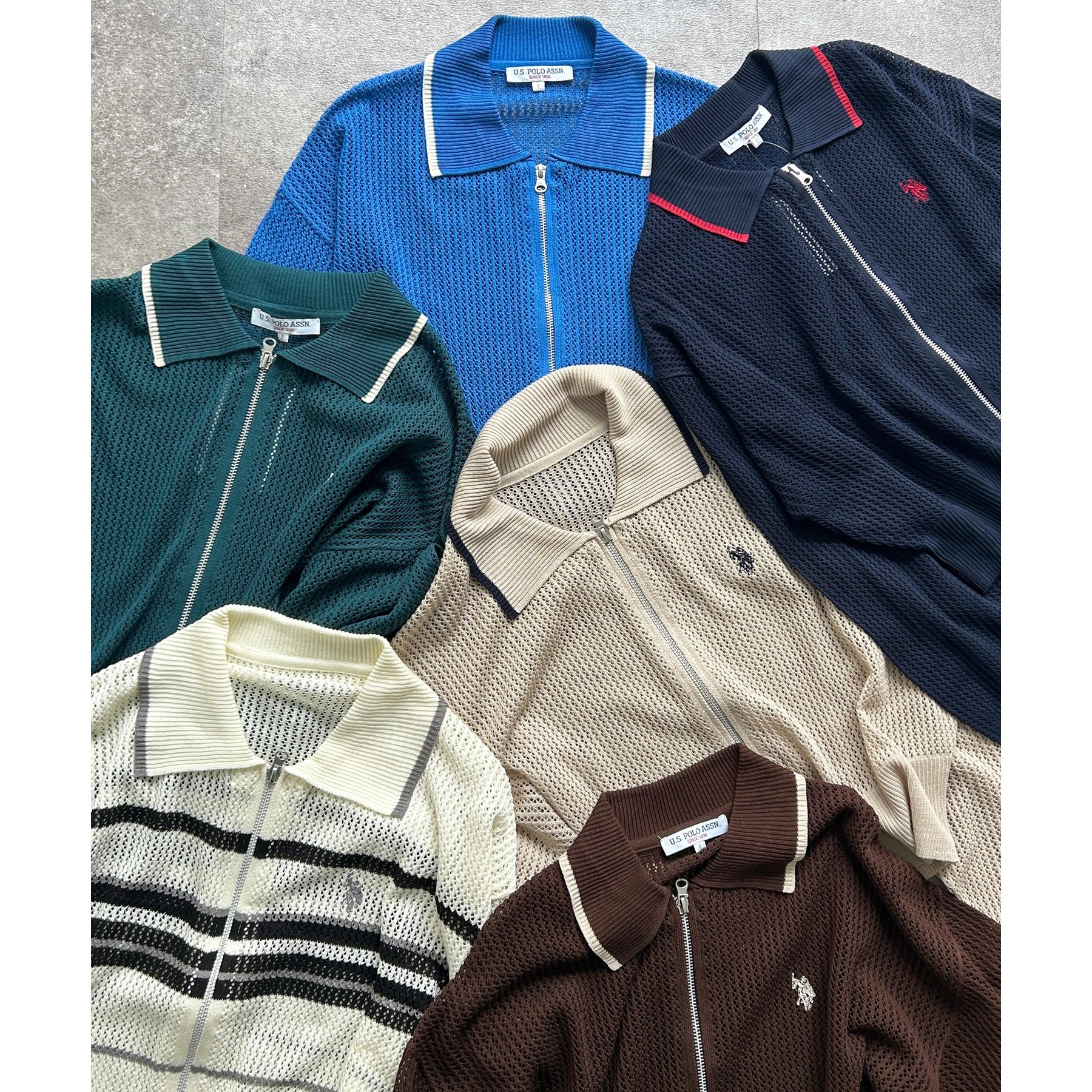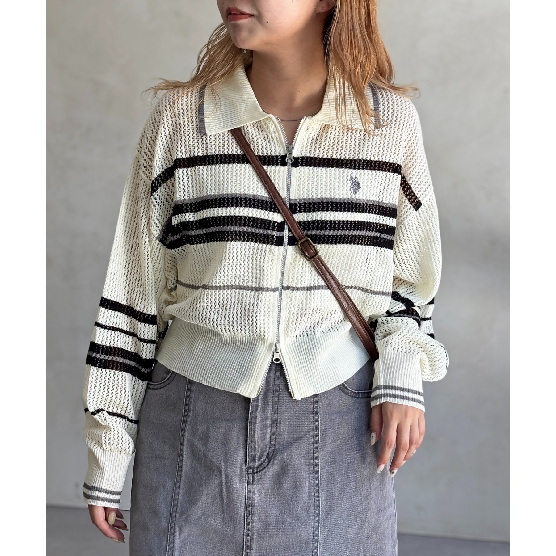 ざっくりとしたメッシュ編みが、スタイリングに抜け感をプラスする、【U.S. POLO ASSN.】のジップカーディガンです!