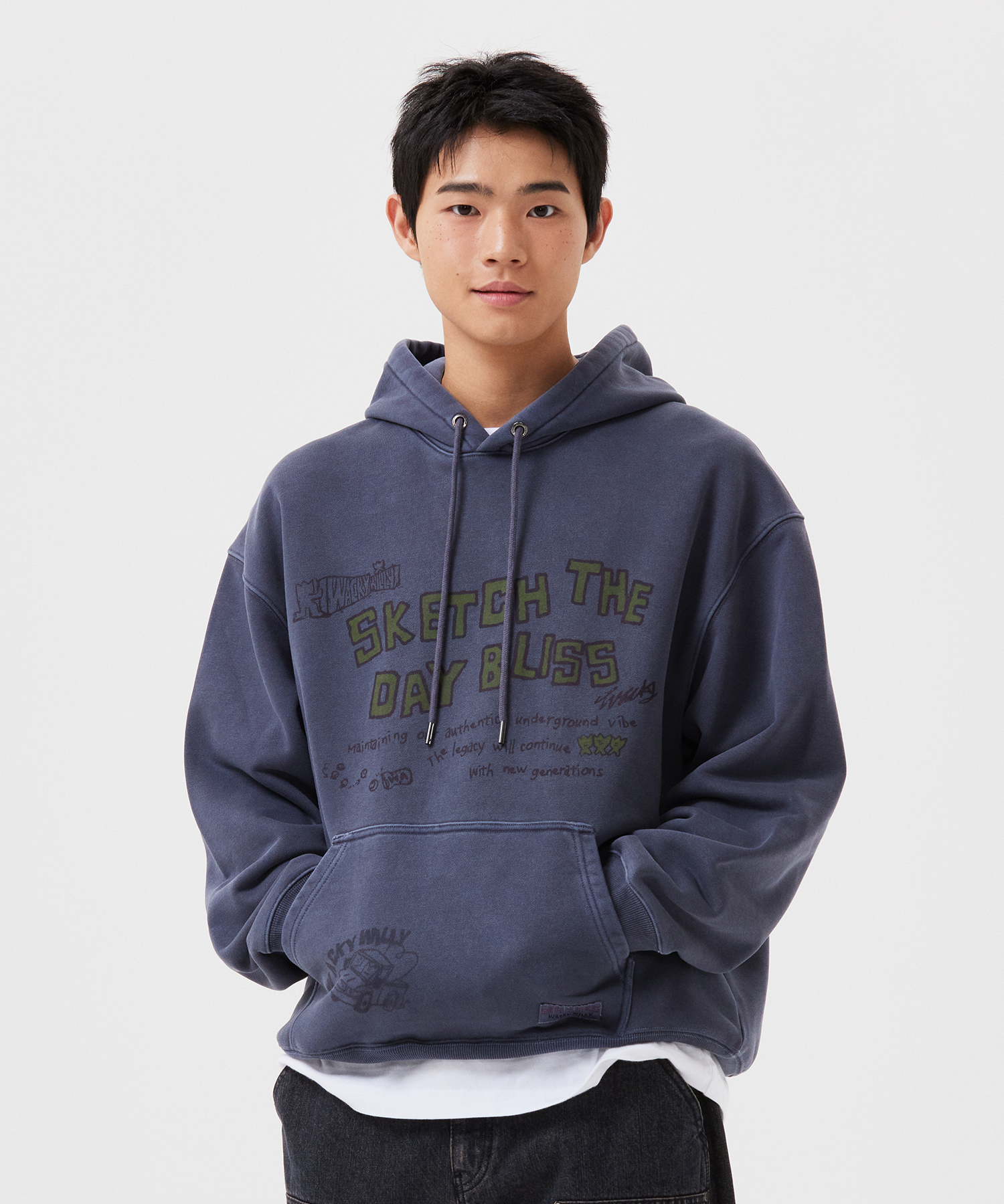 Dying Typographic Hooded Sweatshirt Blue