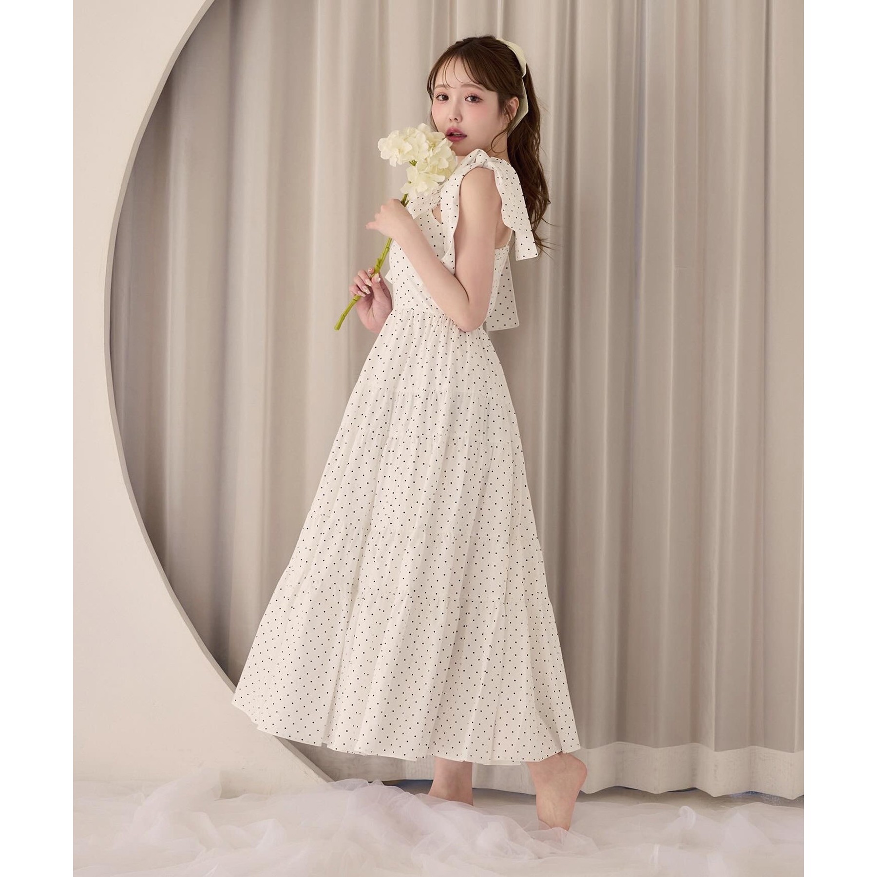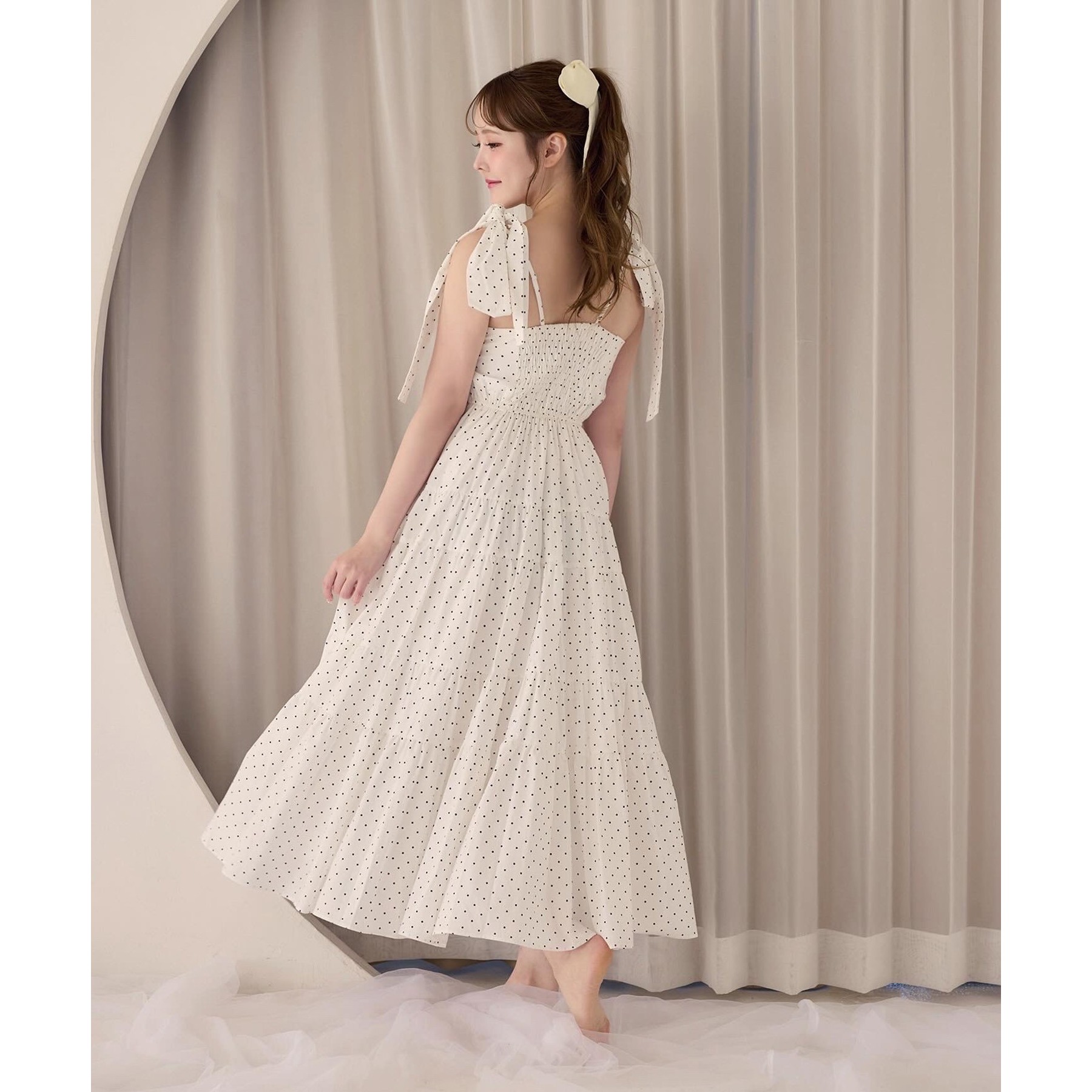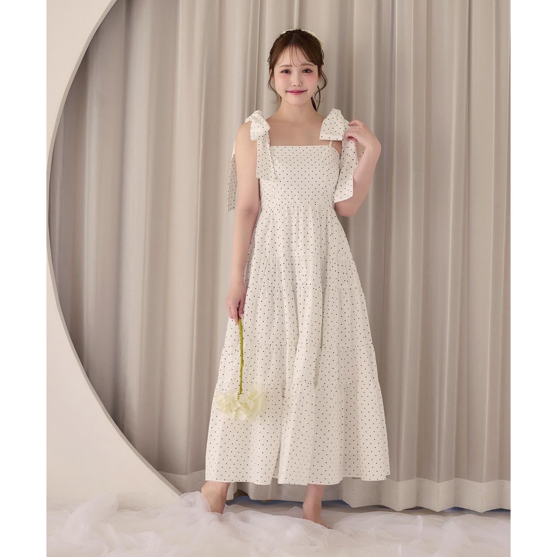 キャミワンピは肩リボンが取り外し可能。肩ストラップもアジャスター付きです。