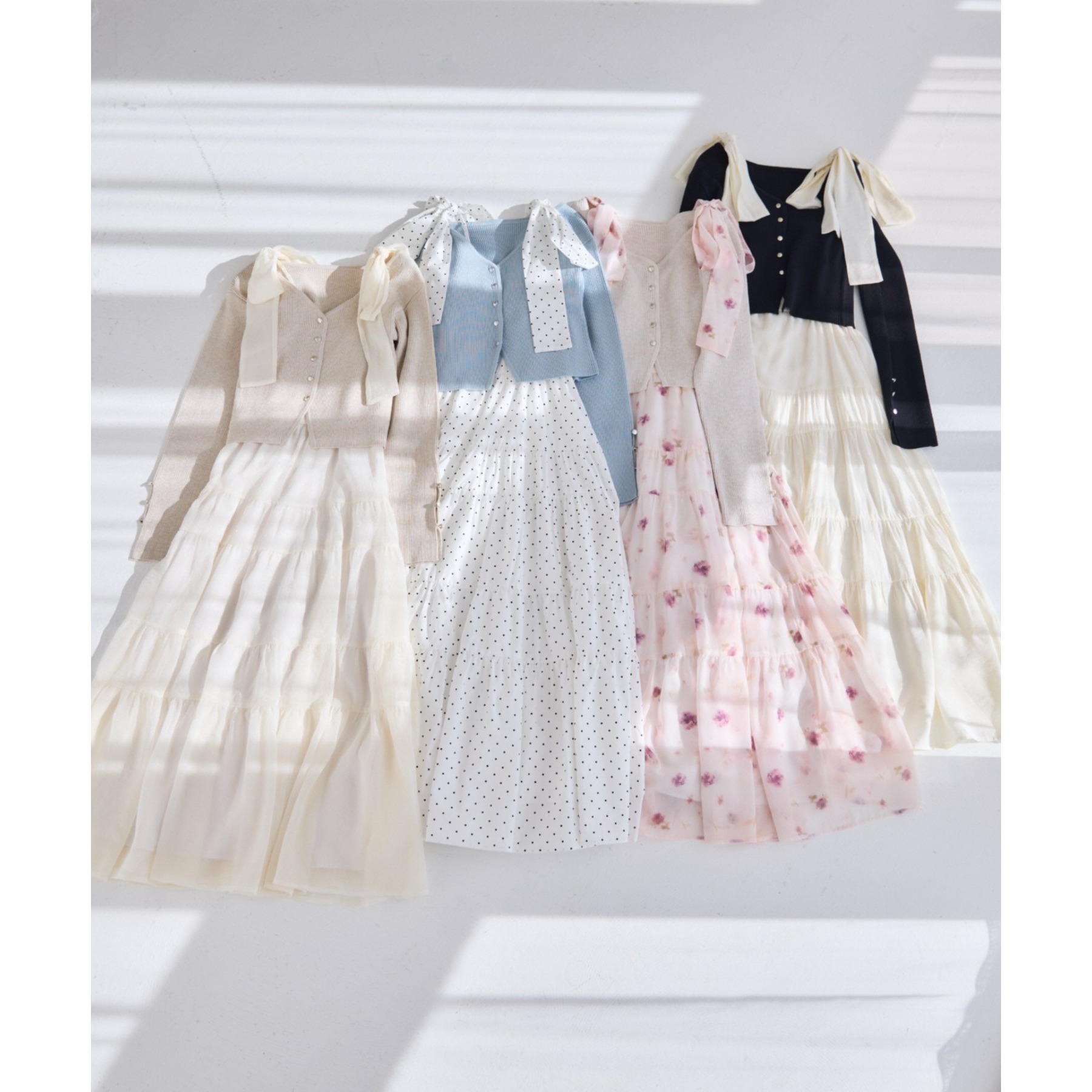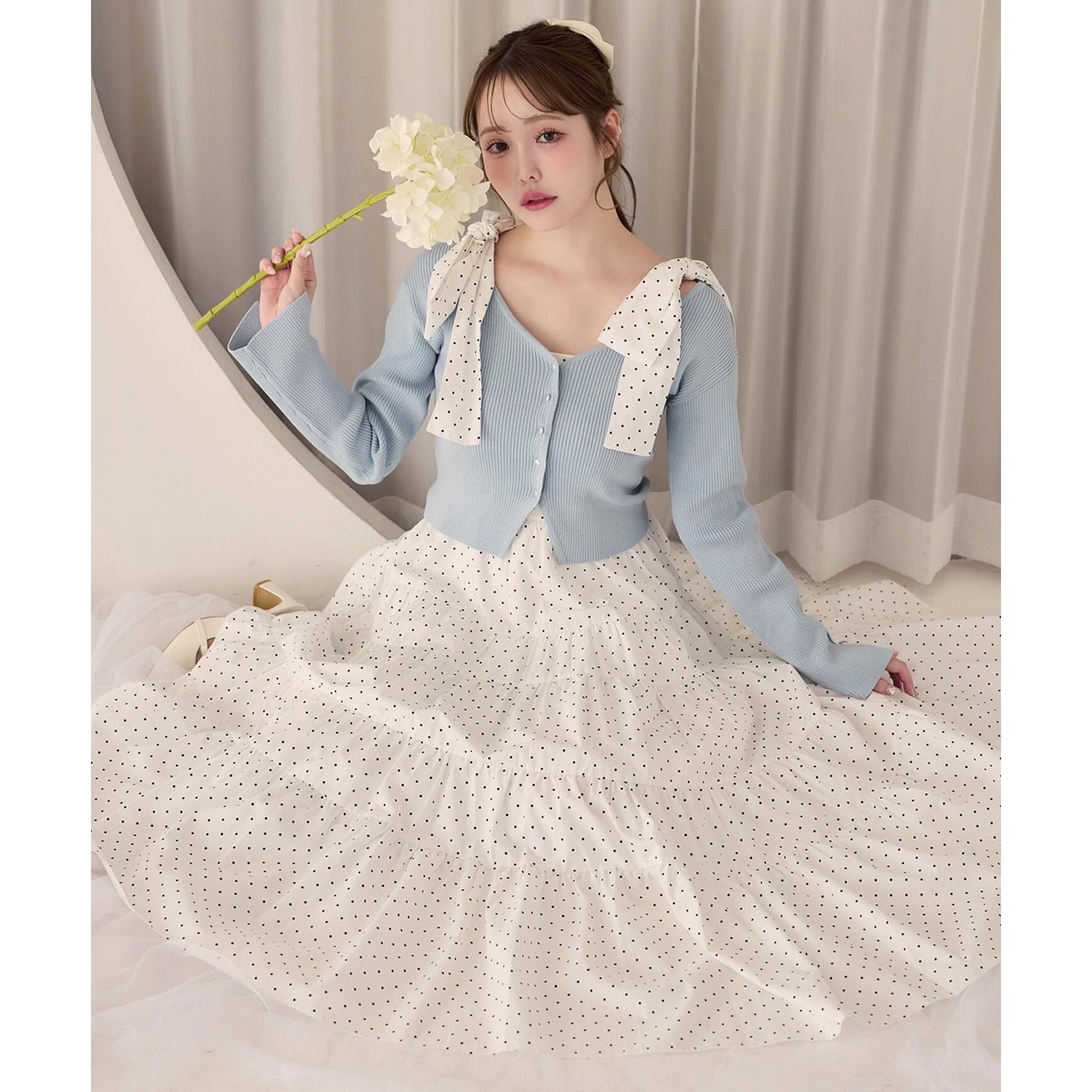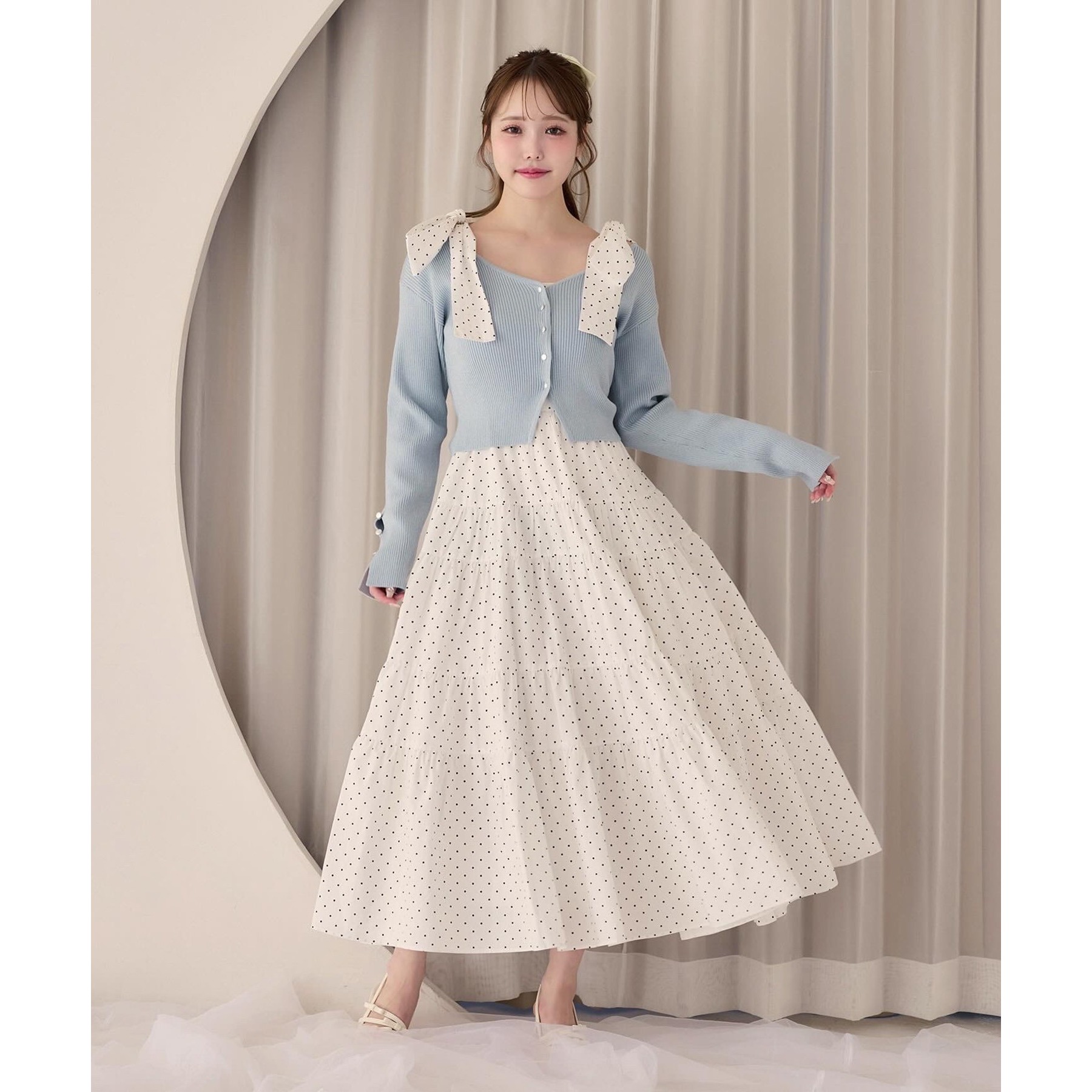 【肩リボン取り外し可能】カーディガンセット2枚セットワンピ