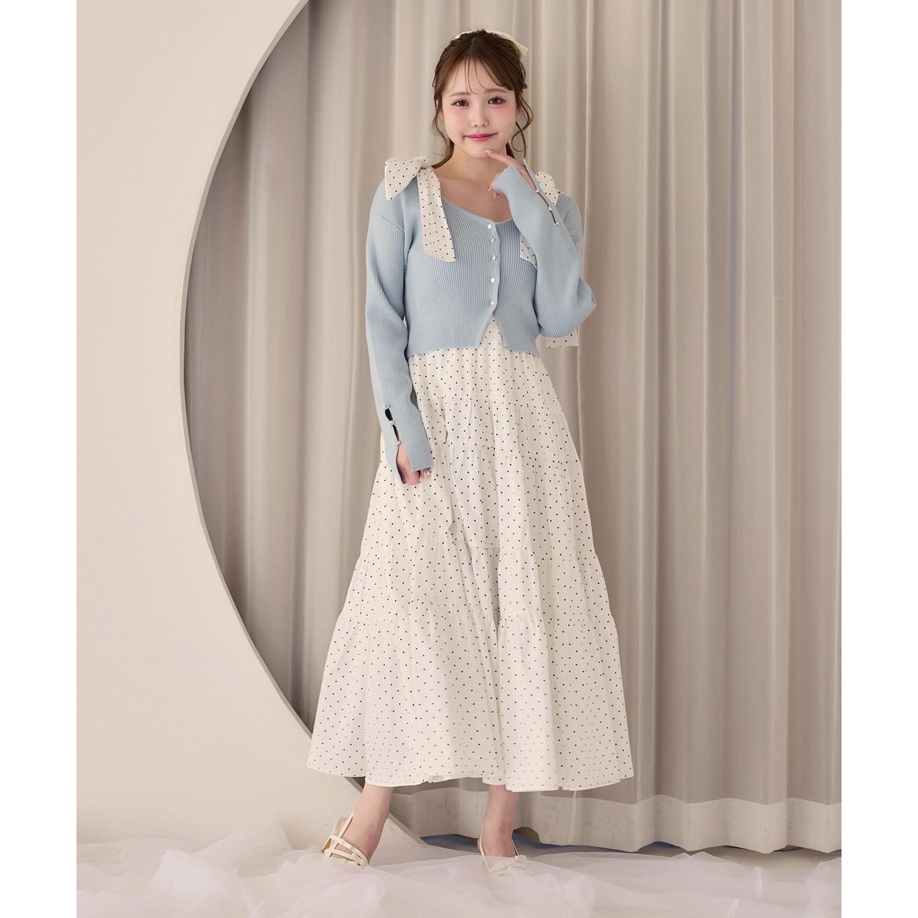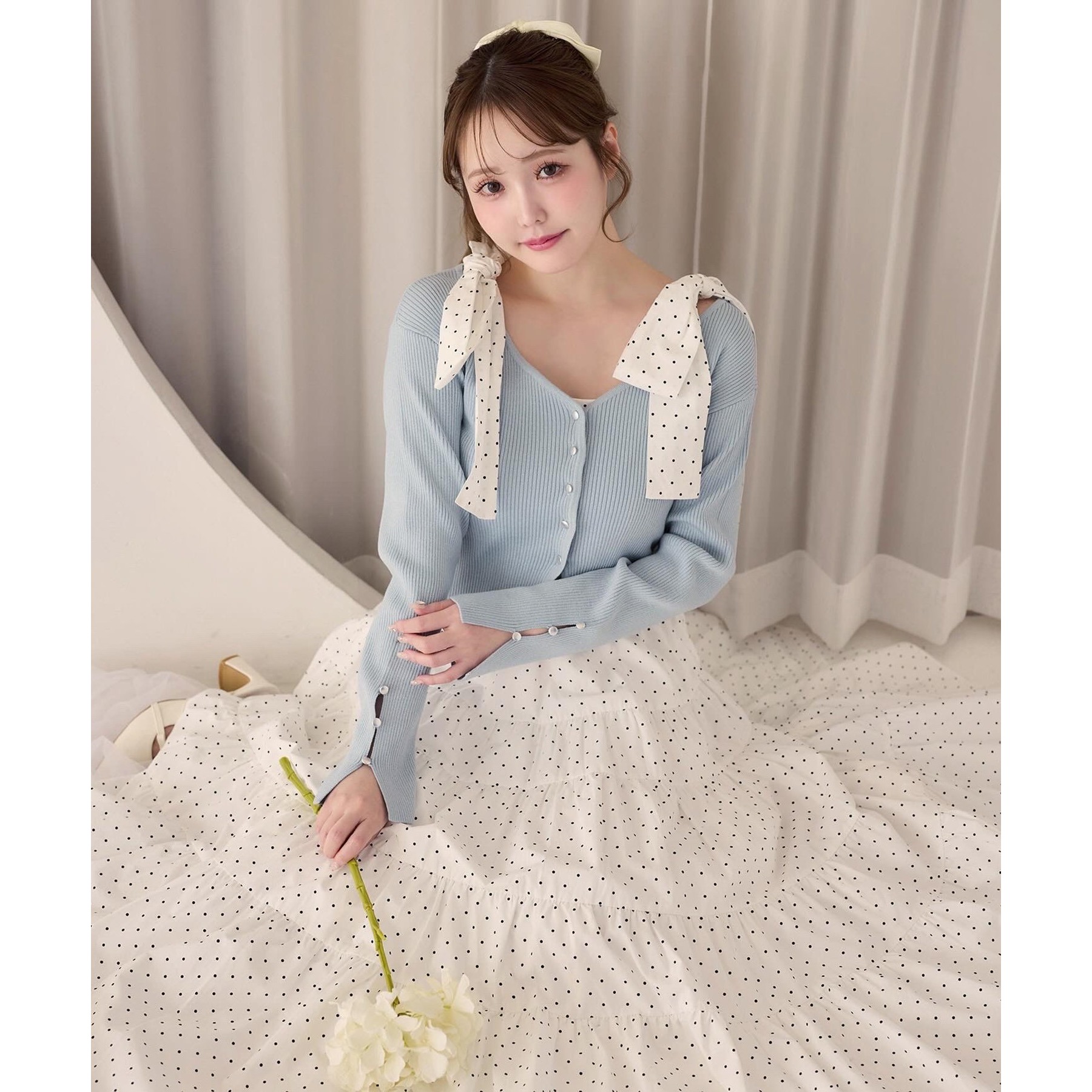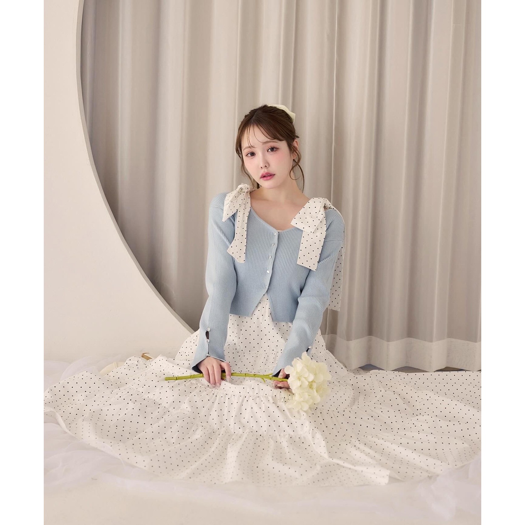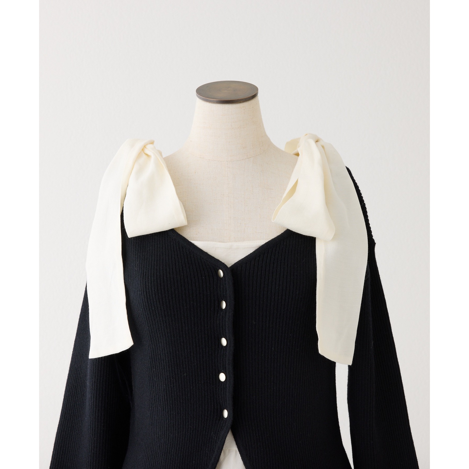 【肩リボン取り外し可能】カーディガンセット2枚セットワンピ