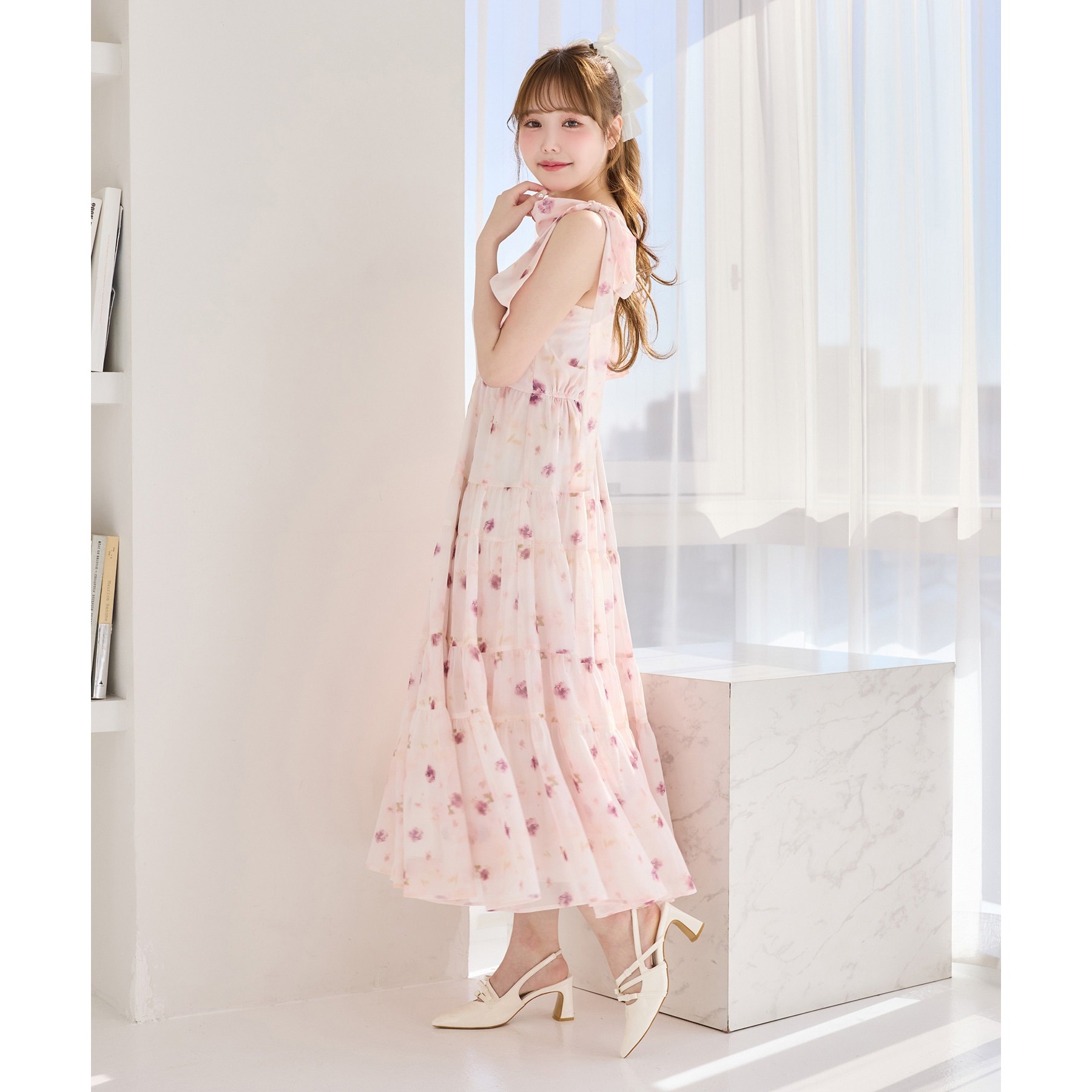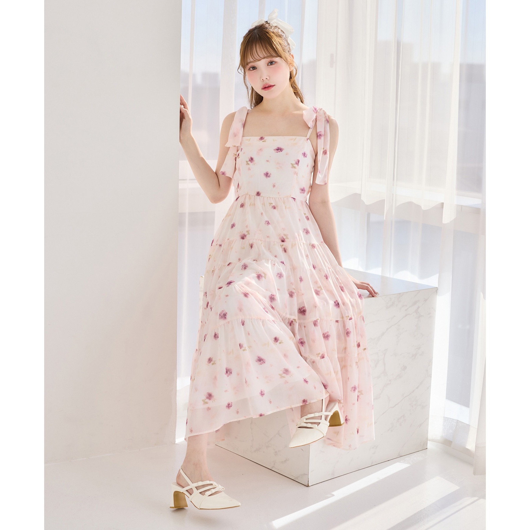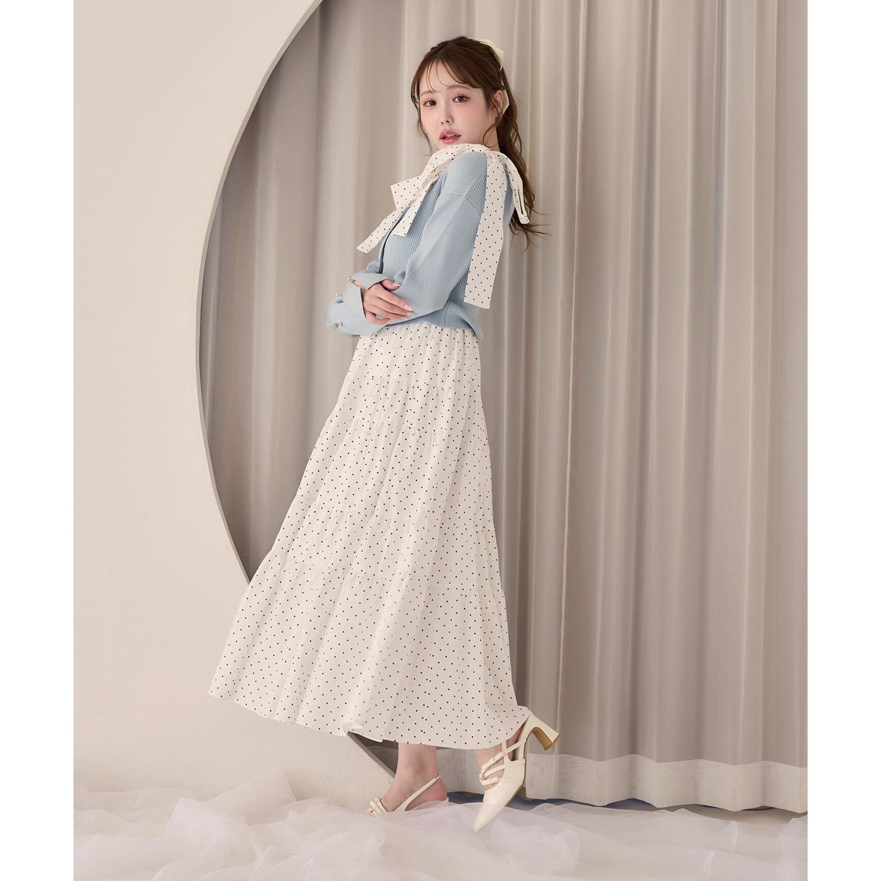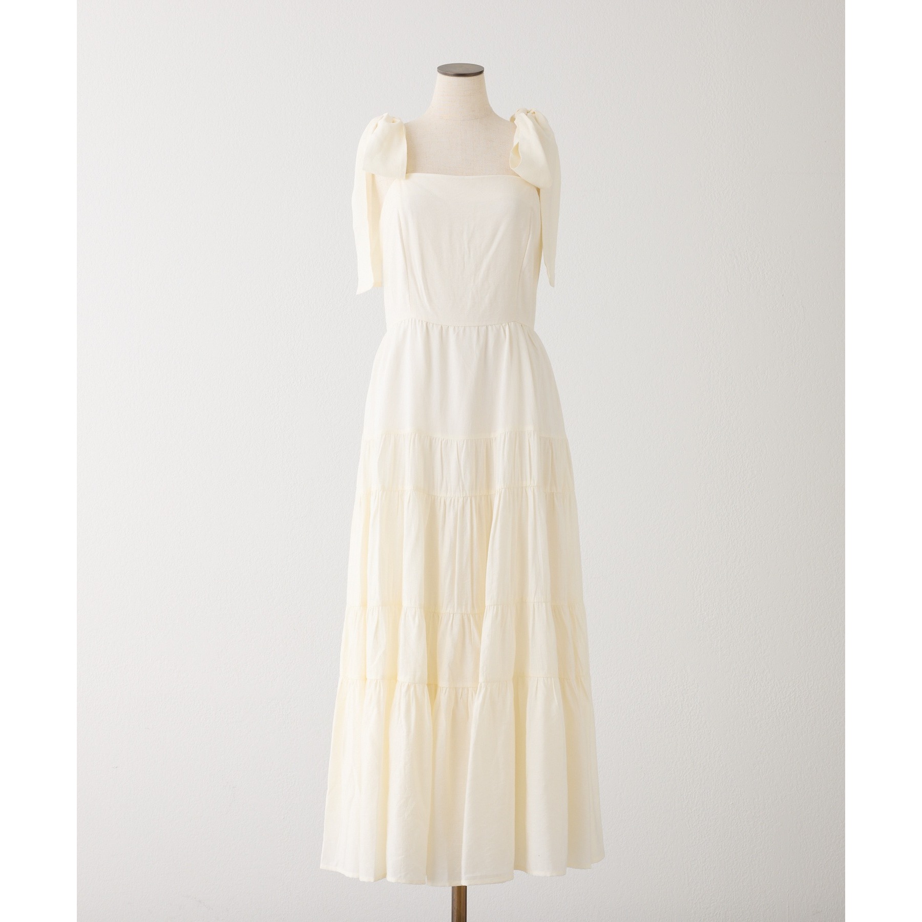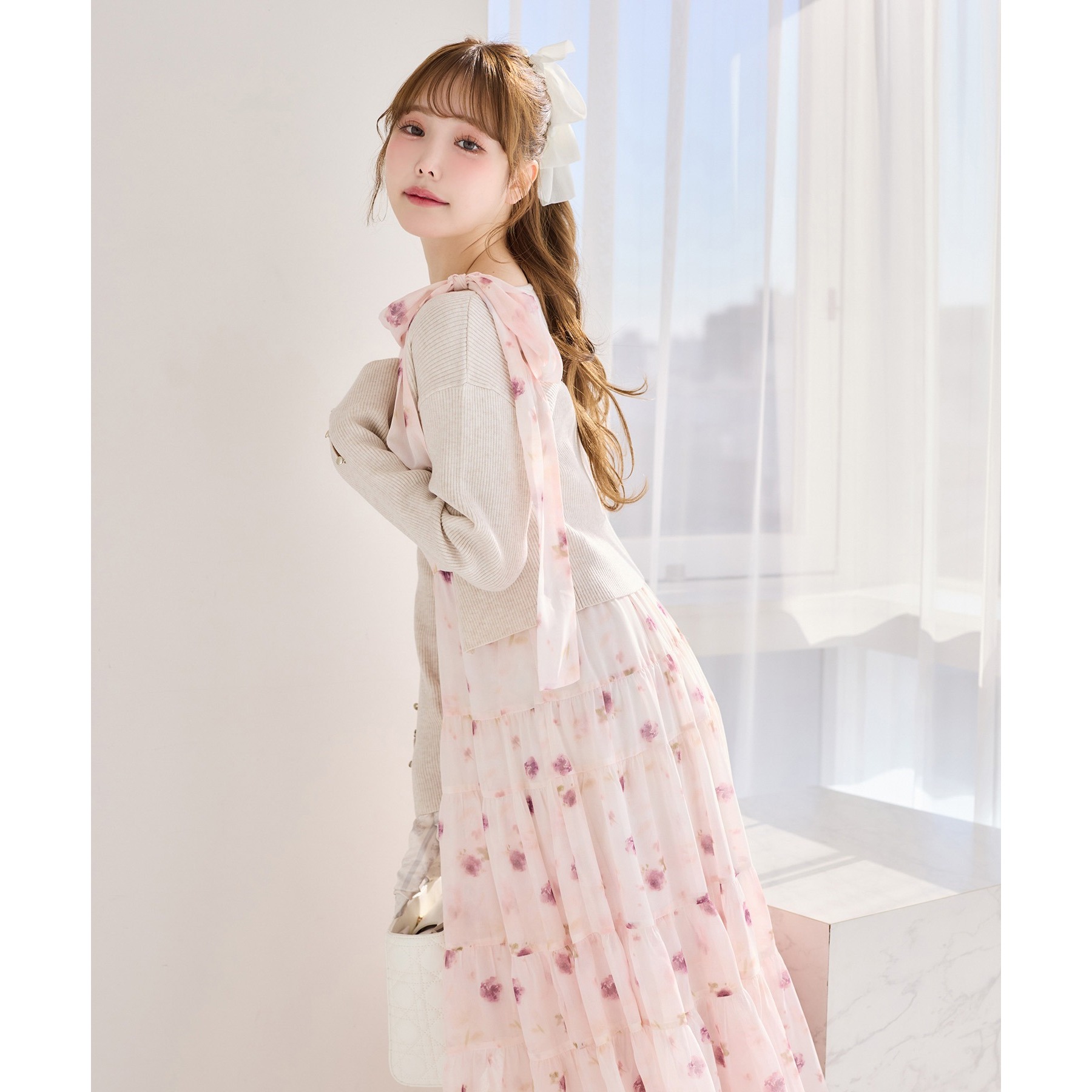 シルエットがきれいなティアードデザインになったキャミワンピースとカーディガンのセットアイテム。