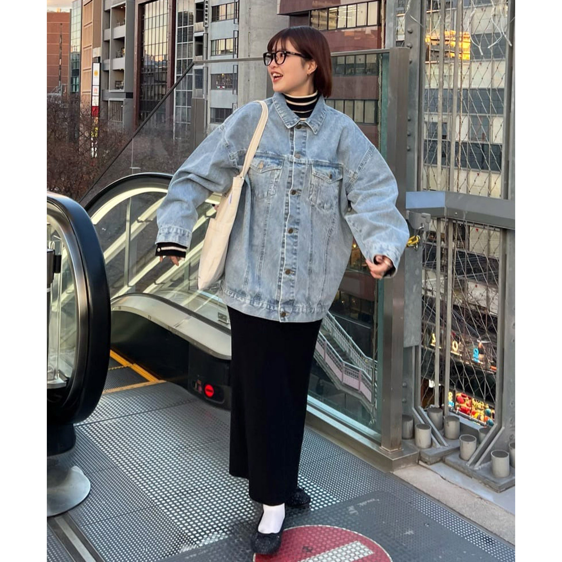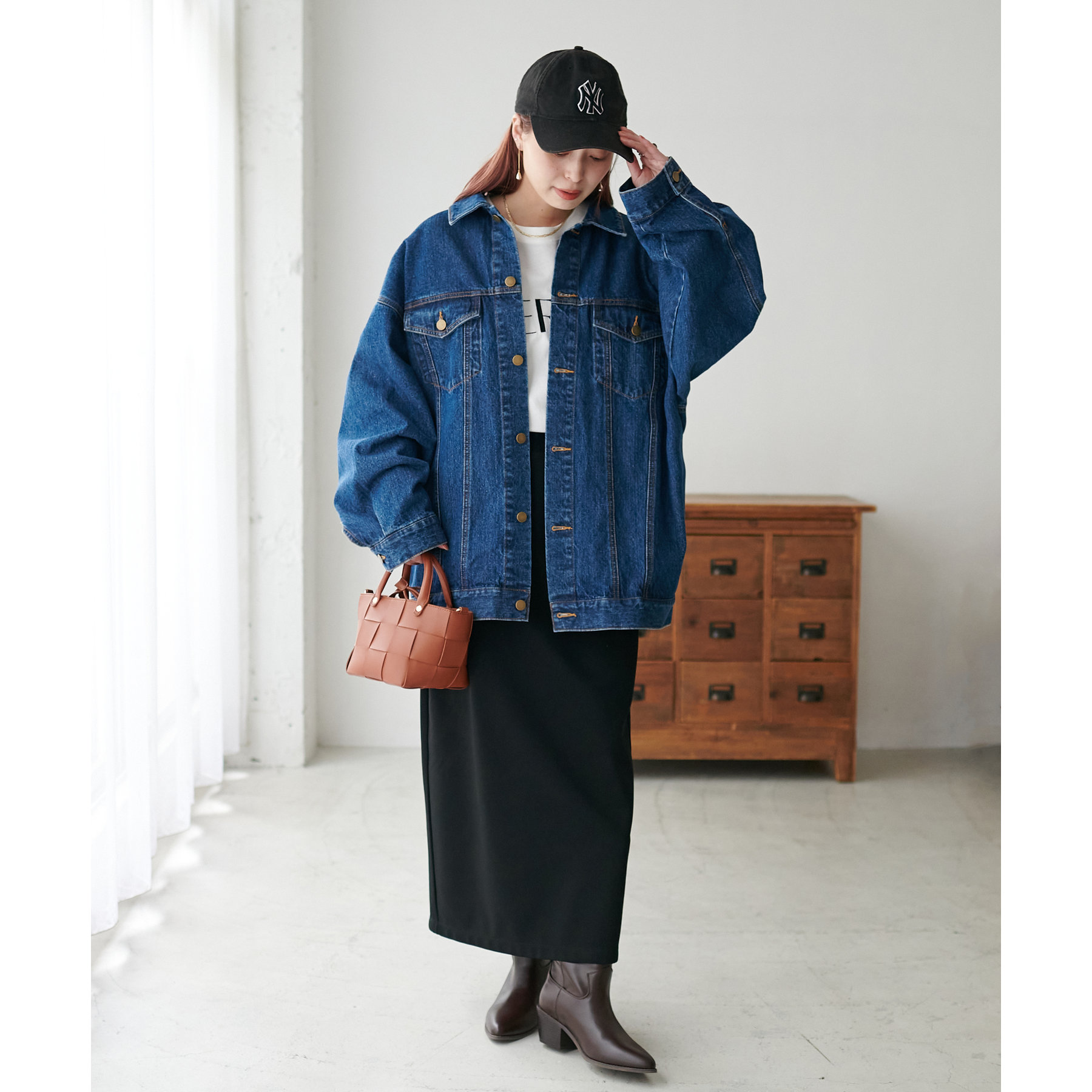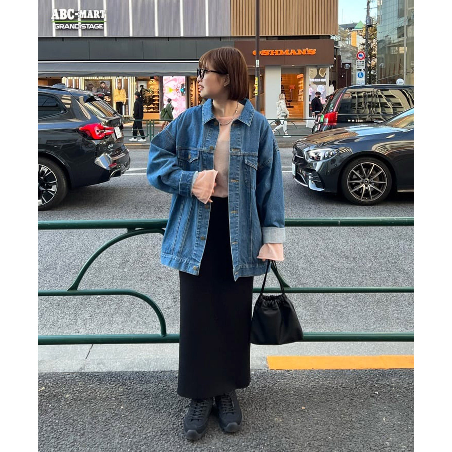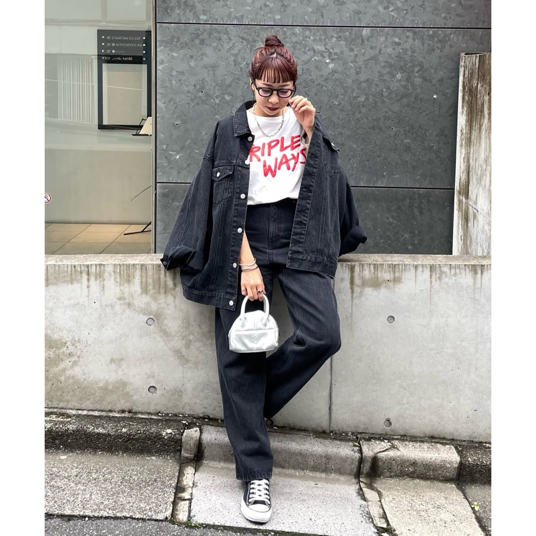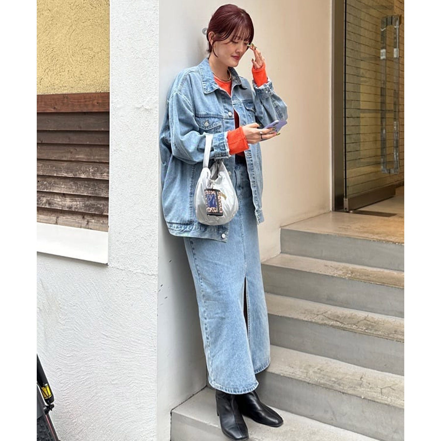 同色のデニムパンツを合わせたセットアップ風スタイルで上級者見えな着こなしも楽しめます。