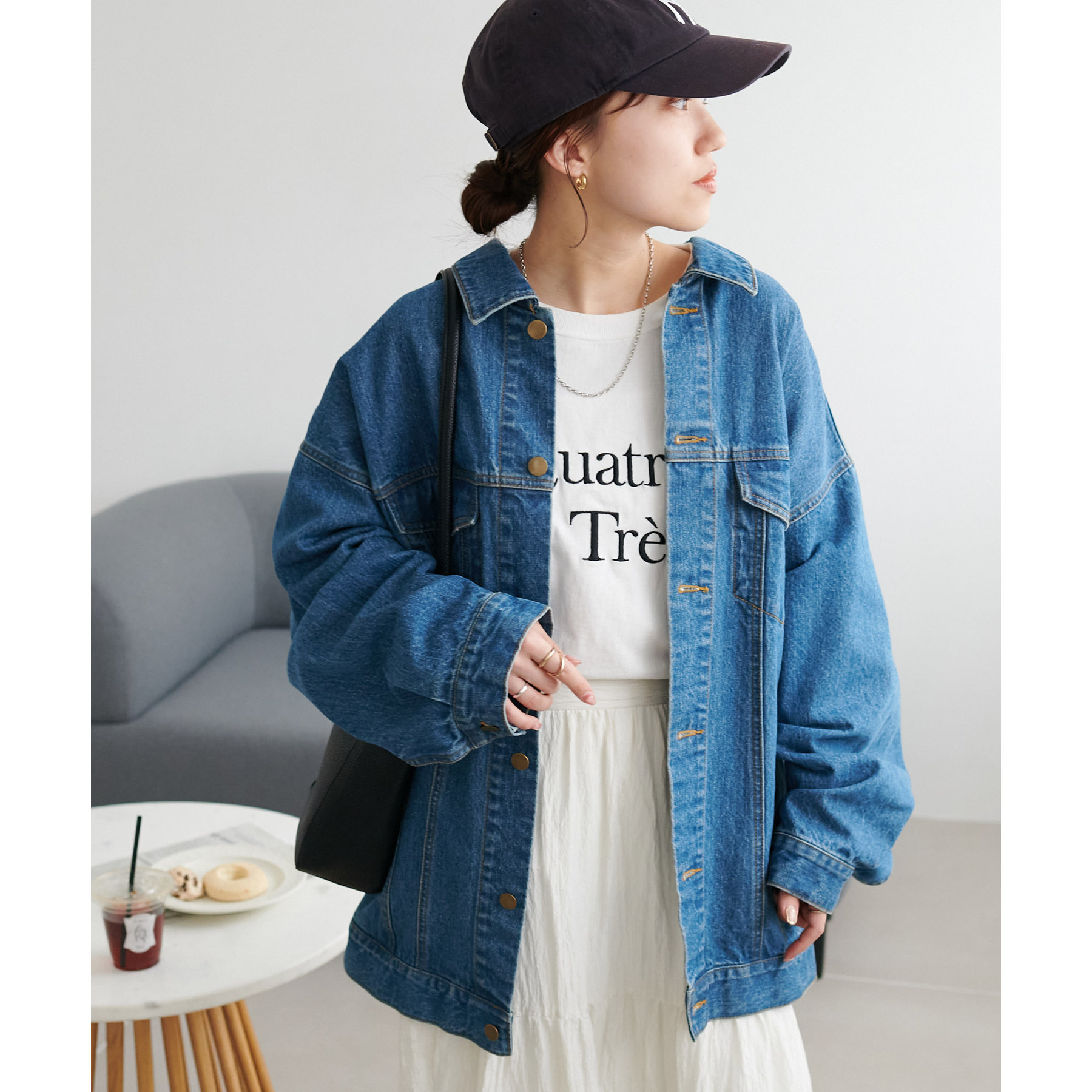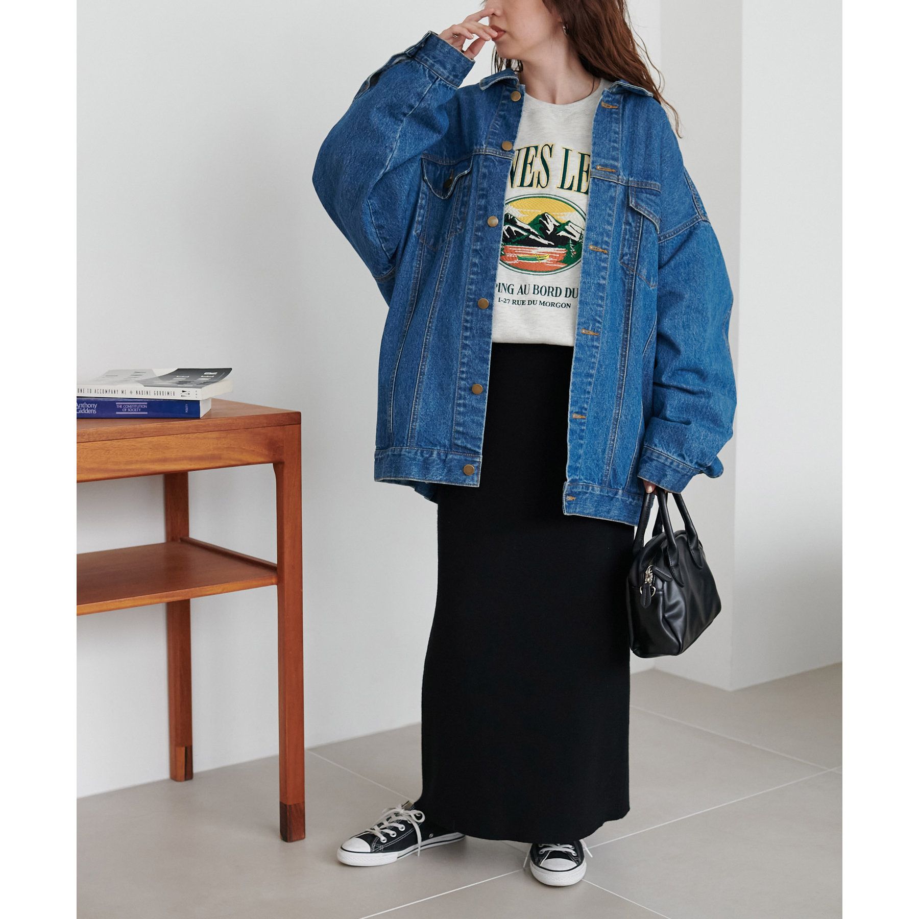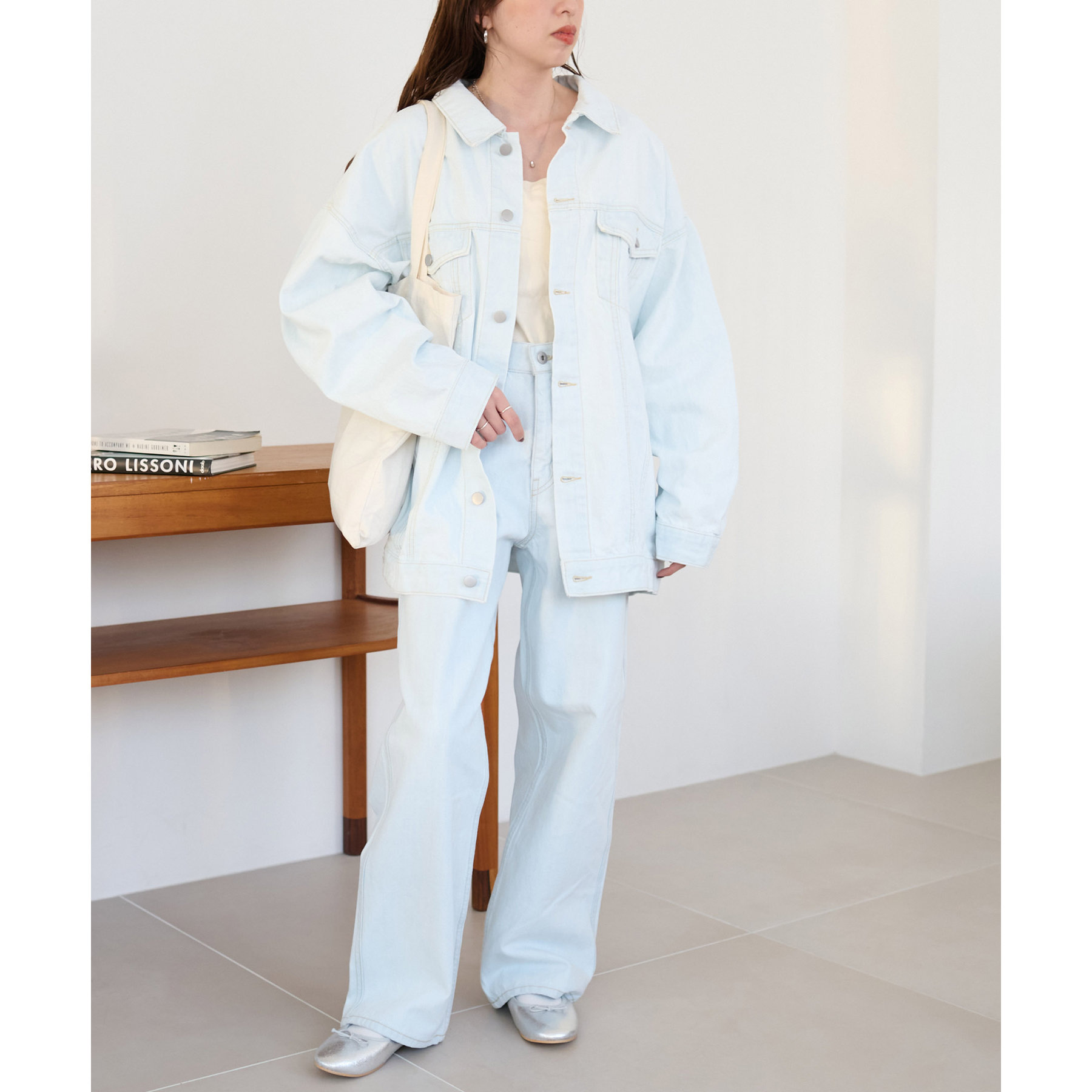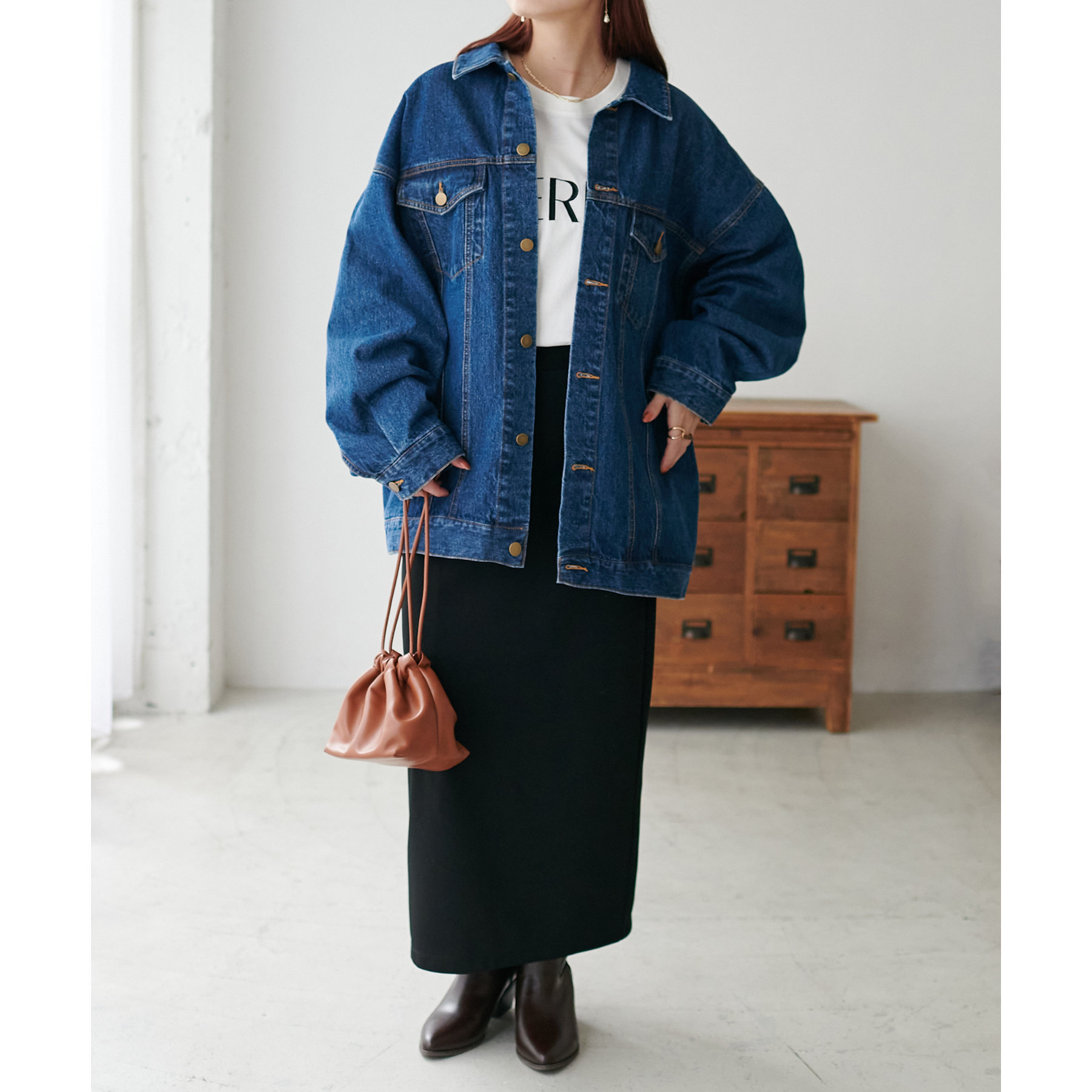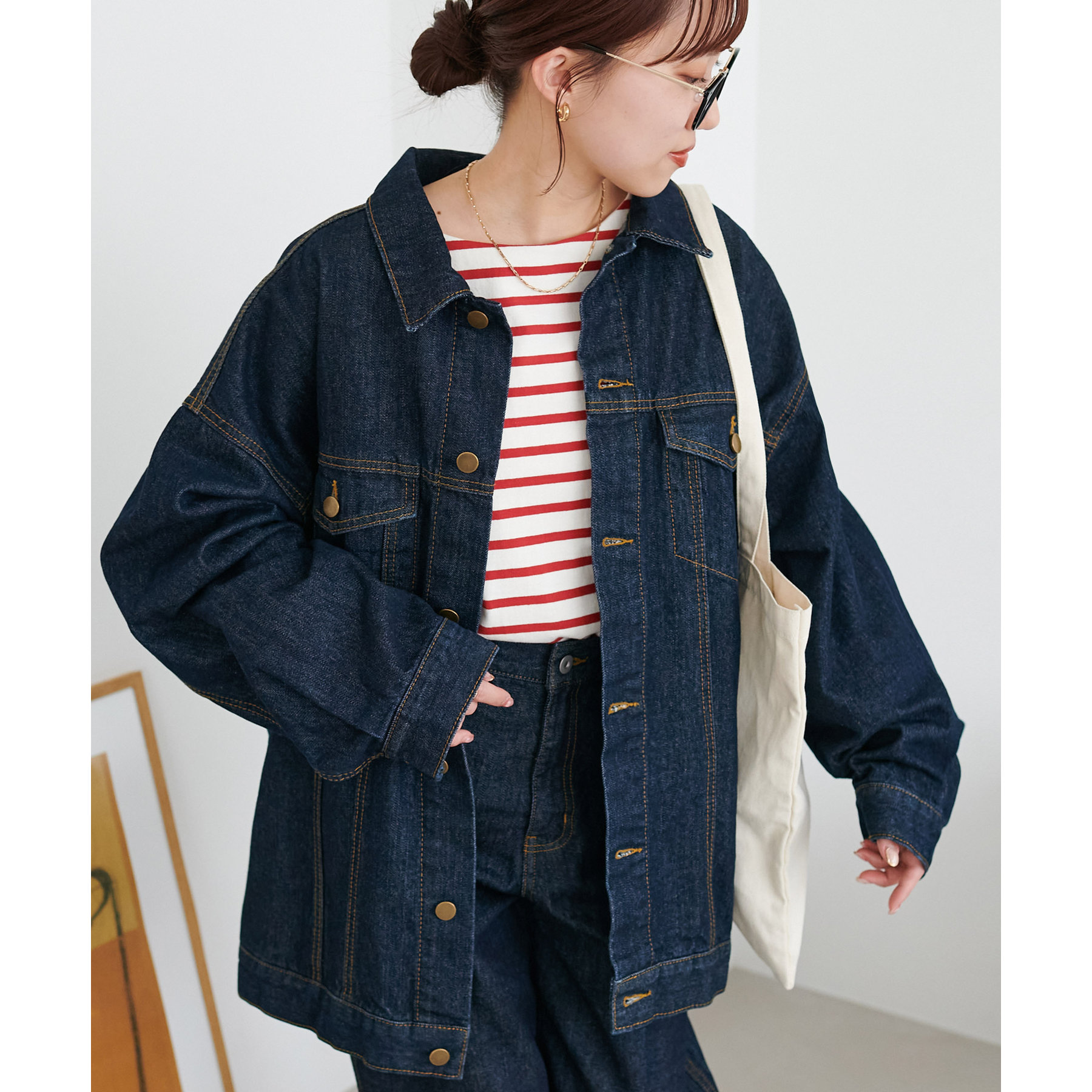 同色のデニムパンツを合わせたセットアップ風スタイルで上級者見えな着こなしも楽しめます。