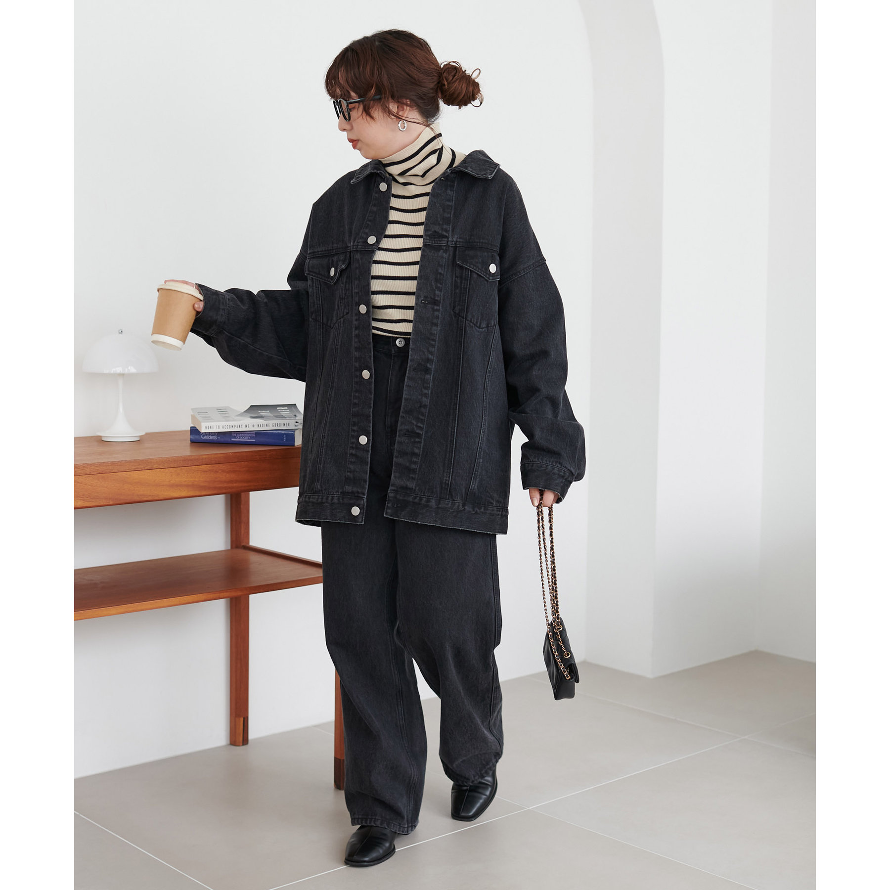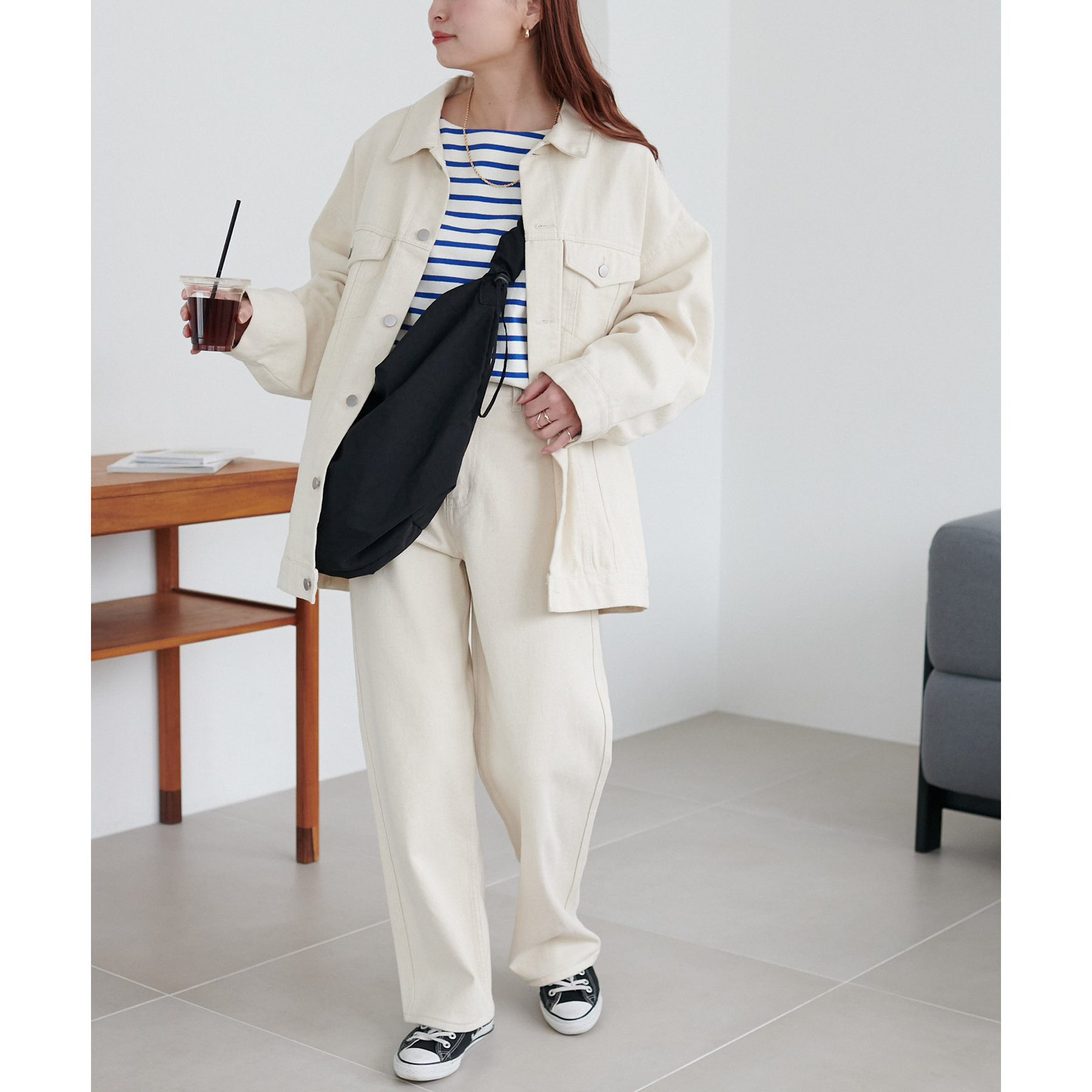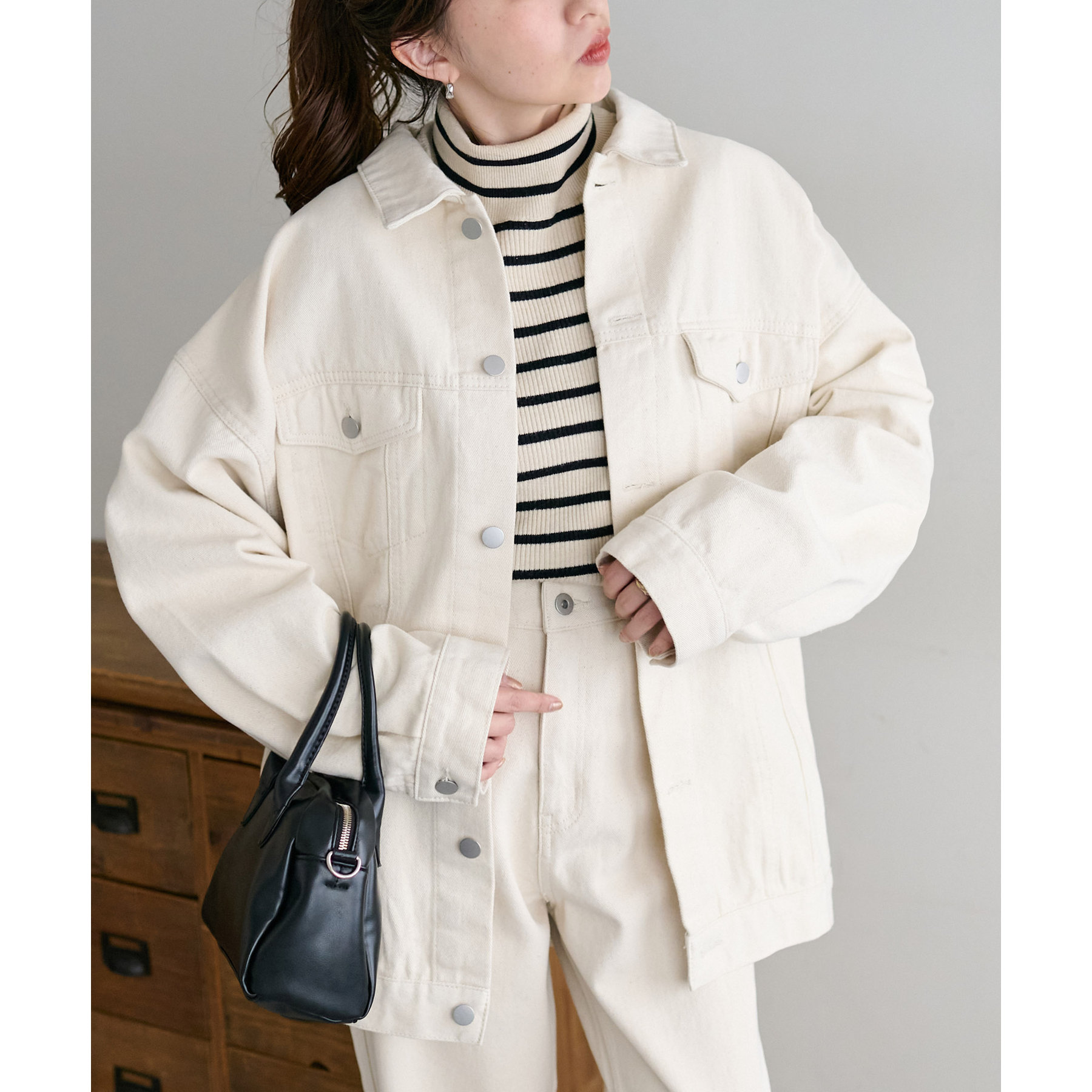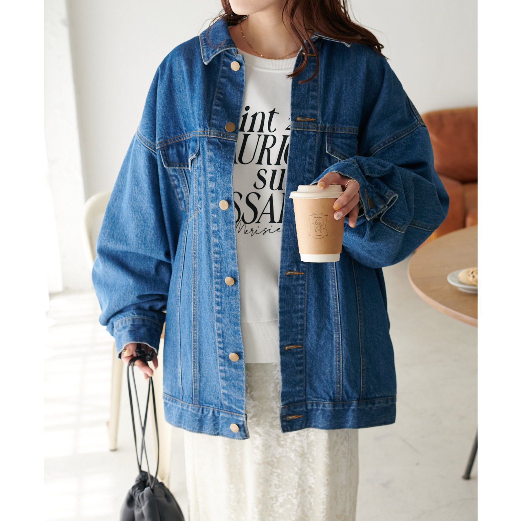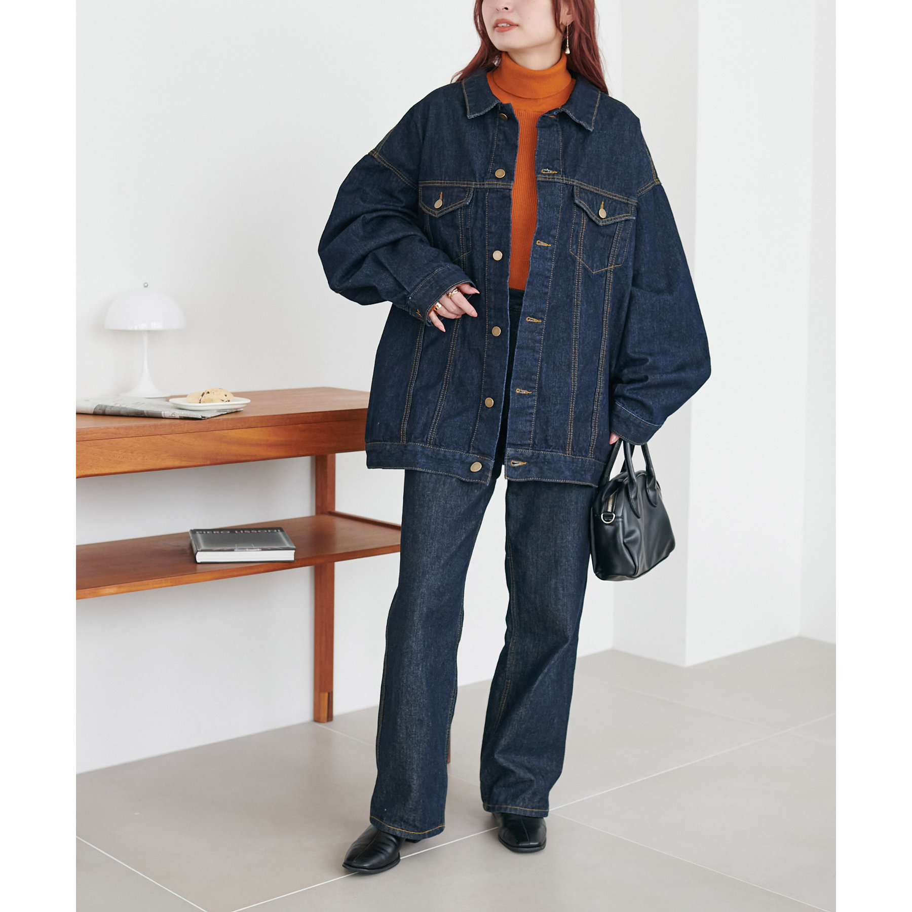 同色のデニムパンツを合わせたセットアップ風スタイルで上級者見えな着こなしも楽しめます。
