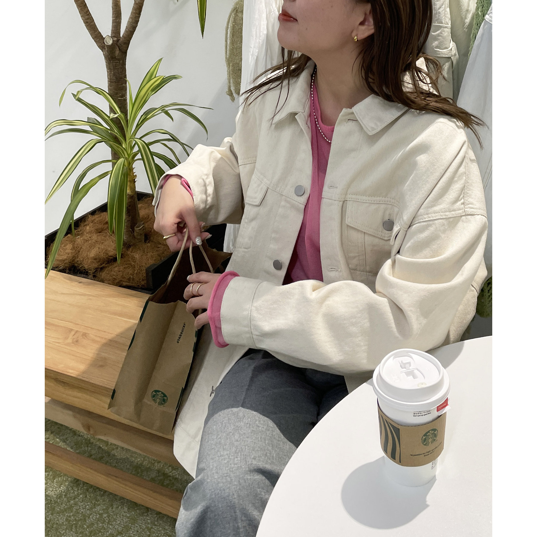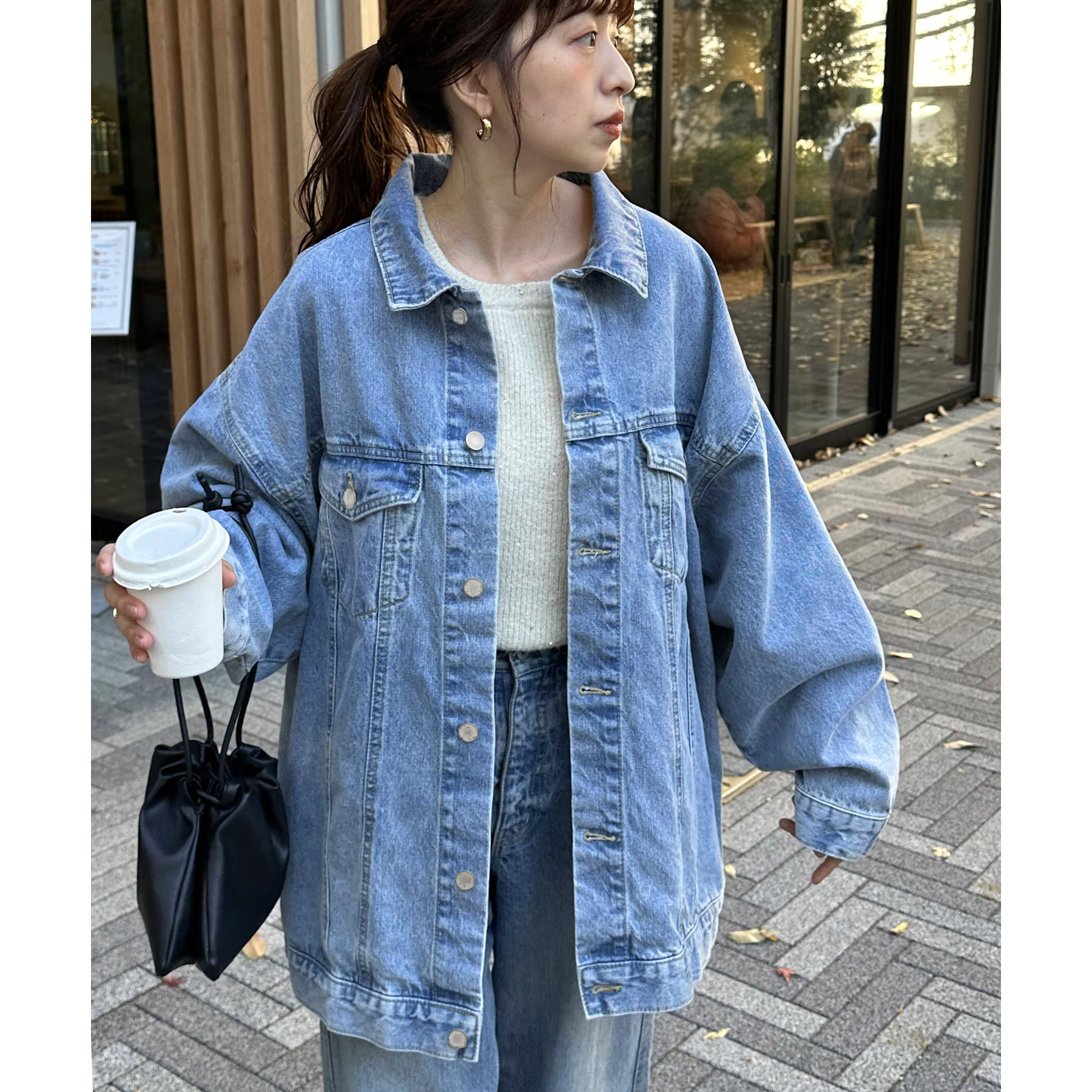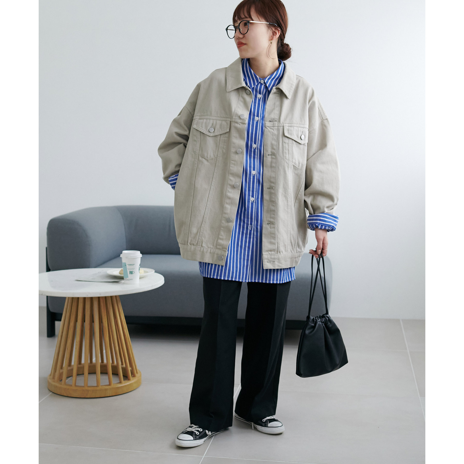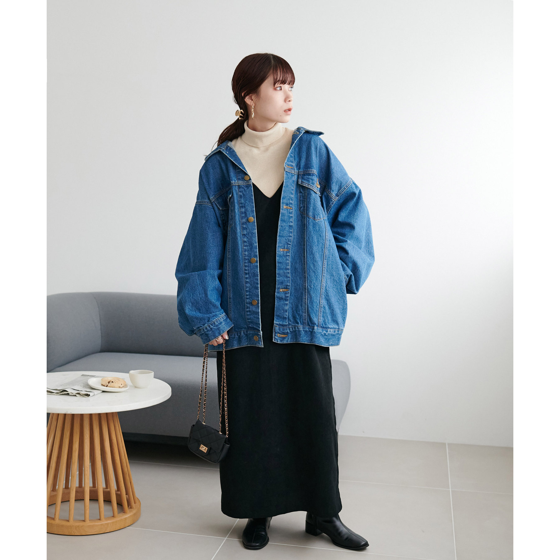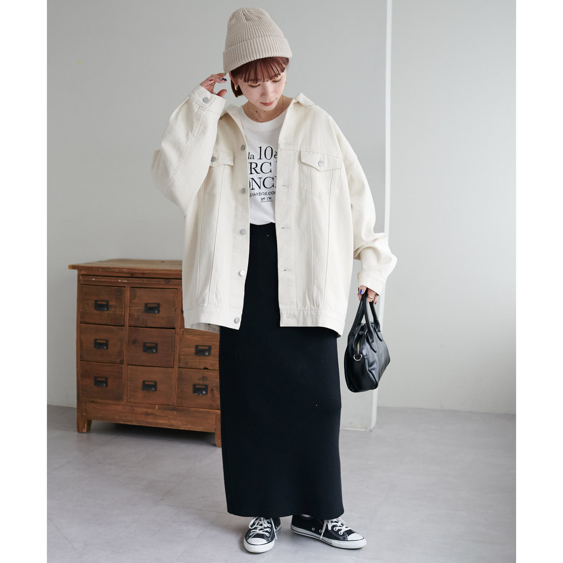 同色のデニムパンツを合わせたセットアップ風スタイルで上級者見えな着こなしも楽しめます。