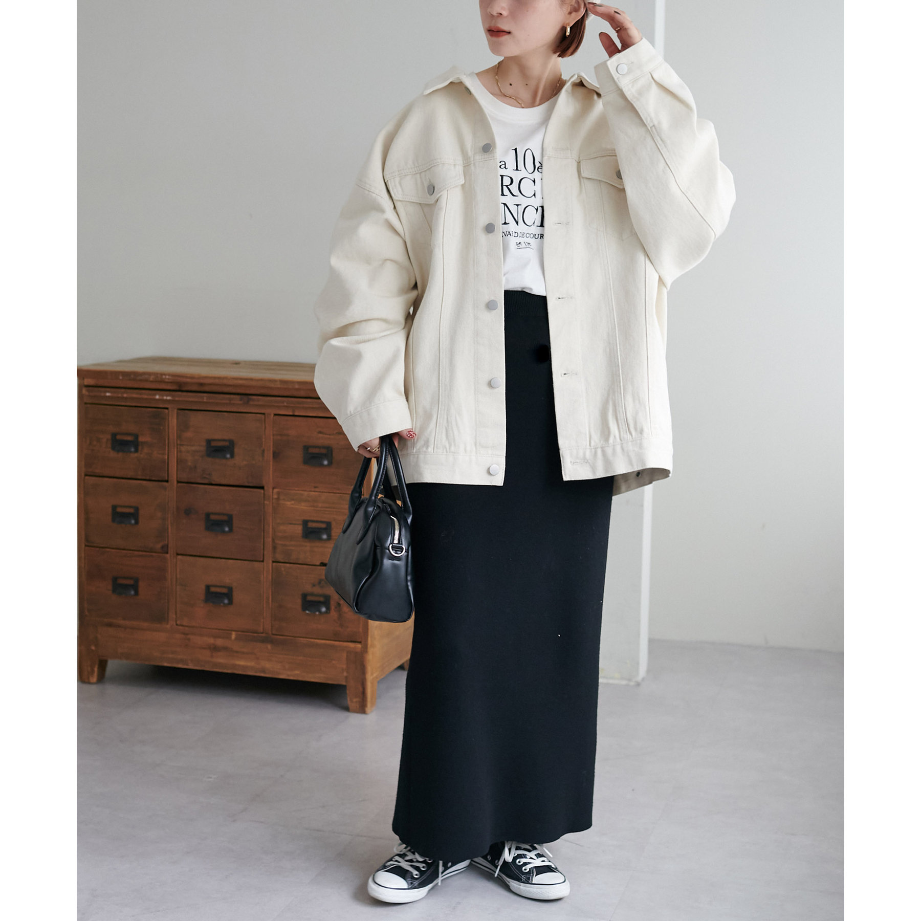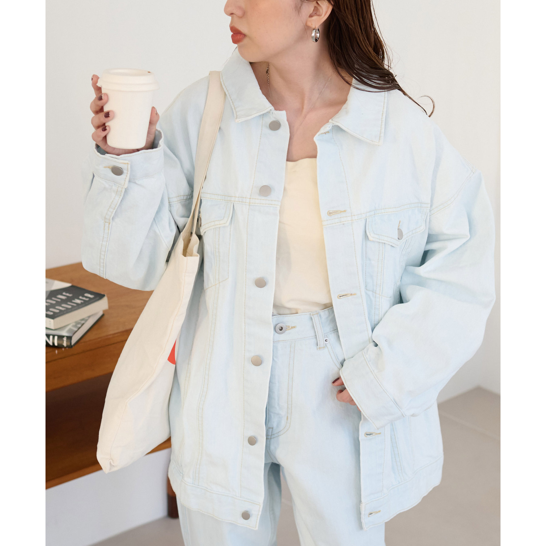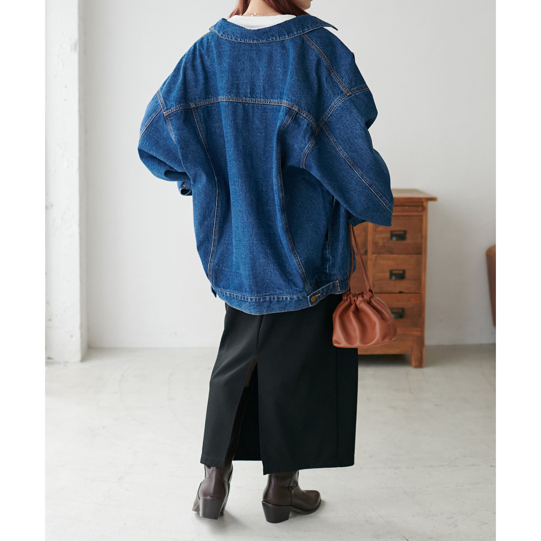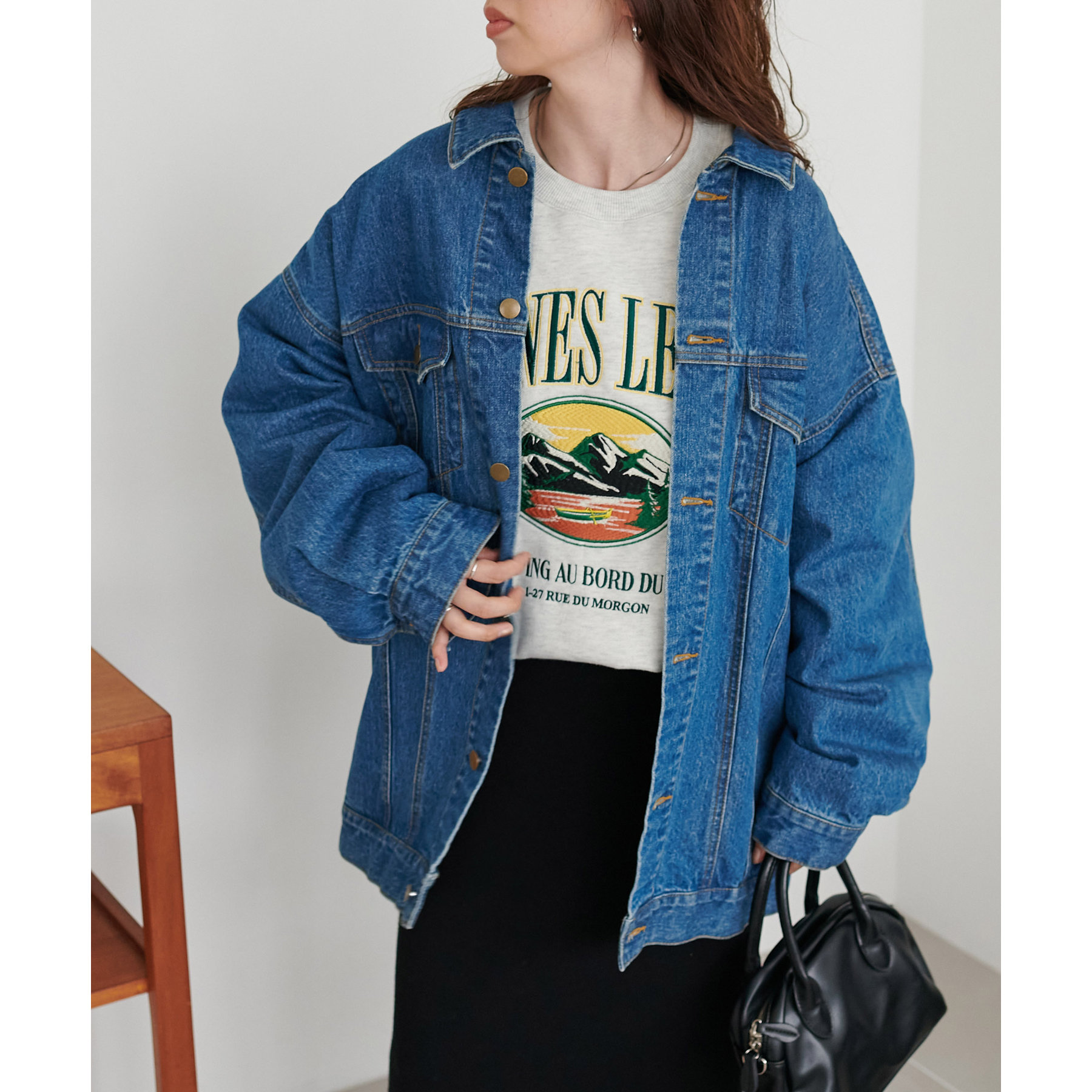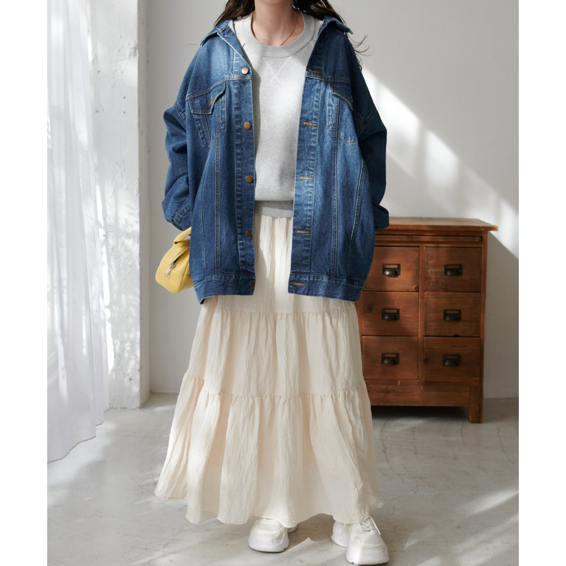 同色のデニムパンツを合わせたセットアップ風スタイルで上級者見えな着こなしも楽しめます。