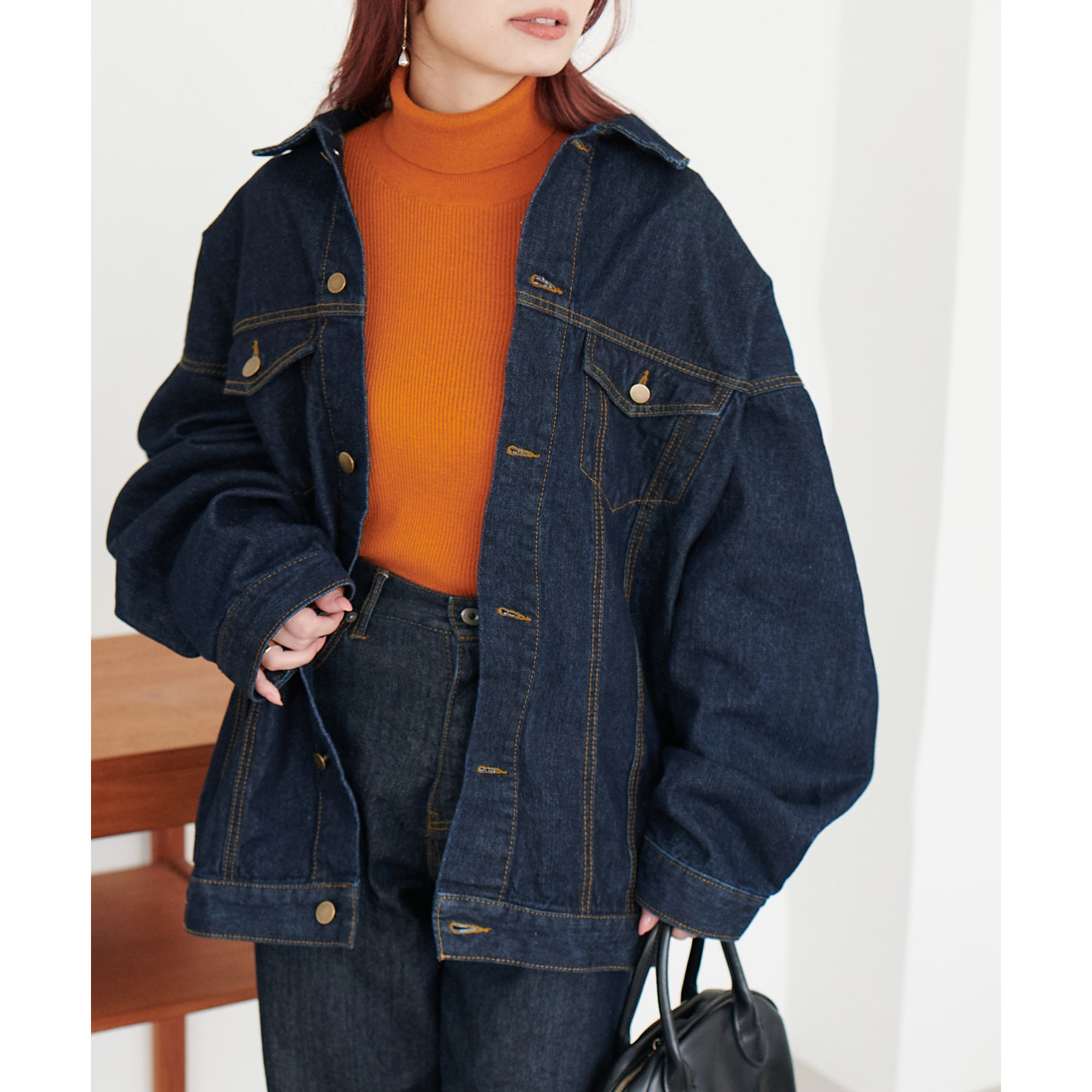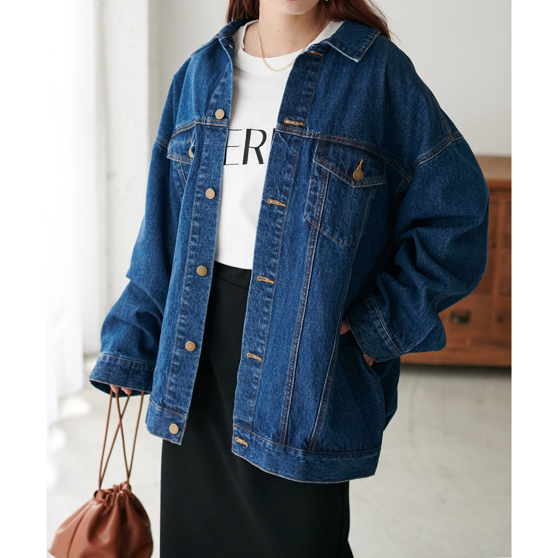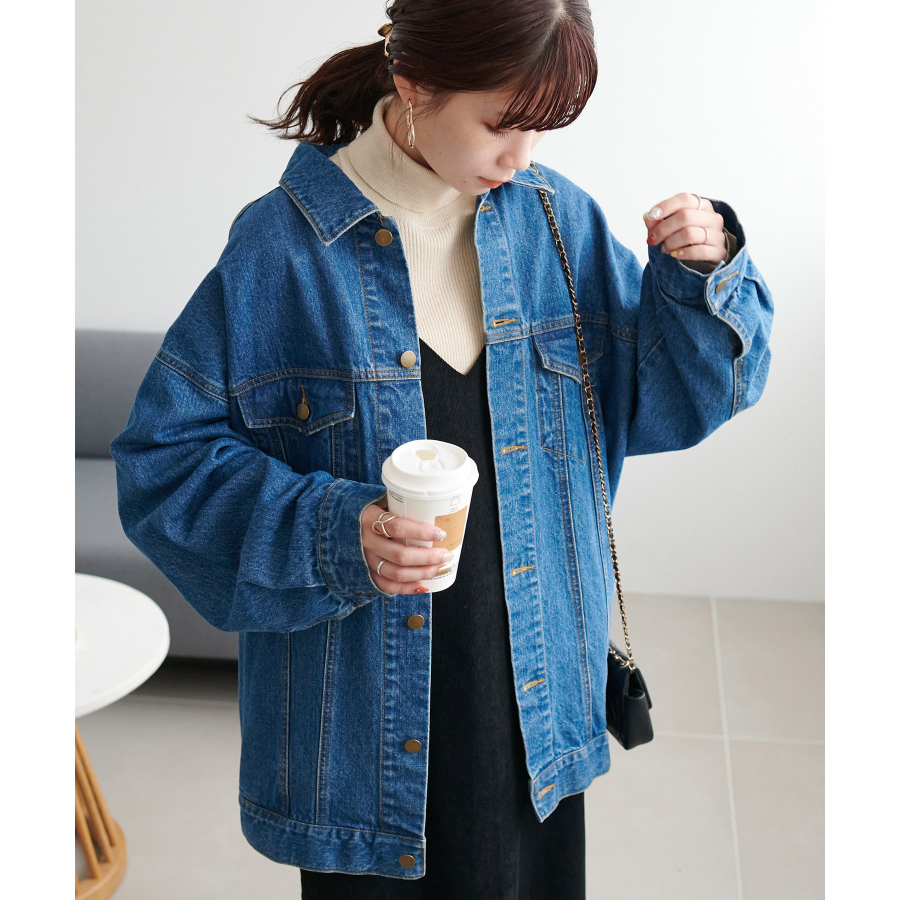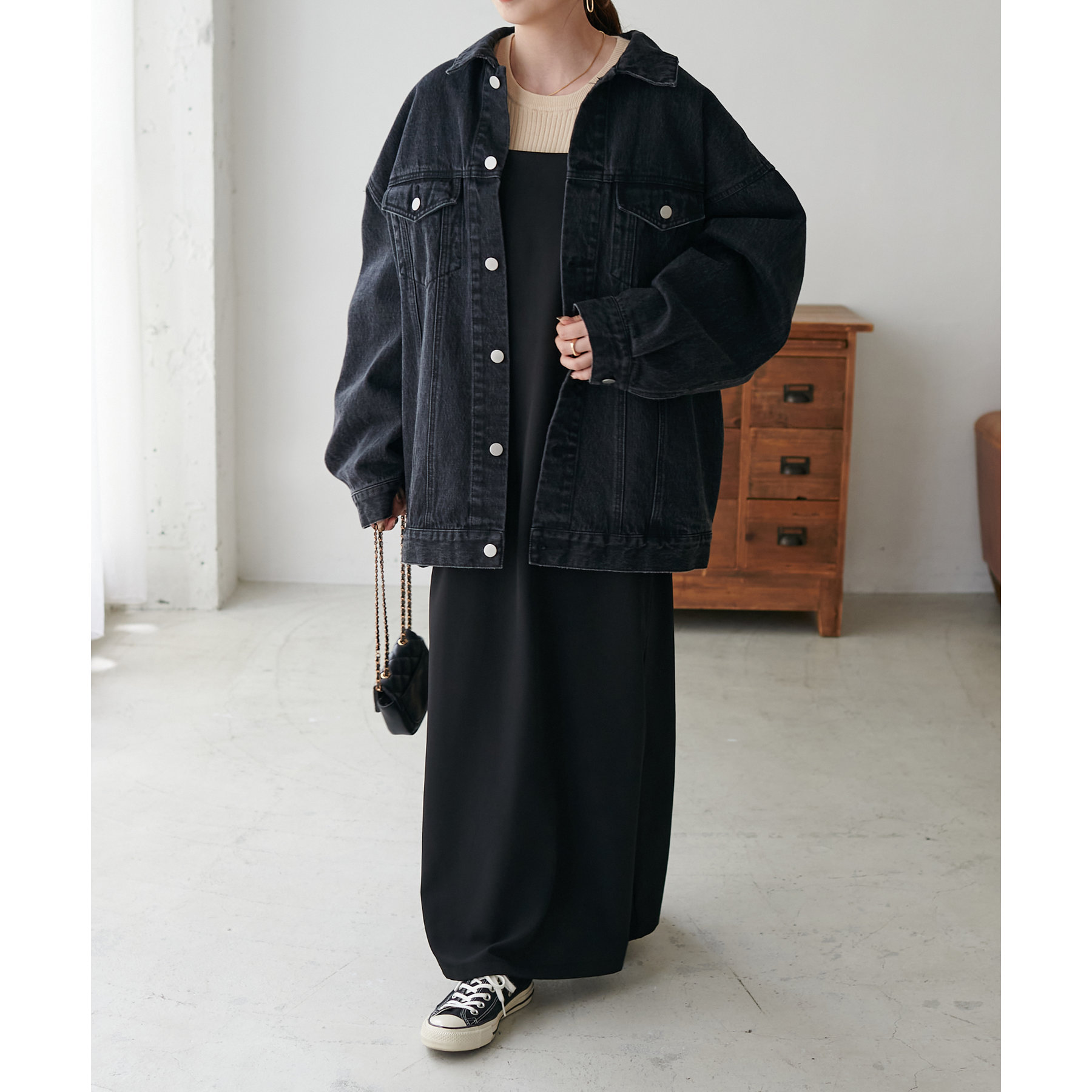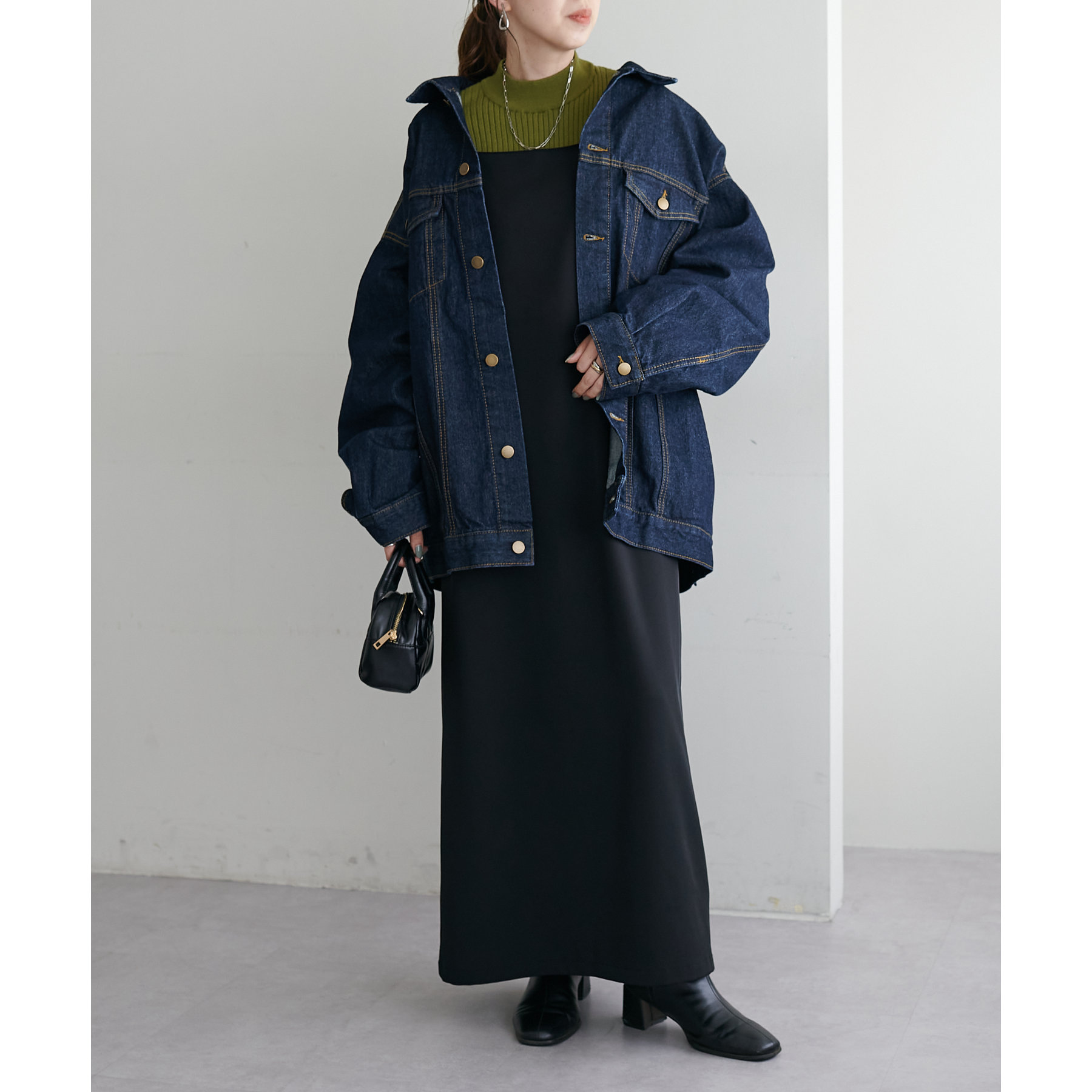 同色のデニムパンツを合わせたセットアップ風スタイルで上級者見えな着こなしも楽しめます。