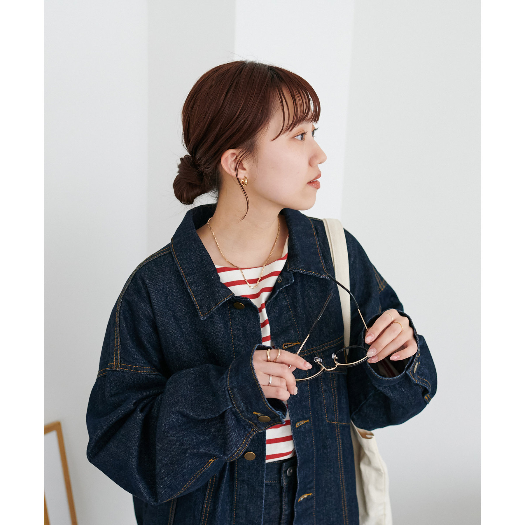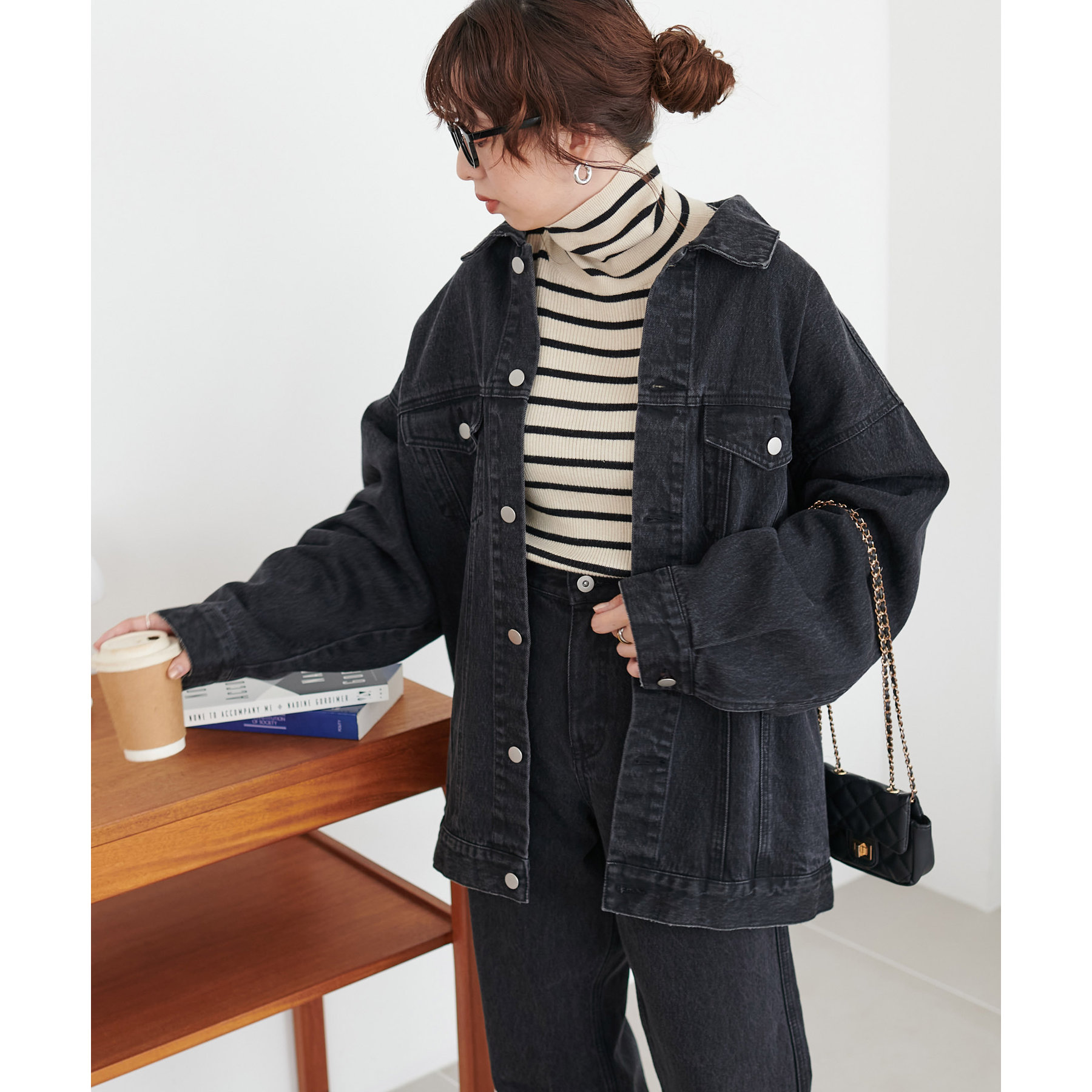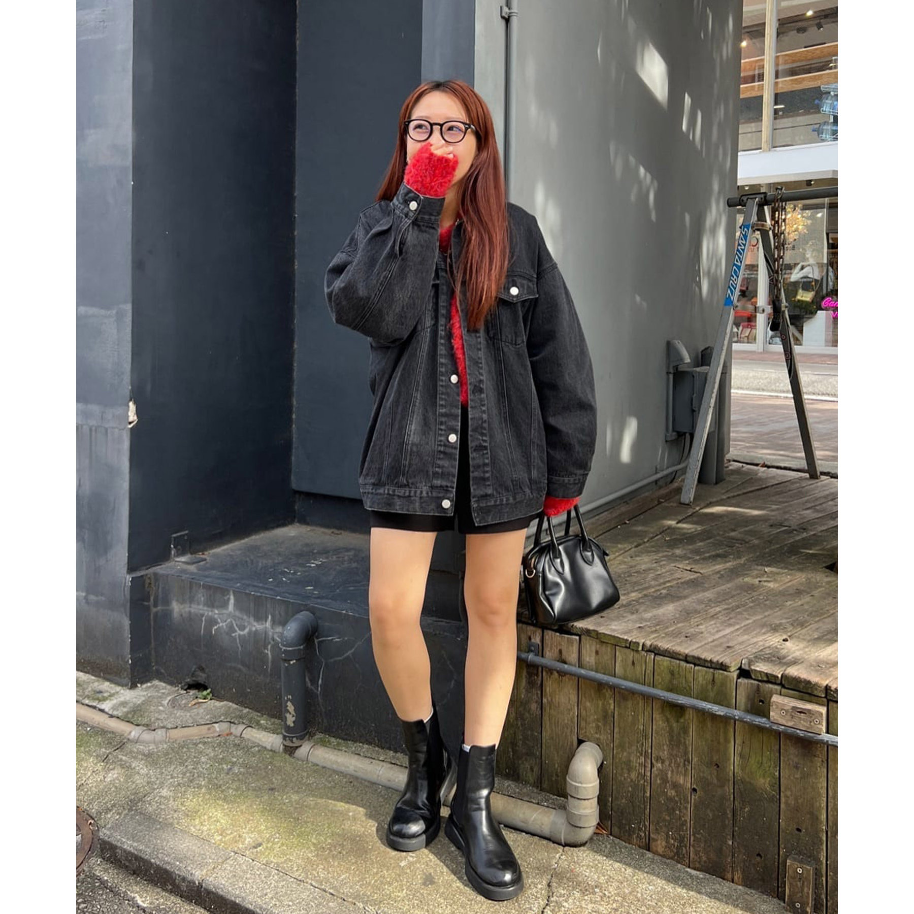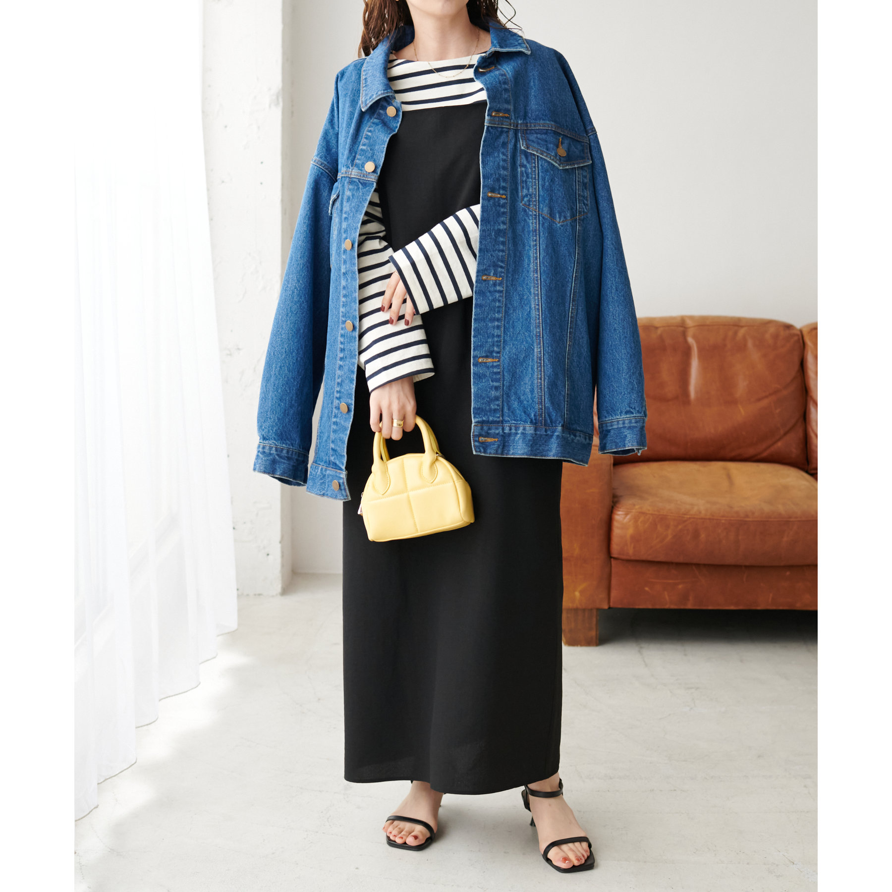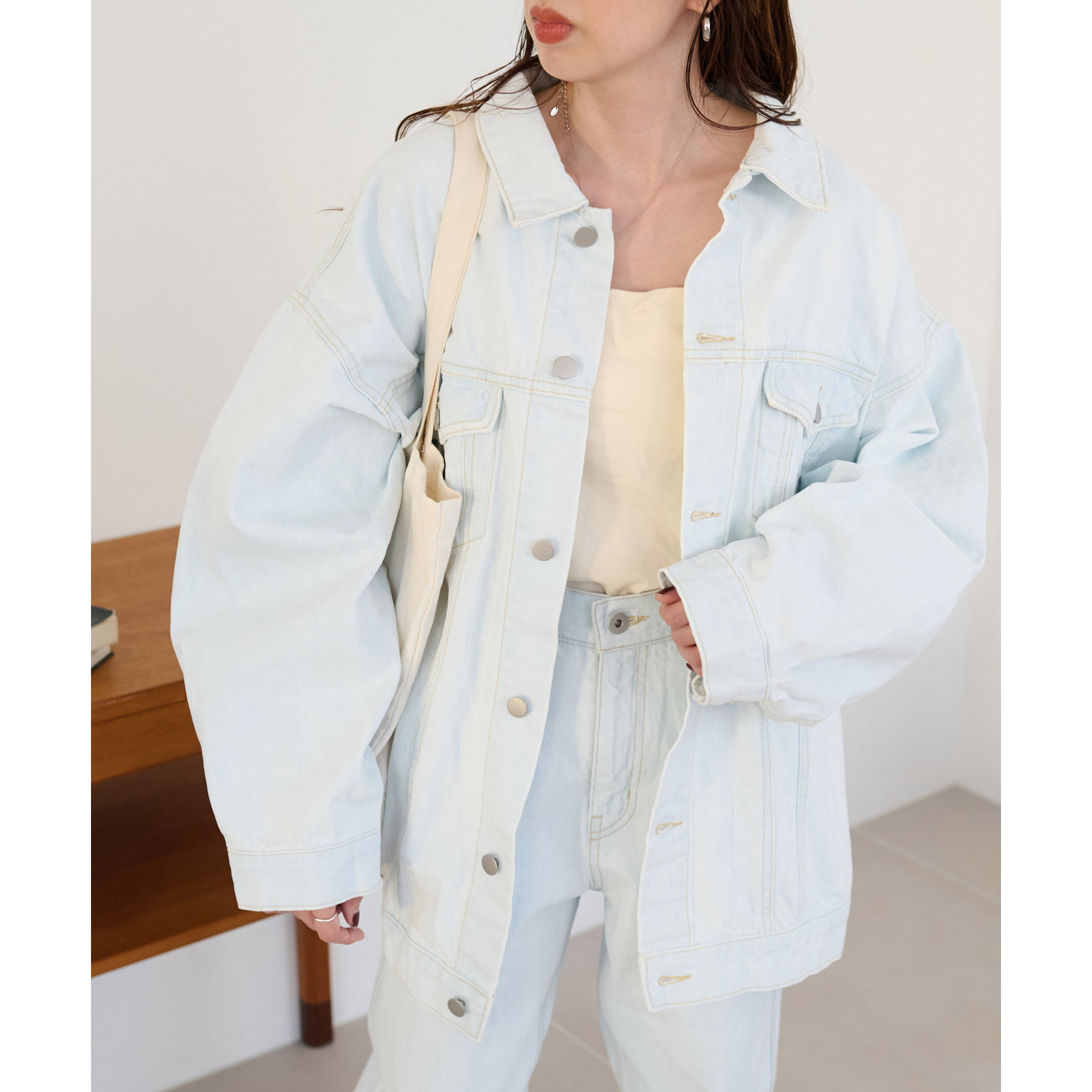 同色のデニムパンツを合わせたセットアップ風スタイルで上級者見えな着こなしも楽しめます。