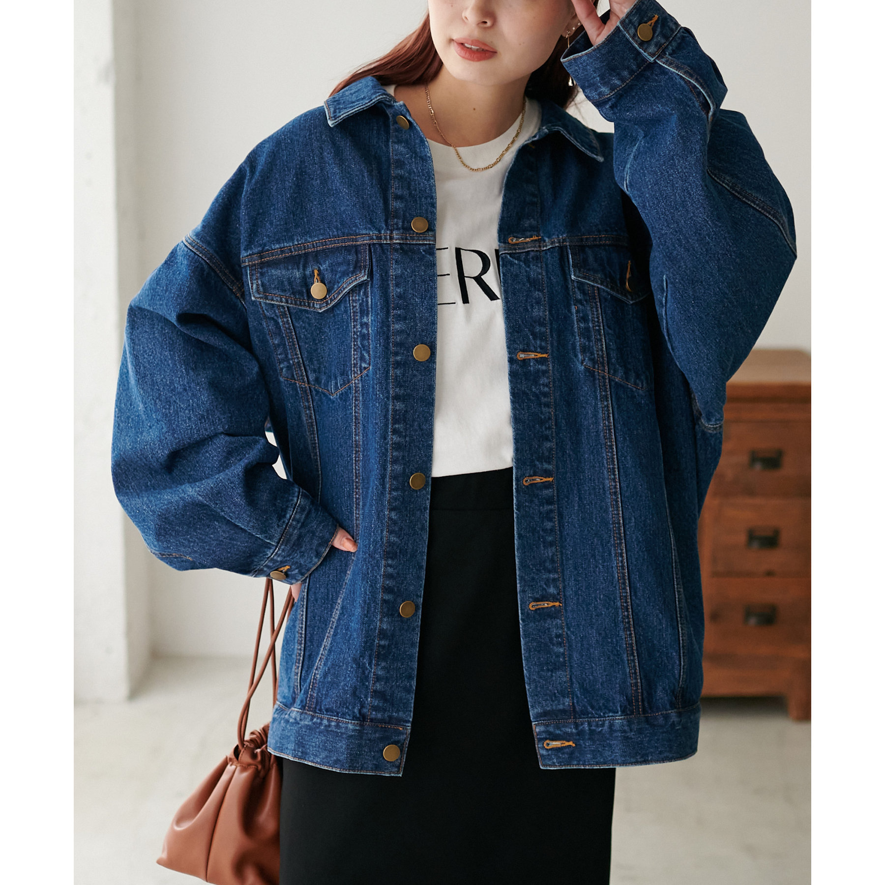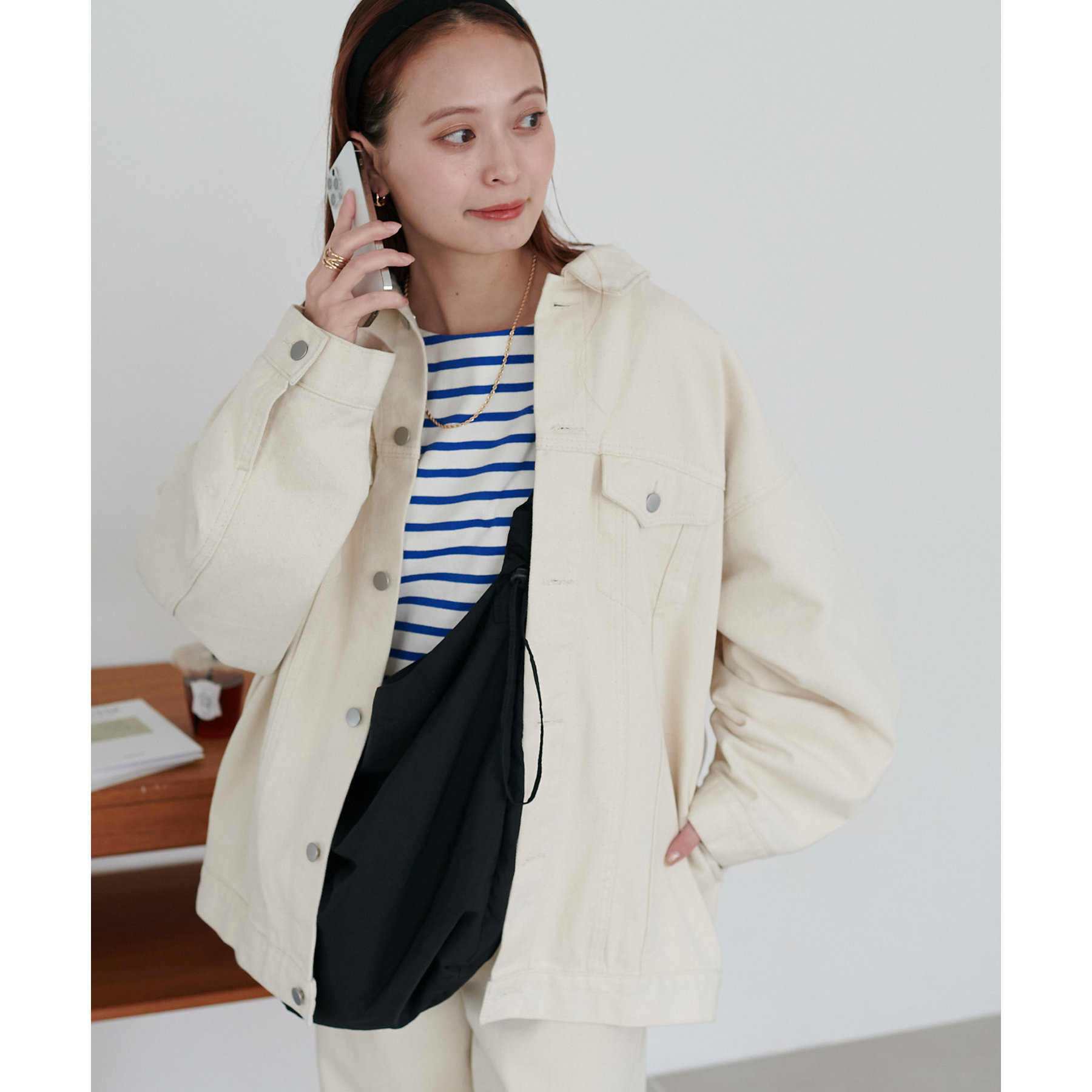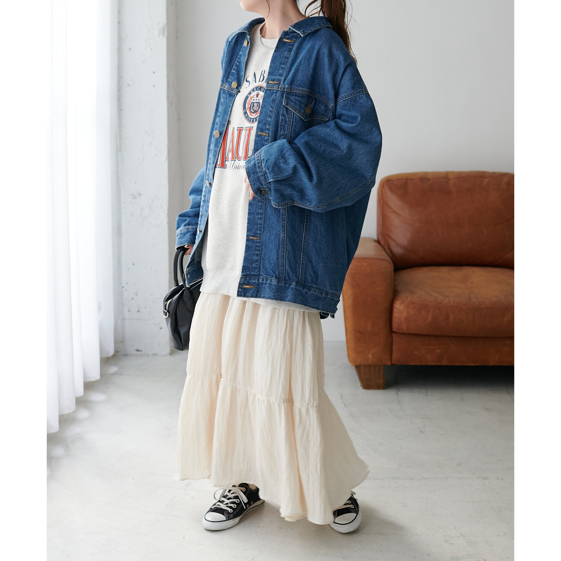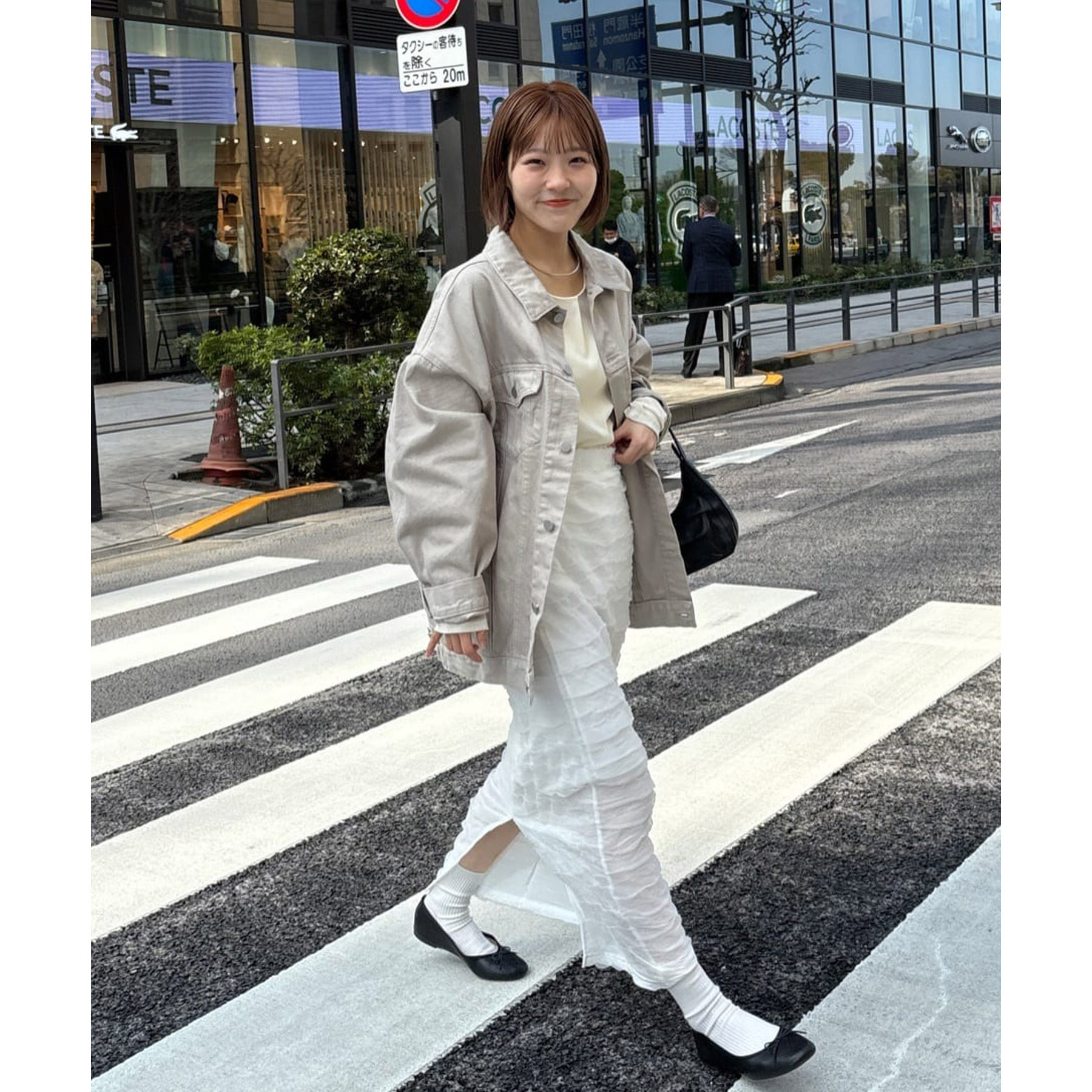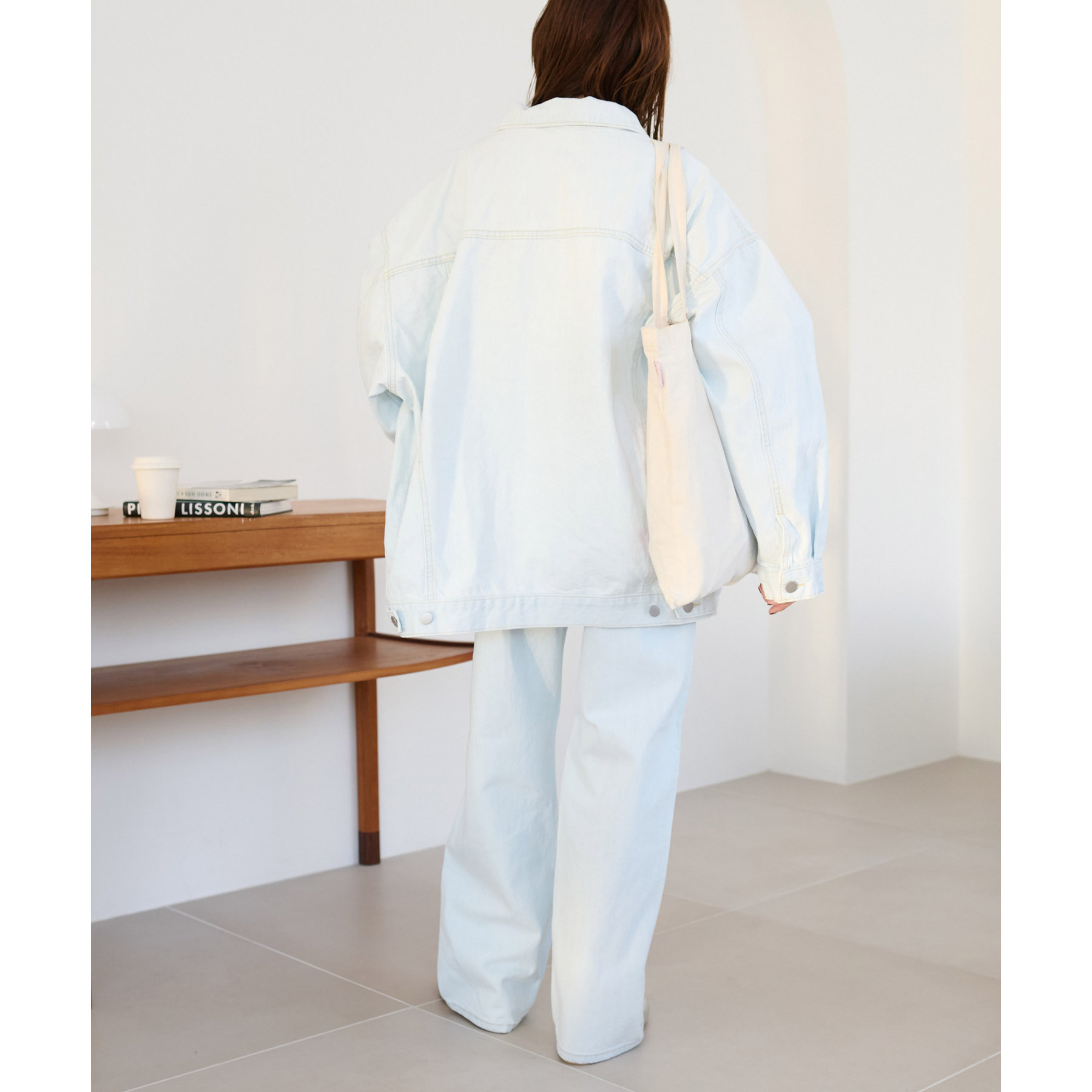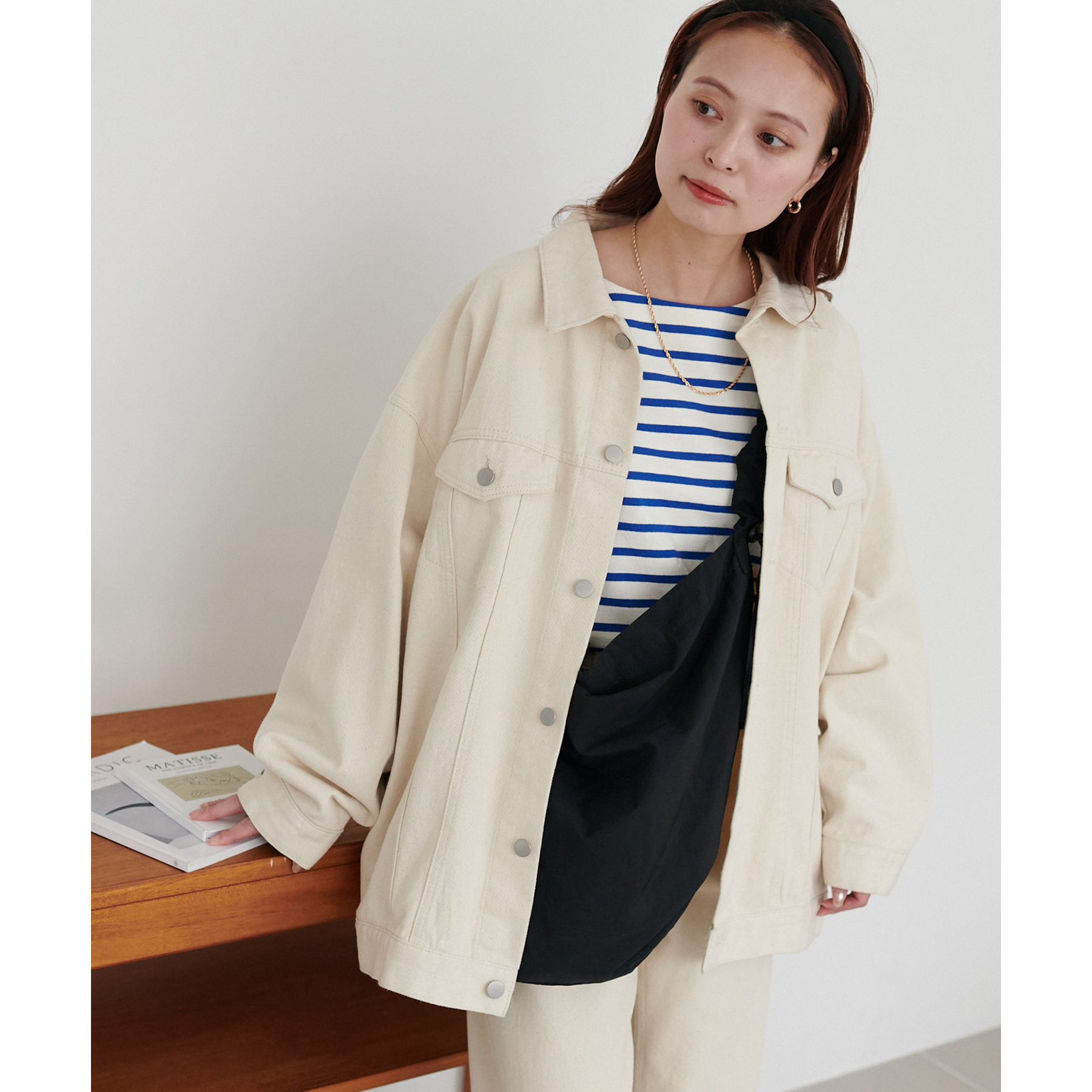 同色のデニムパンツを合わせたセットアップ風スタイルで上級者見えな着こなしも楽しめます。