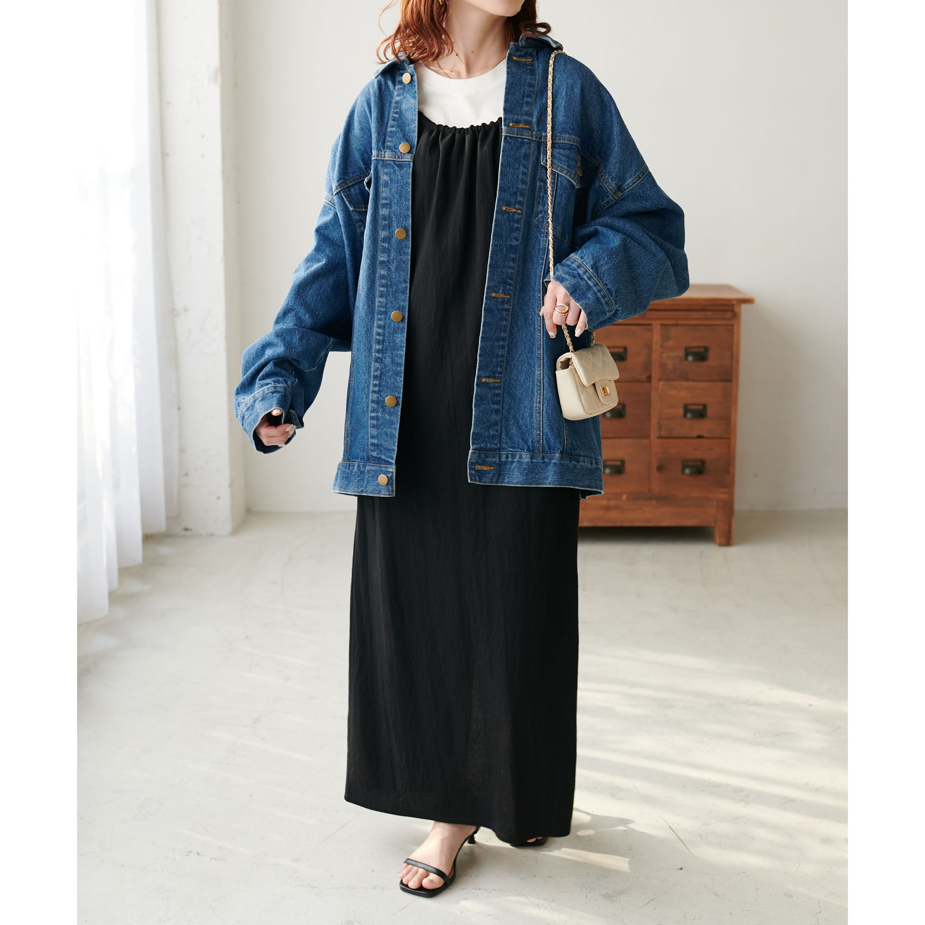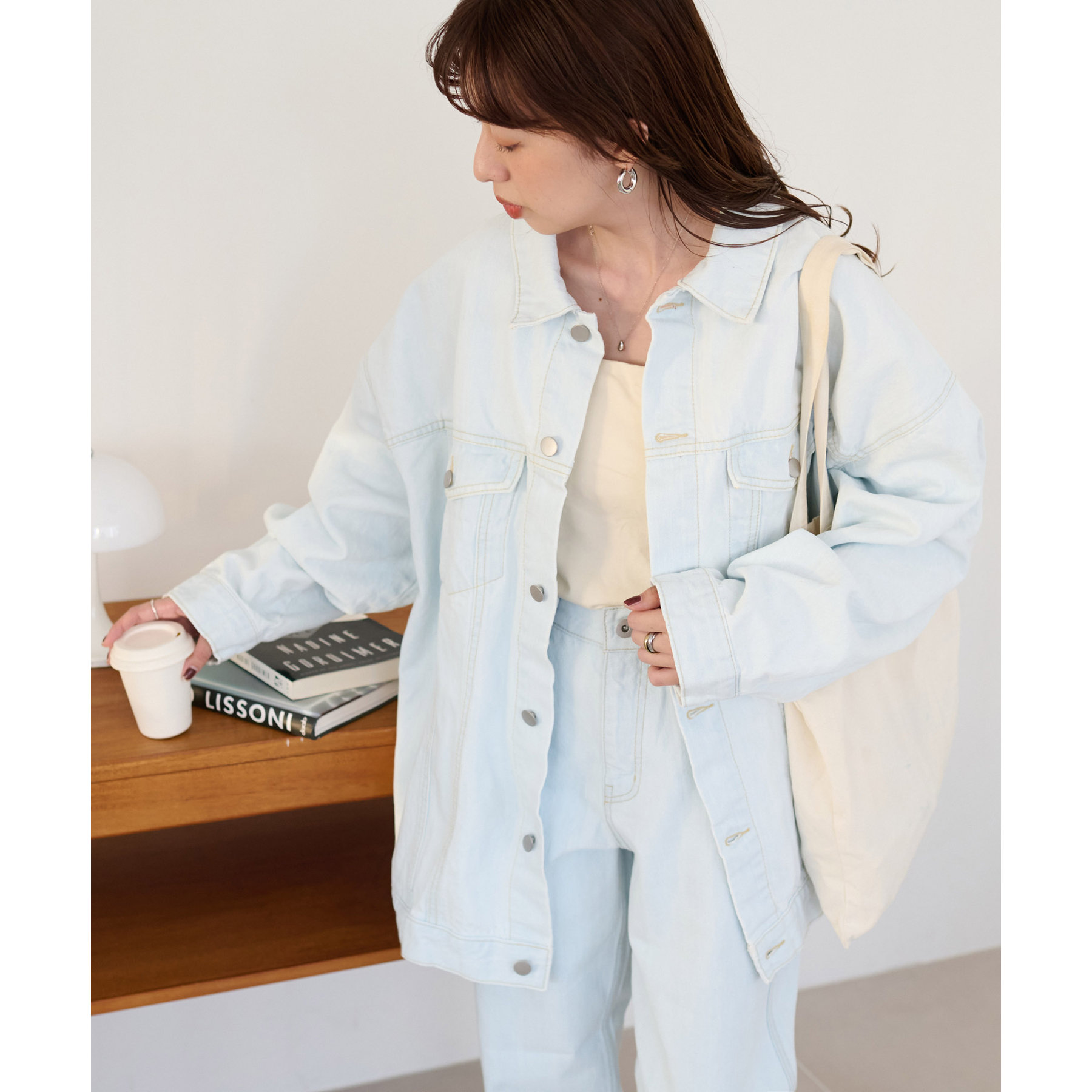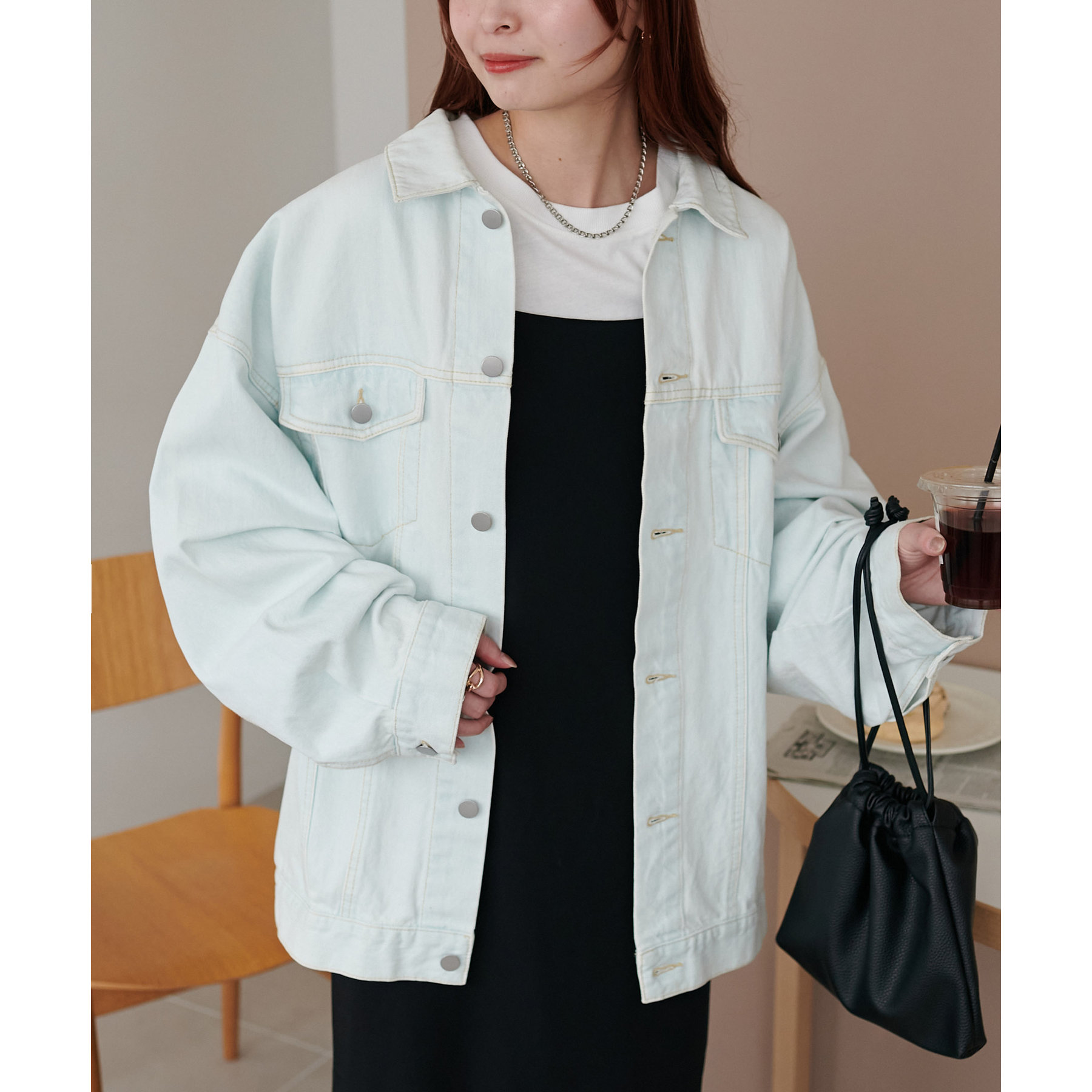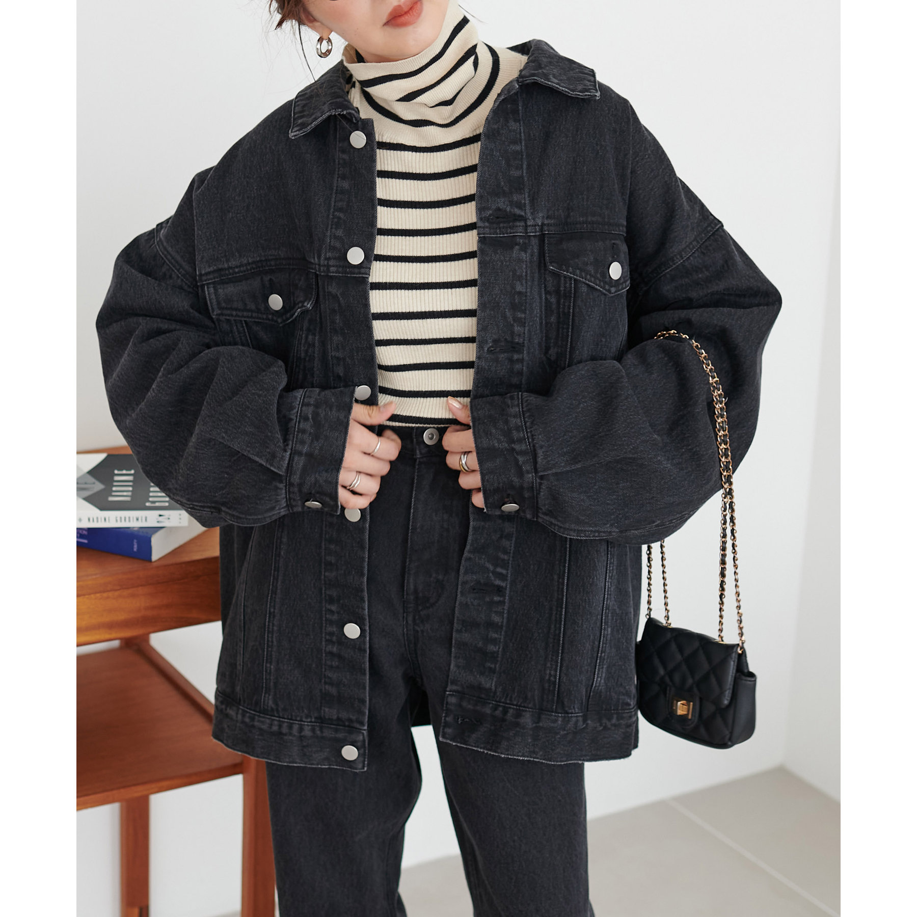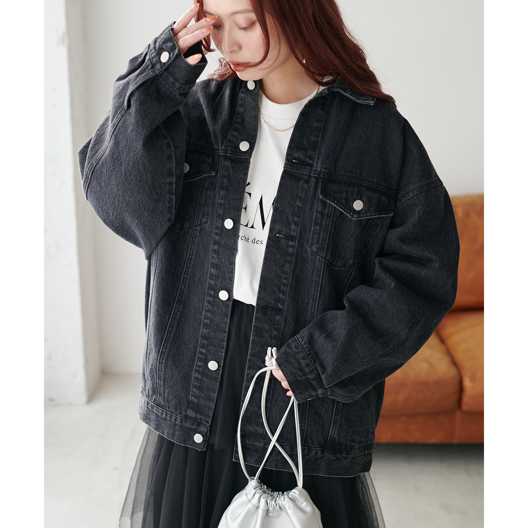 同色のデニムパンツを合わせたセットアップ風スタイルで上級者見えな着こなしも楽しめます。