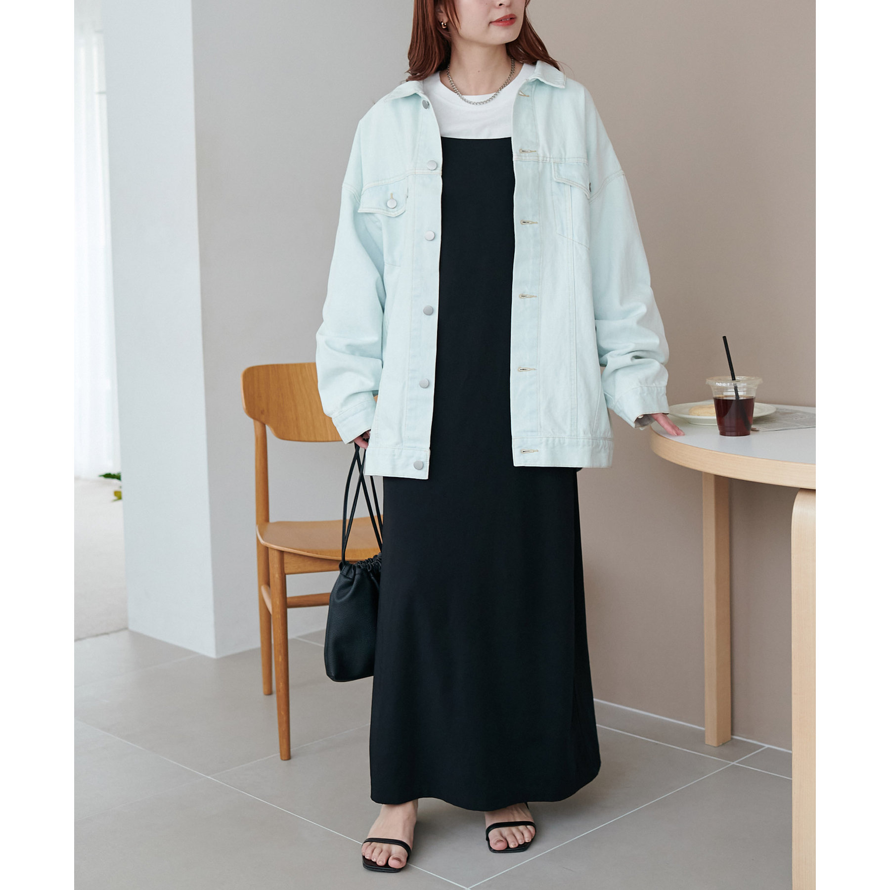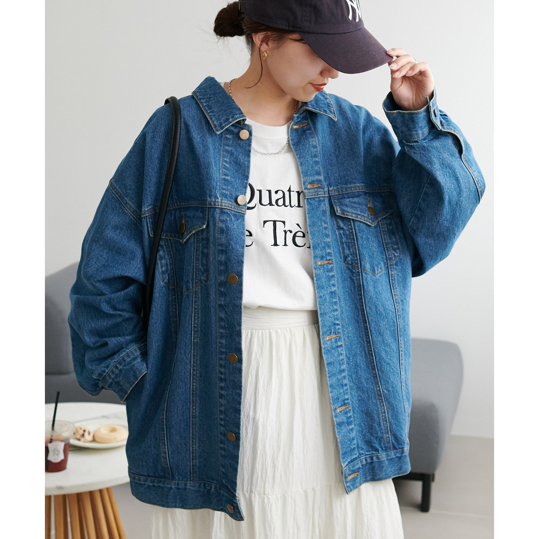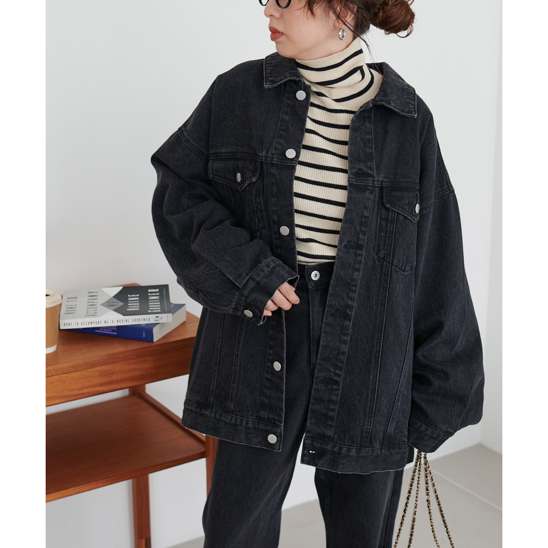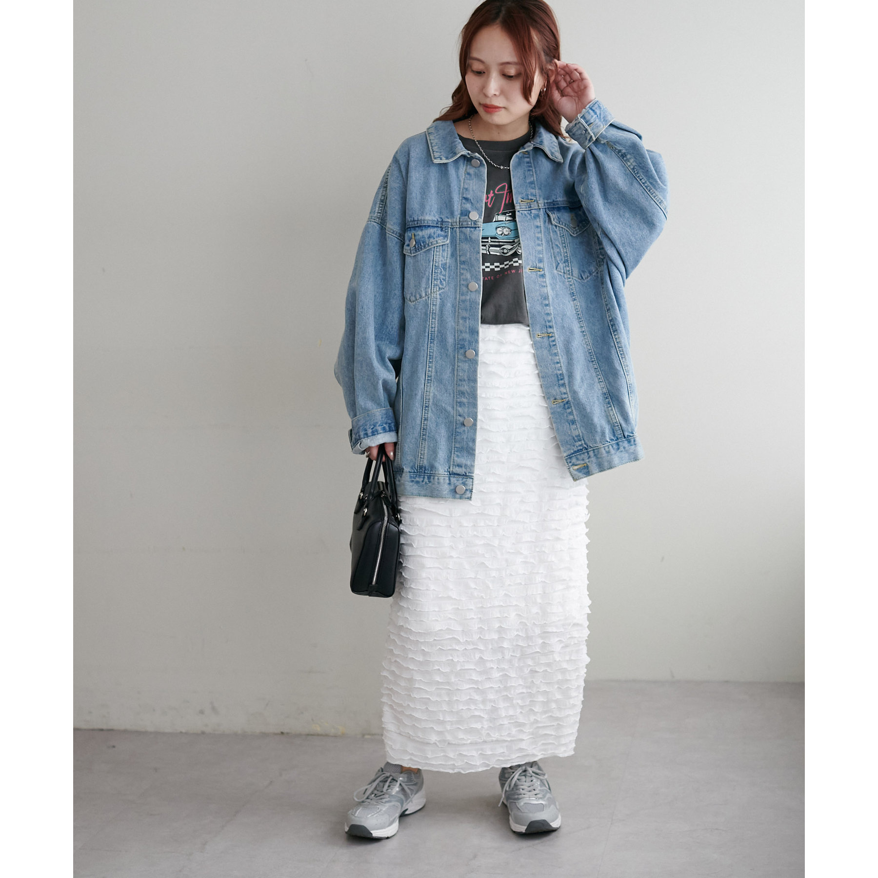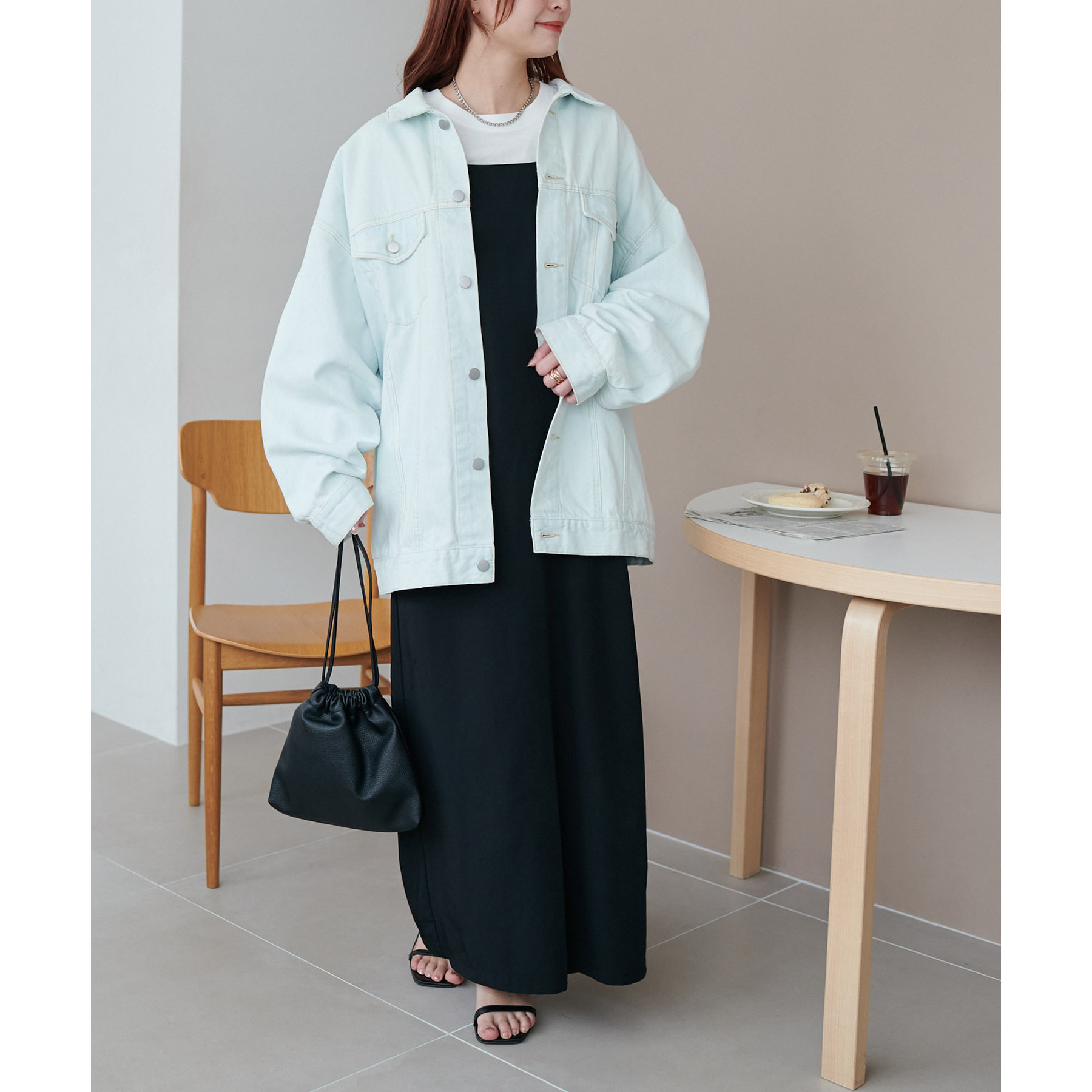 同色のデニムパンツを合わせたセットアップ風スタイルで上級者見えな着こなしも楽しめます。