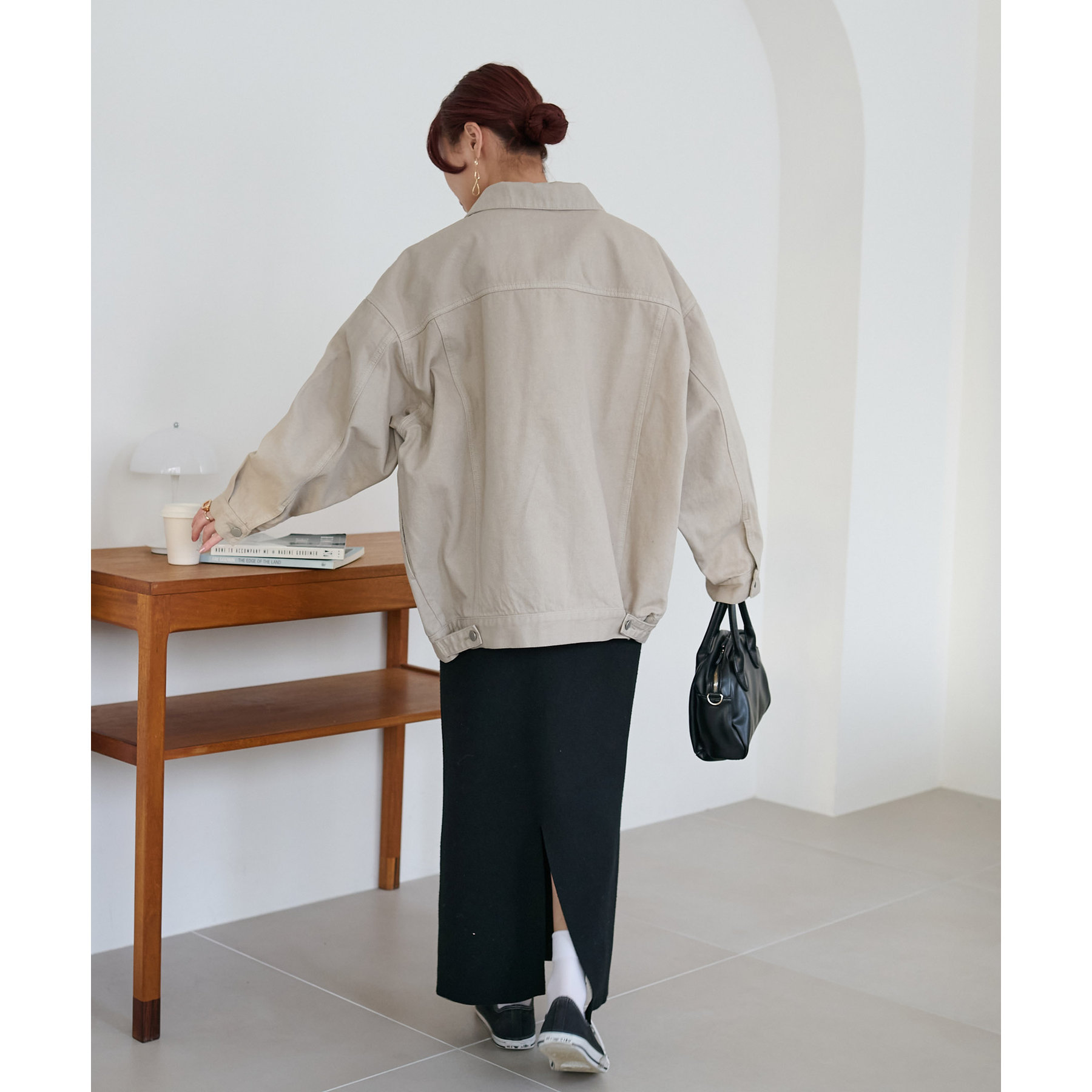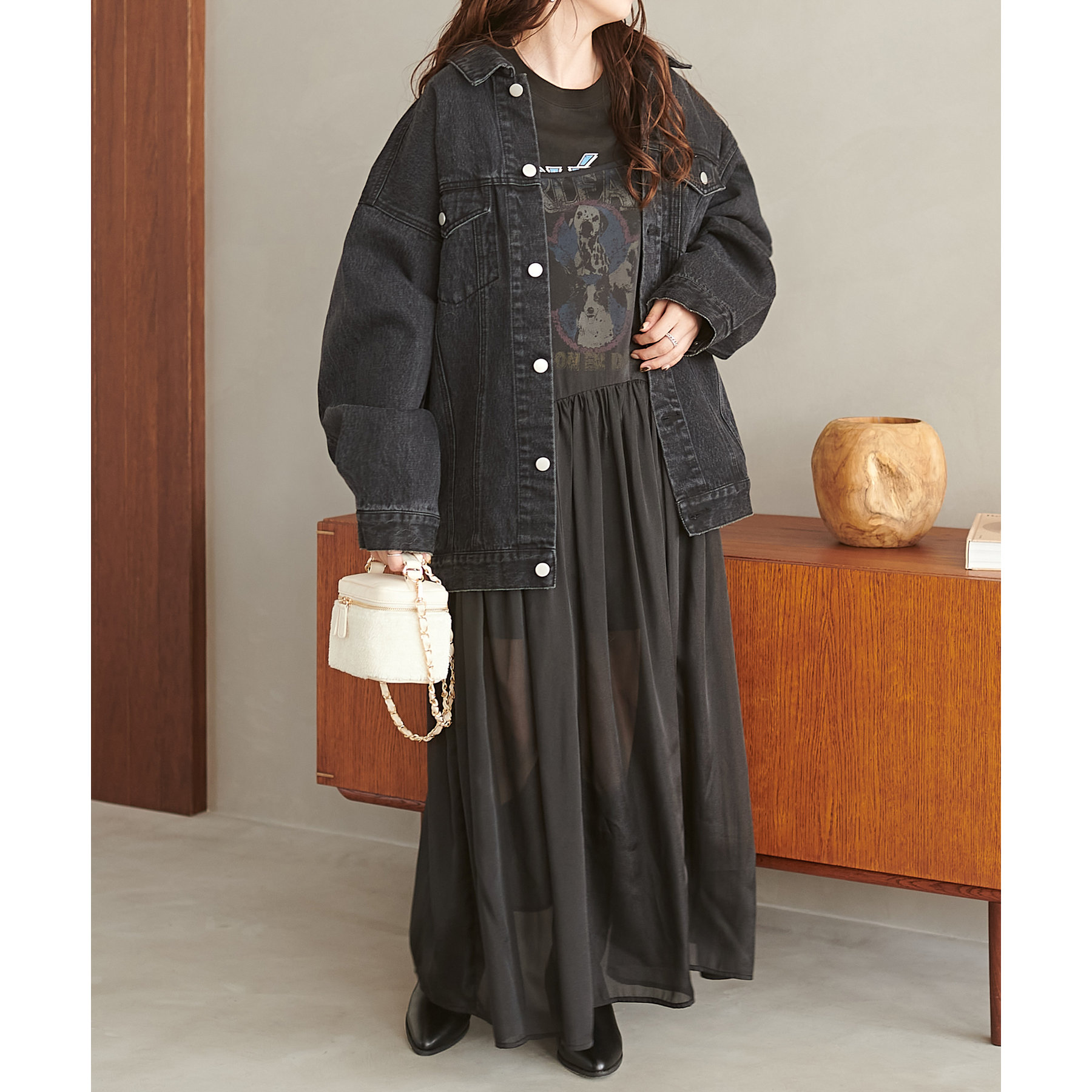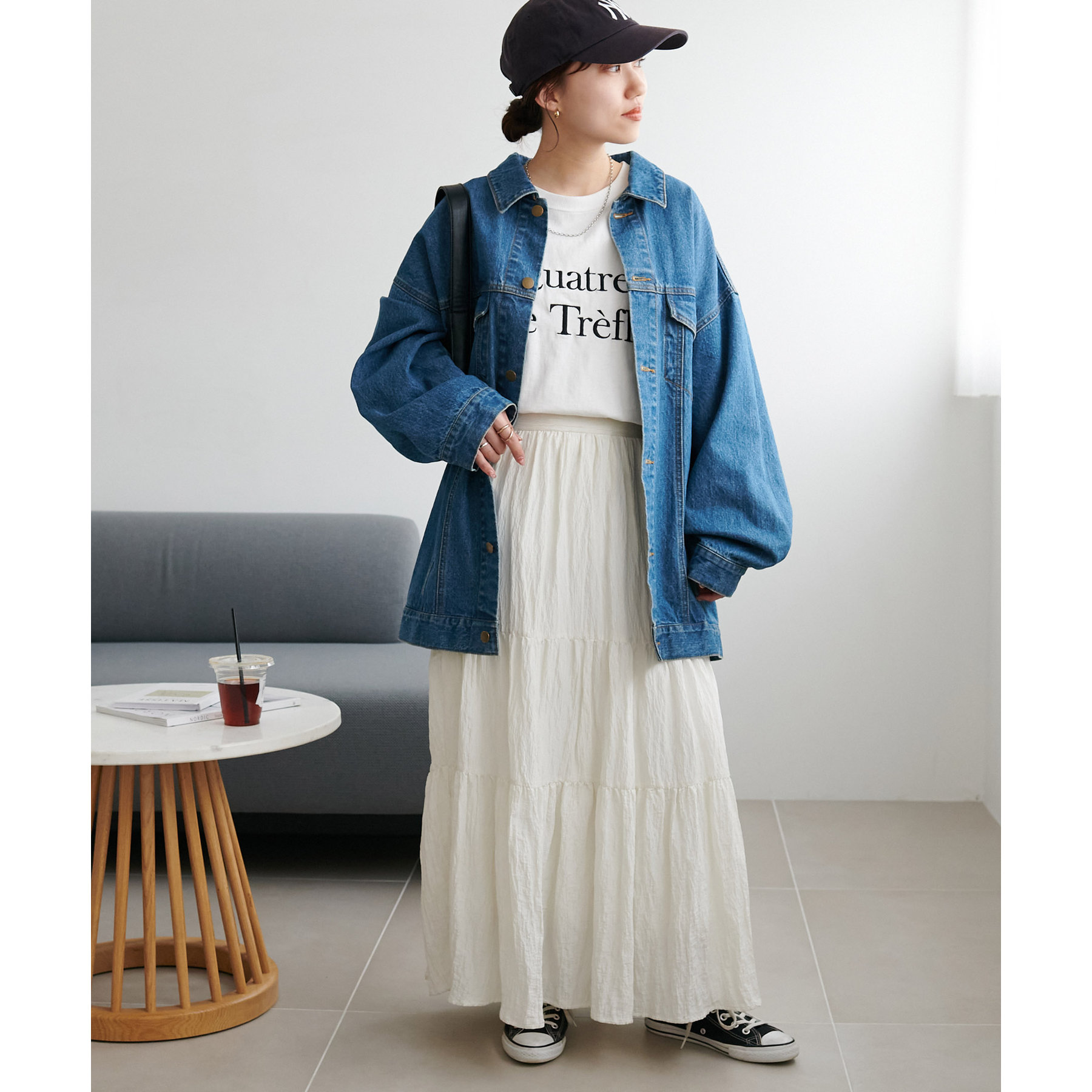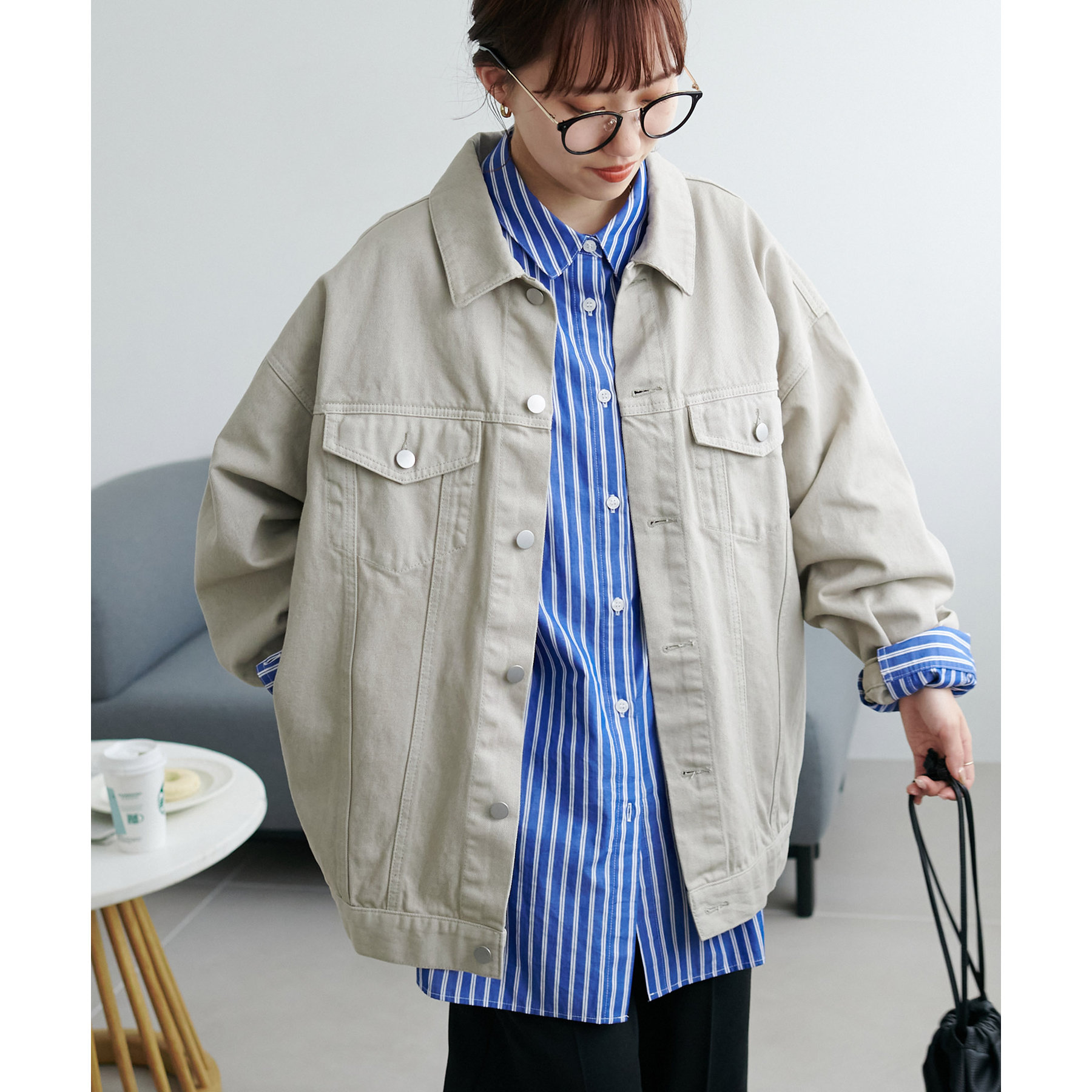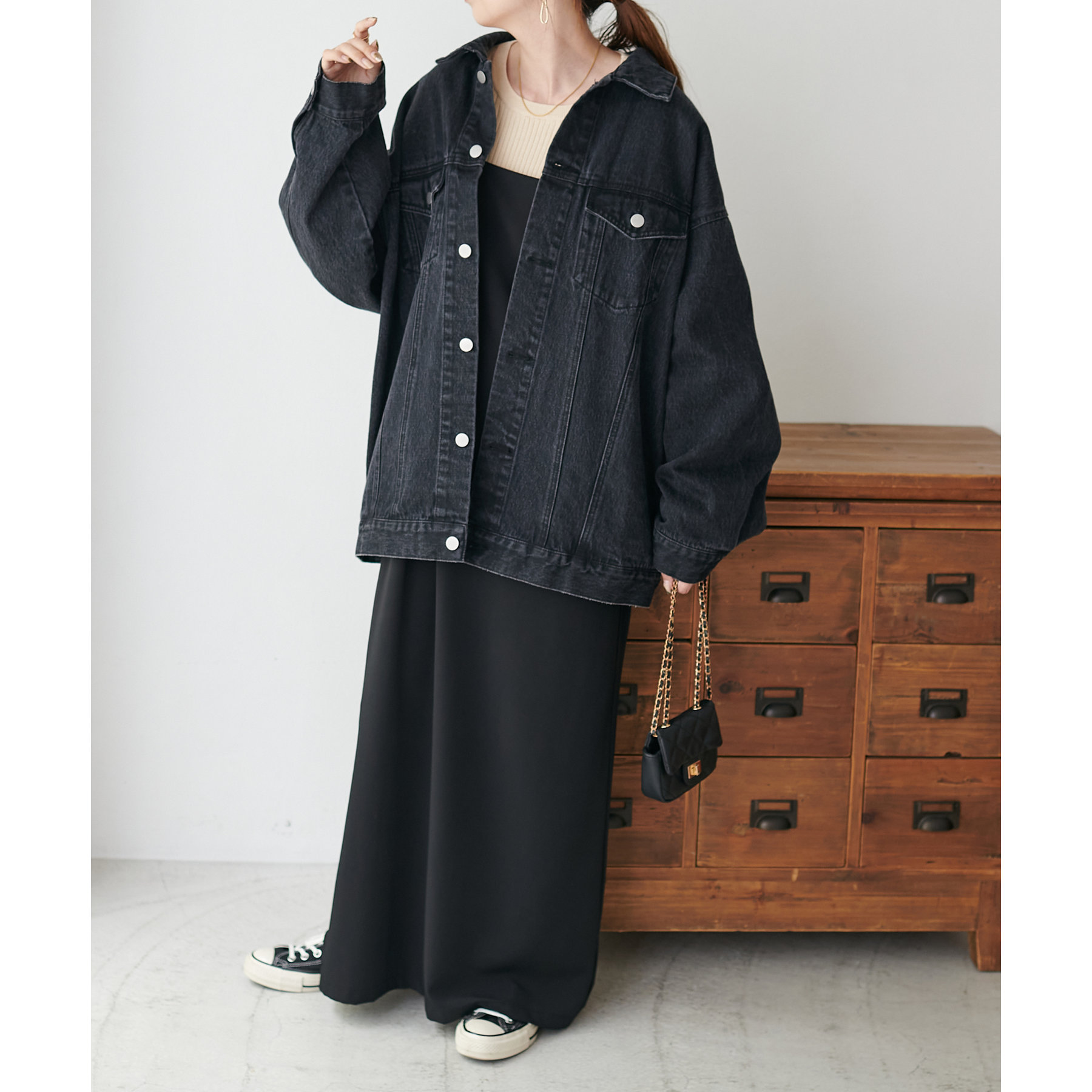 同色のデニムパンツを合わせたセットアップ風スタイルで上級者見えな着こなしも楽しめます。