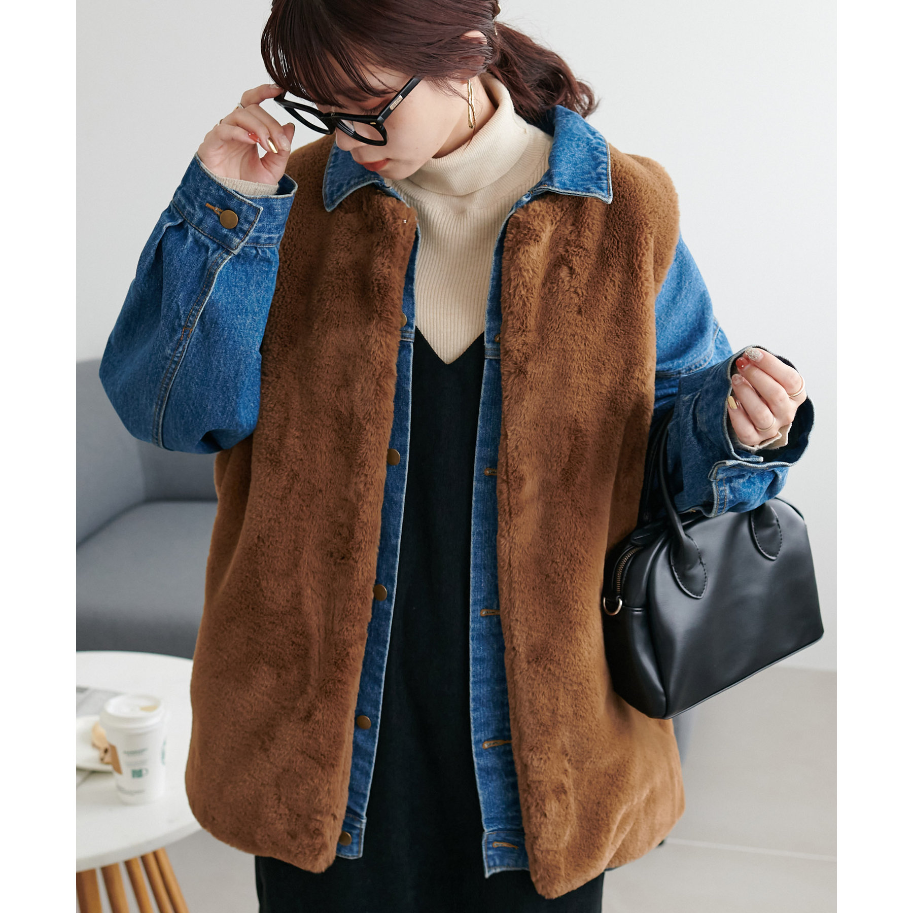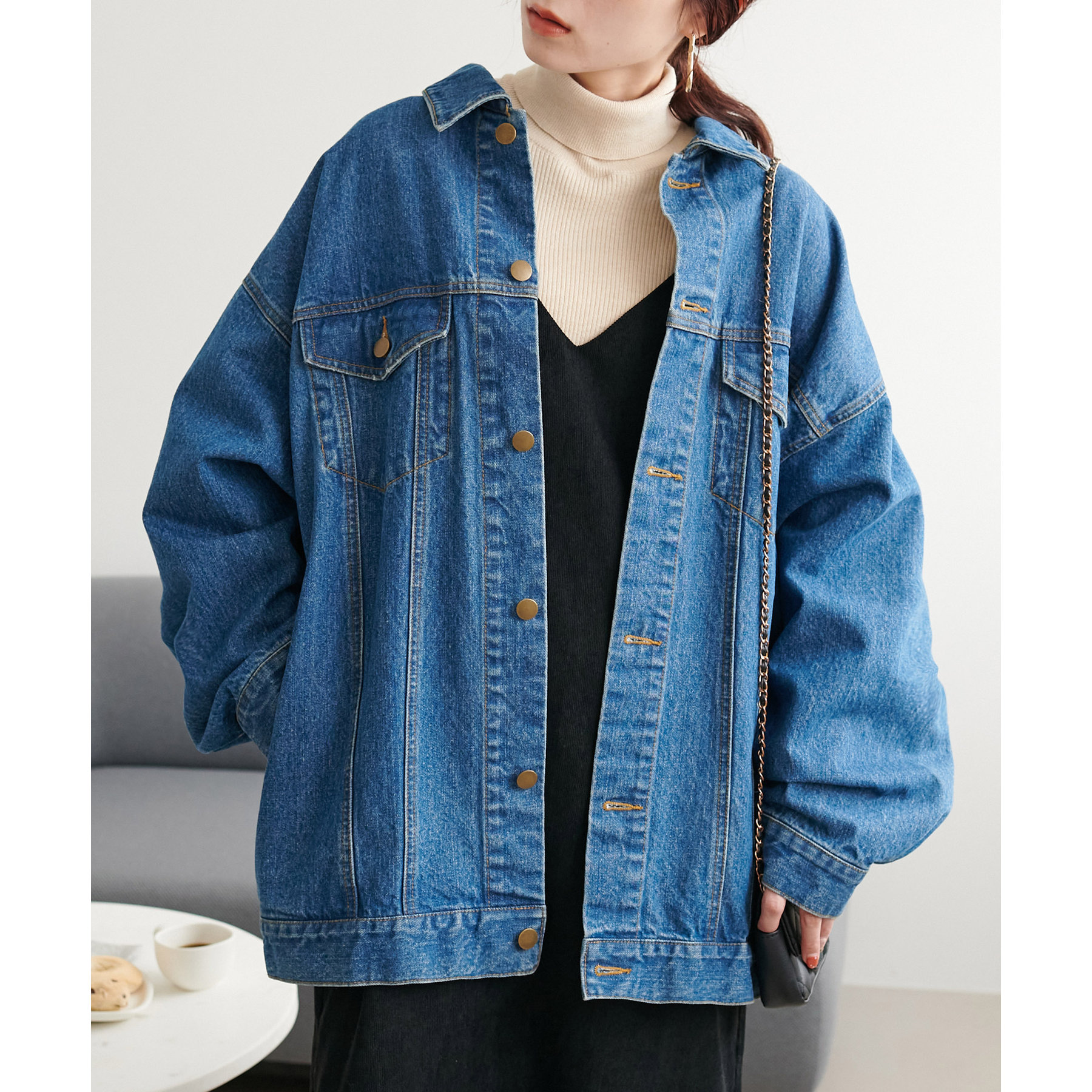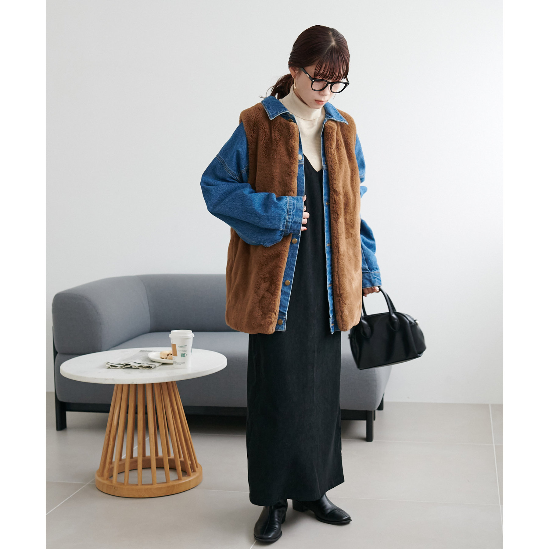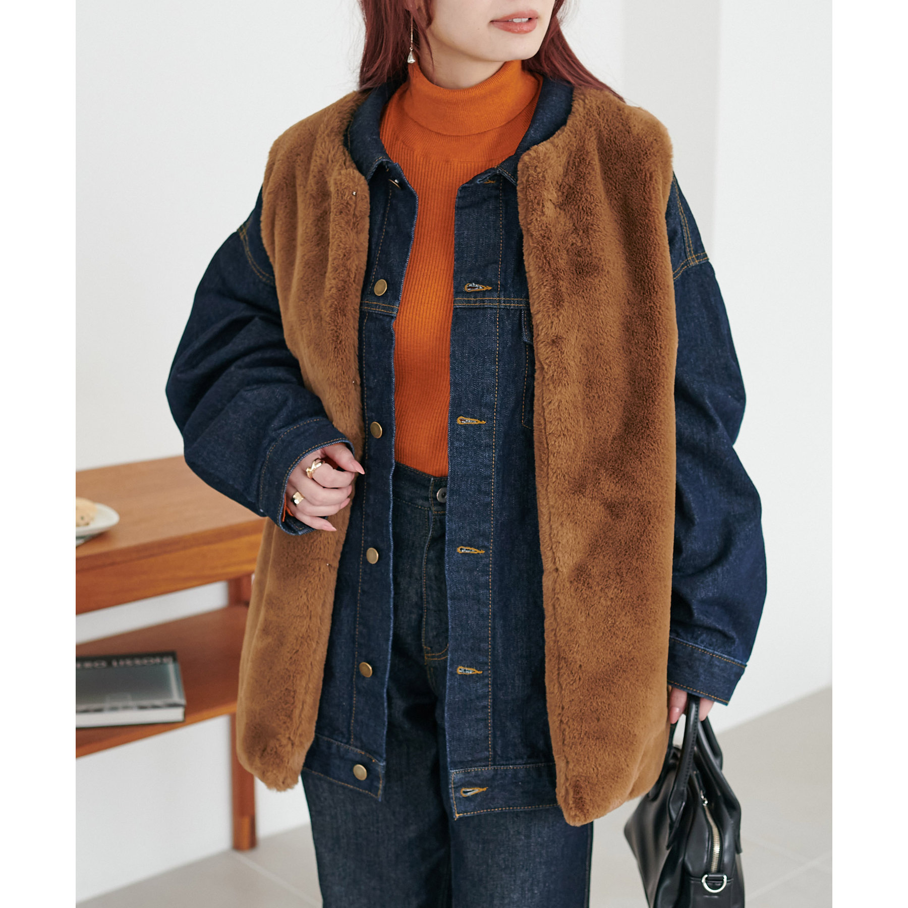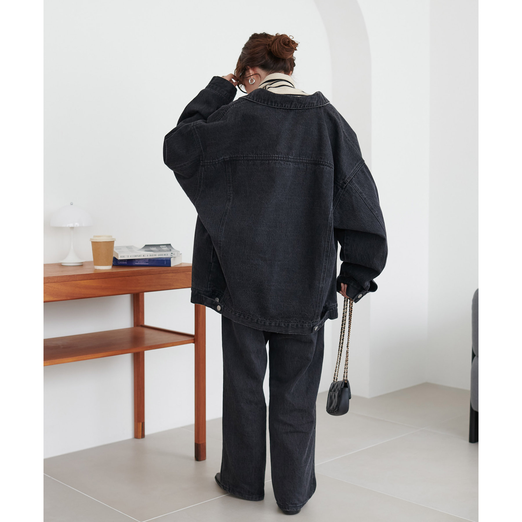 同色のデニムパンツを合わせたセットアップ風スタイルで上級者見えな着こなしも楽しめます。