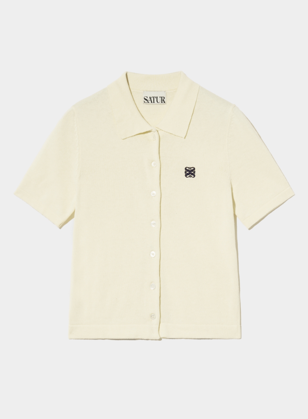 (W) Basic Cotton Collar Half Cardigan Resort - Cream