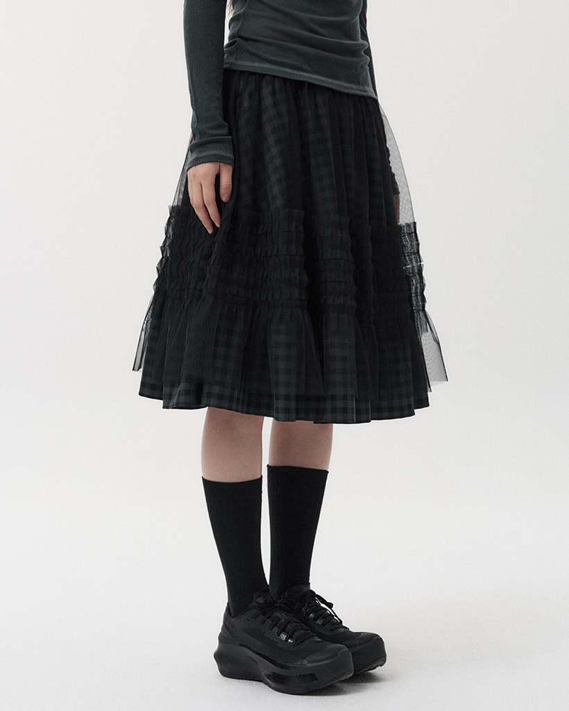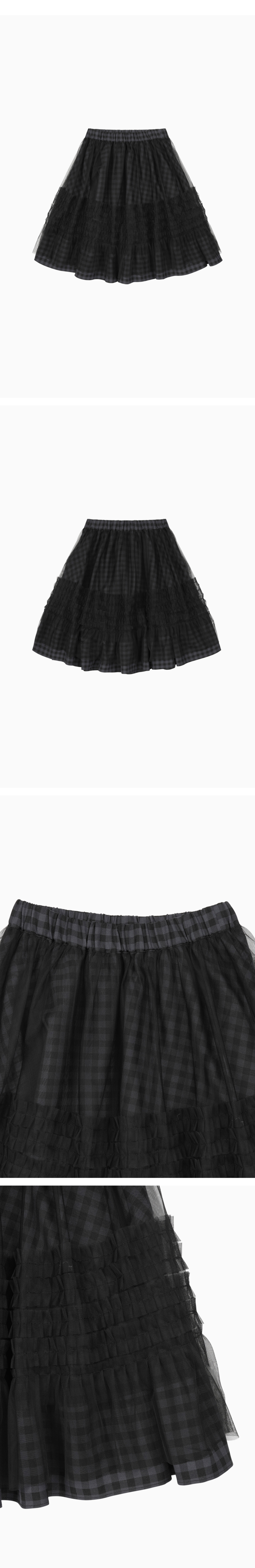 LAYERED SHEER FRILL SKIRT, KHAKI CHECK