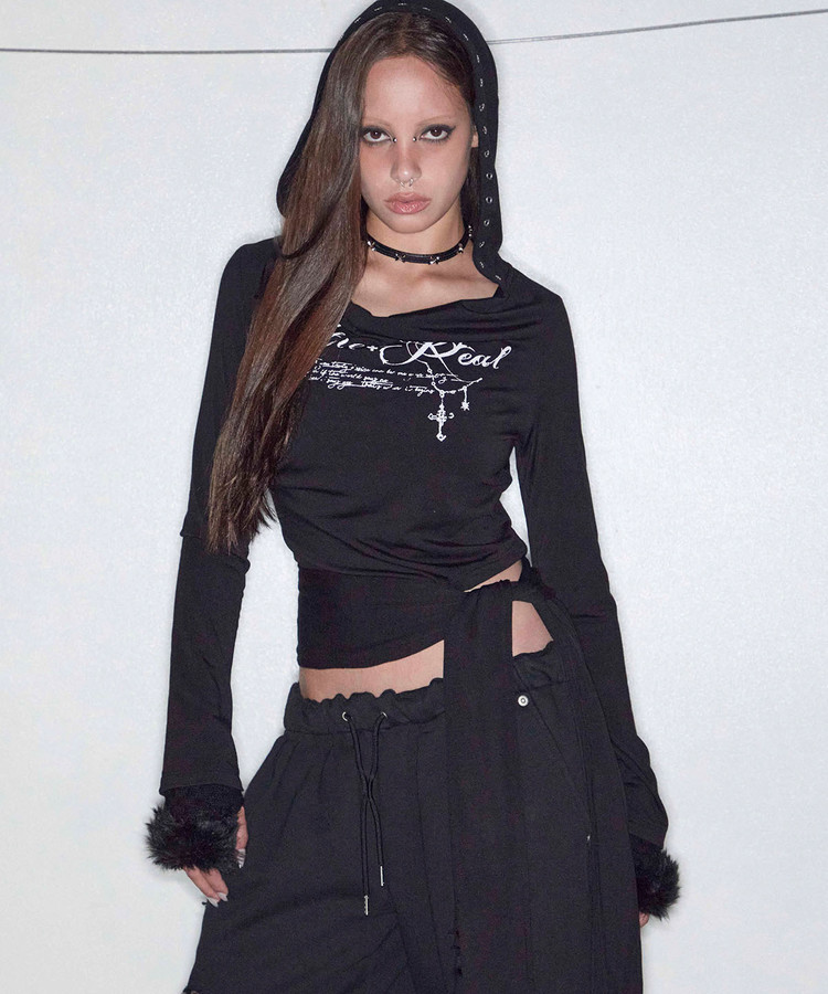 - フードの縁にはアイレットテープのディテールを施し、フロントにはグラフィックポイントを配置