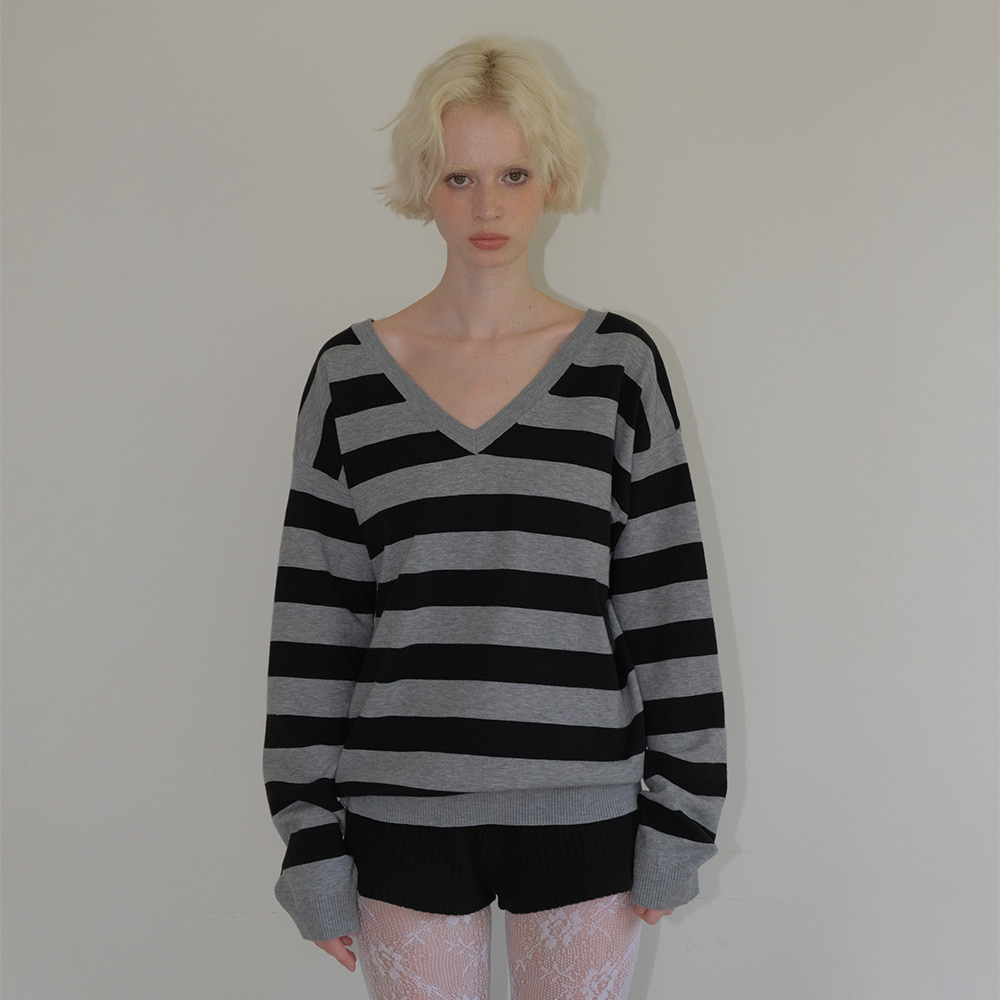 C ONE-SHOULDER STRIPED KNIT_BLACK