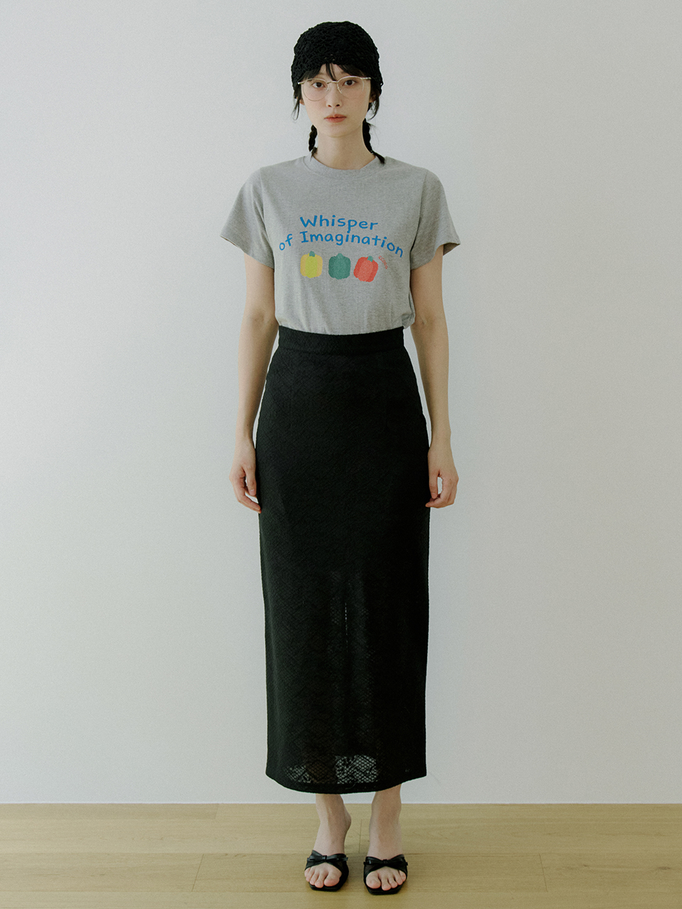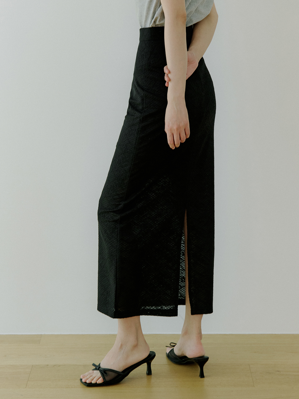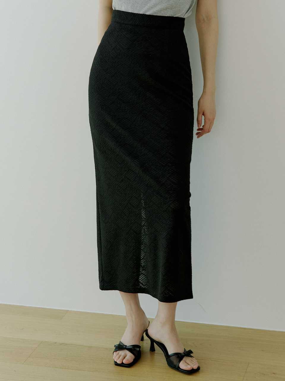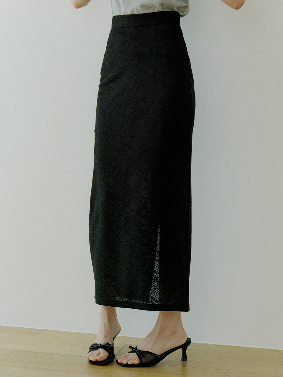 WOI FLORAL LACE SKIRT BLACK