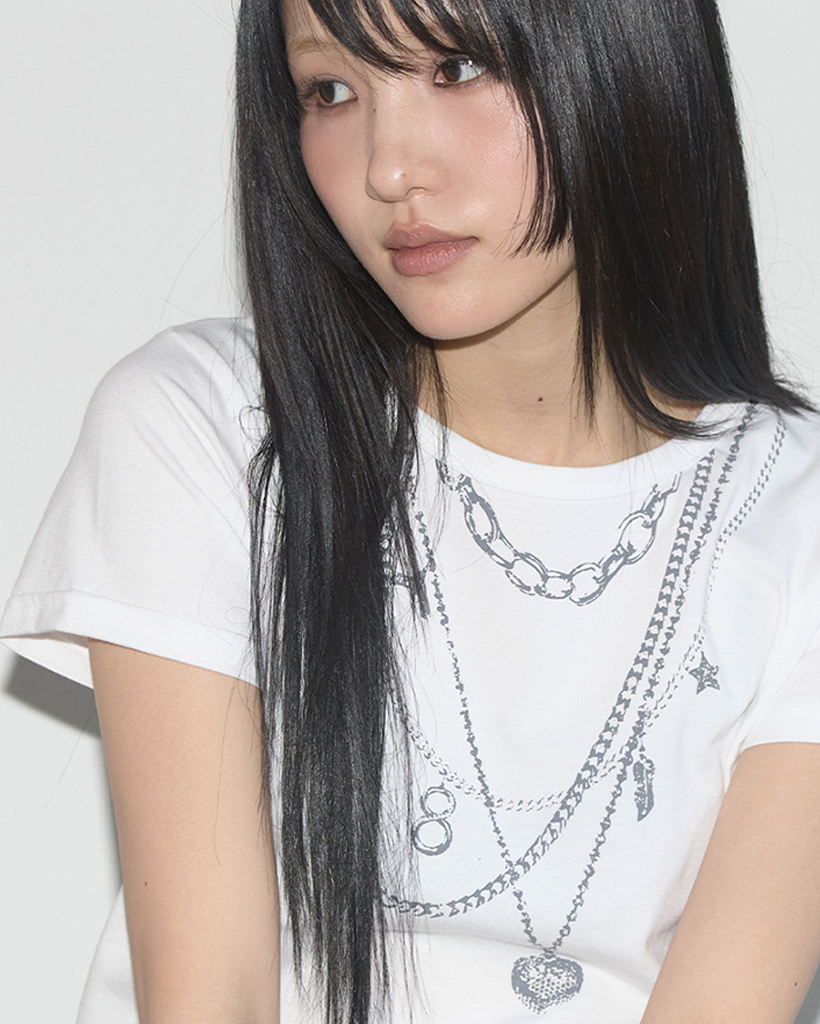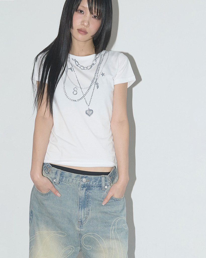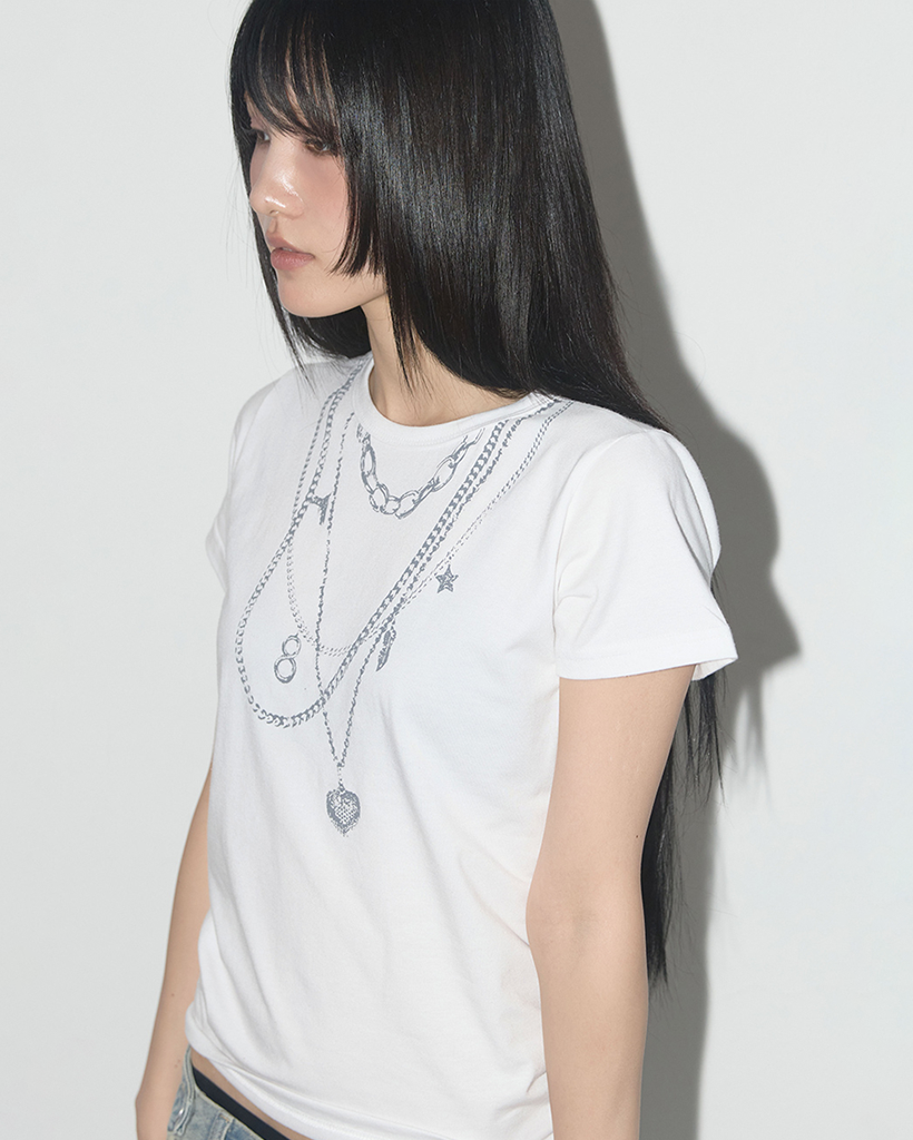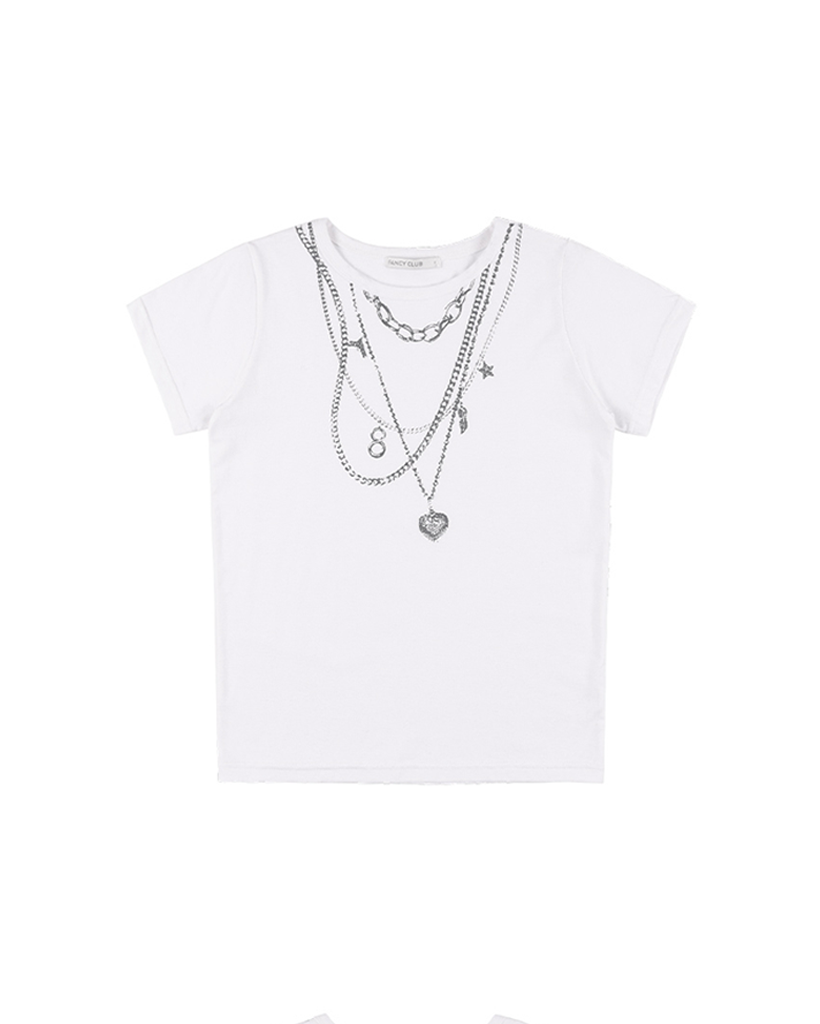 Dual Charm Necklace Tee (White) F25QB097