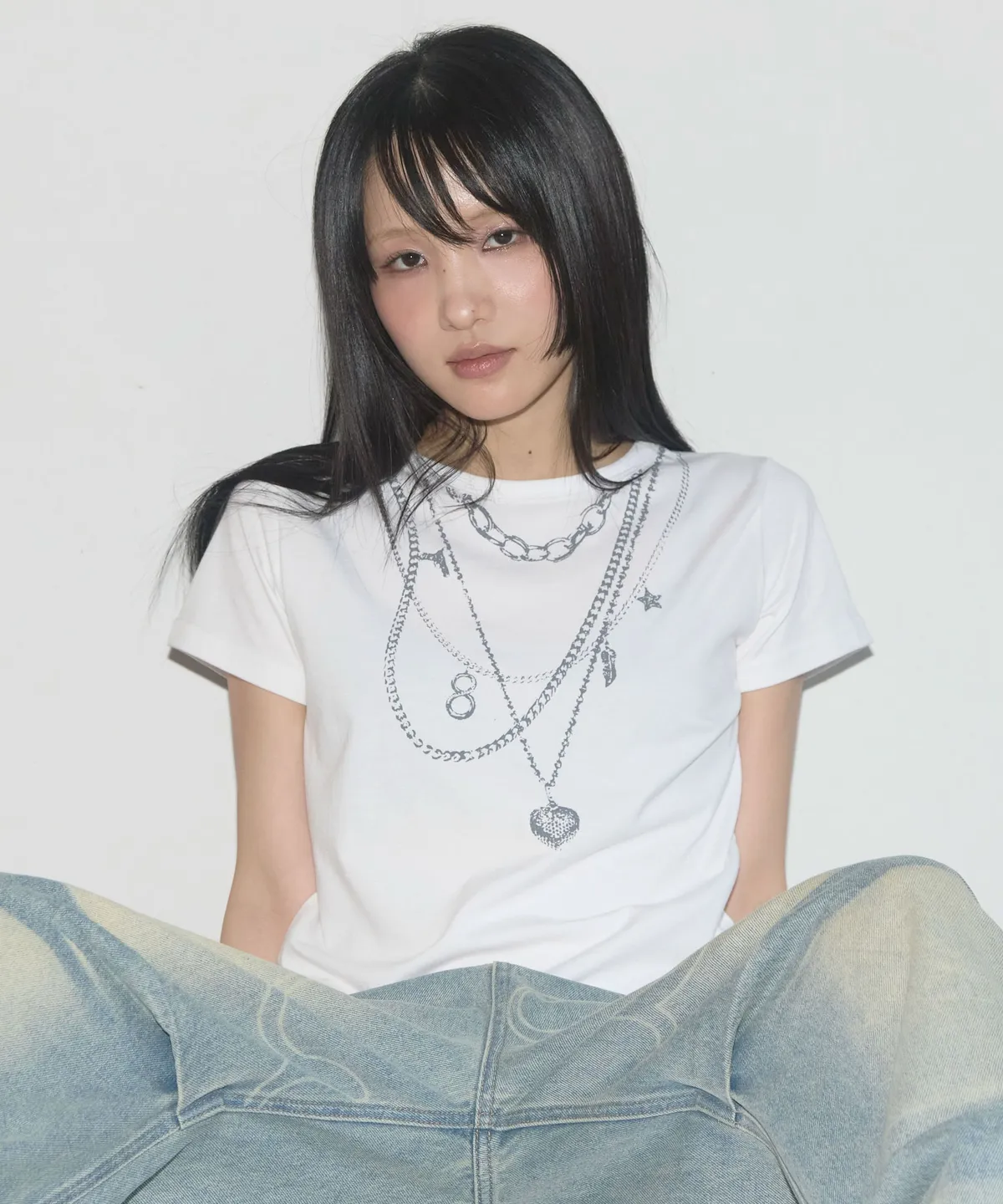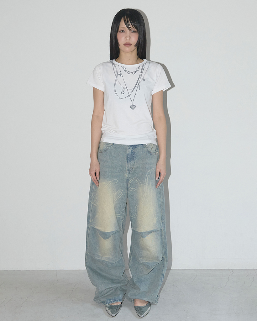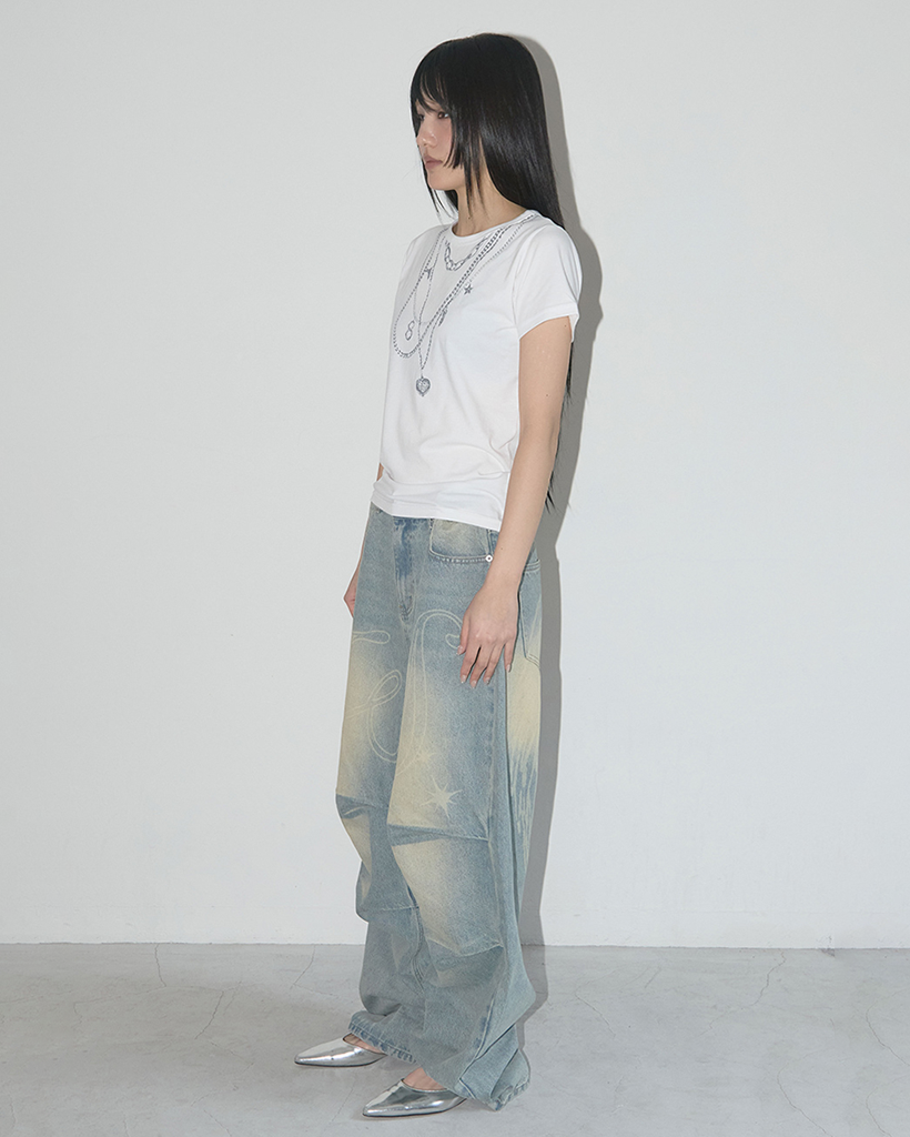 Dual Charm Necklace Tee (White) F25QB097