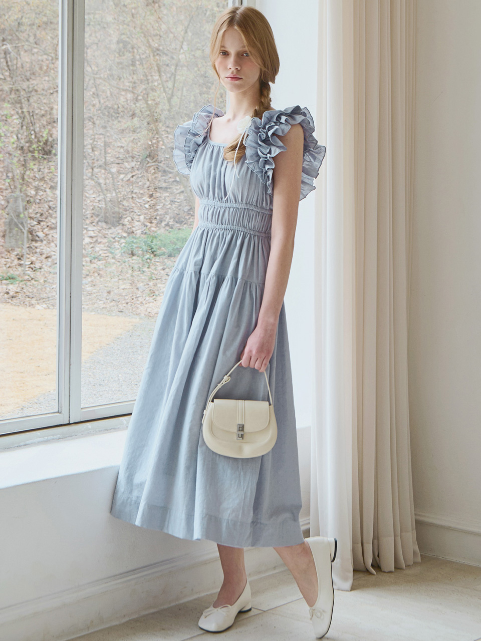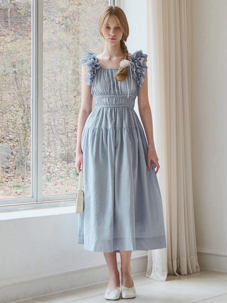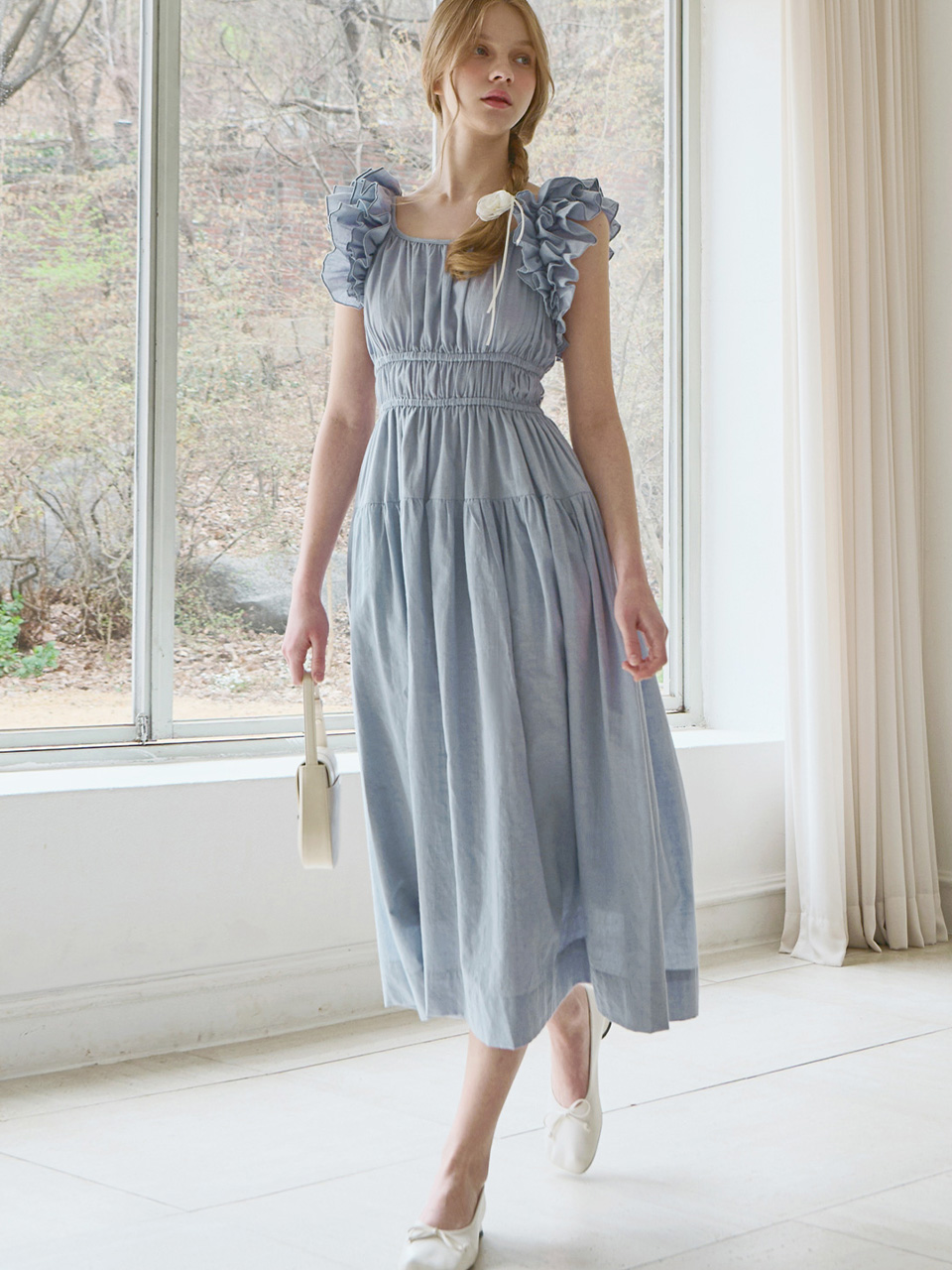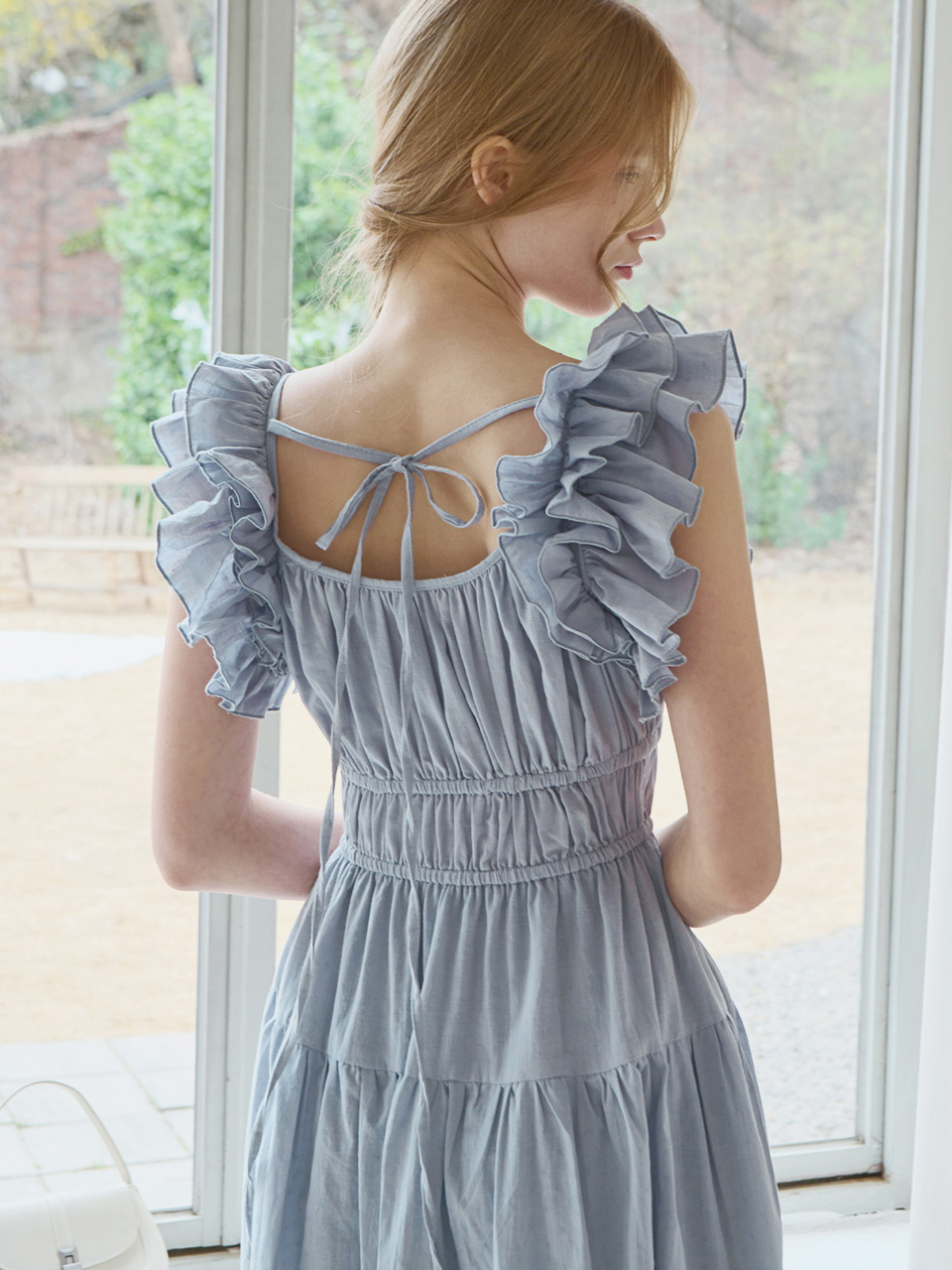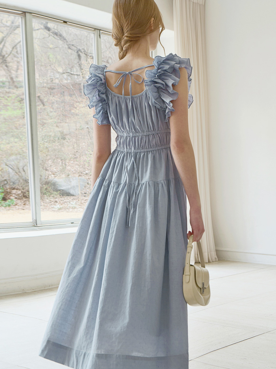 Ruffle line sleeveless dress - Dusty blue