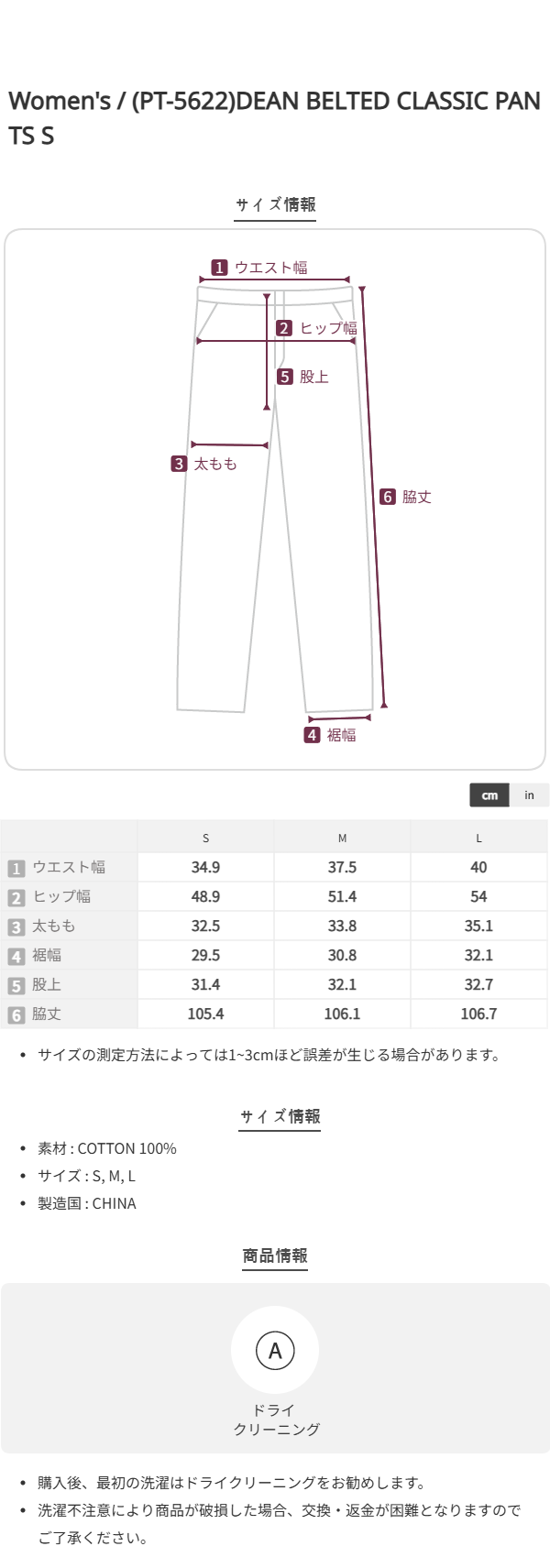 (PT-5622)DEAN BELTED CLASSIC PANTS S