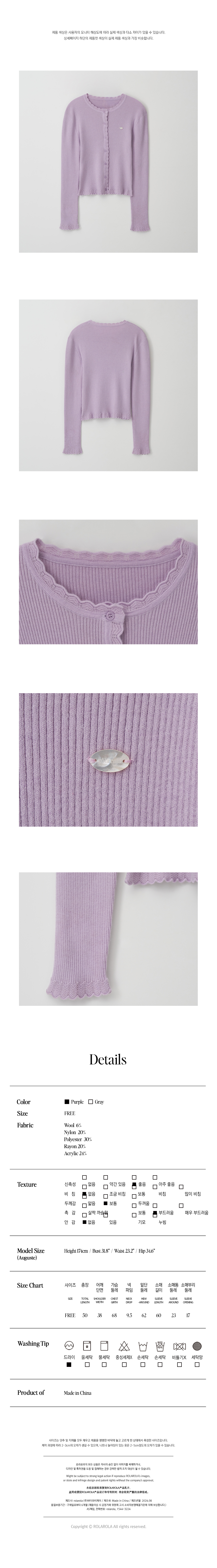 SCALLOP LACE POINT CARDIGAN PURPLE
