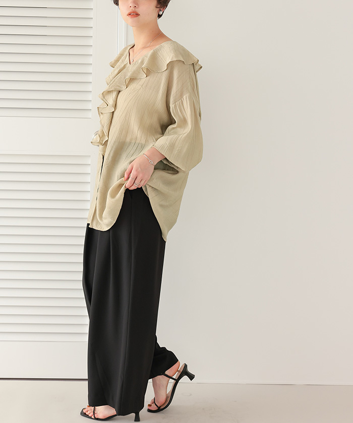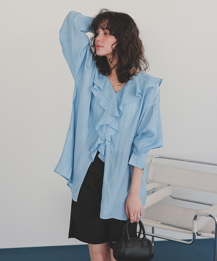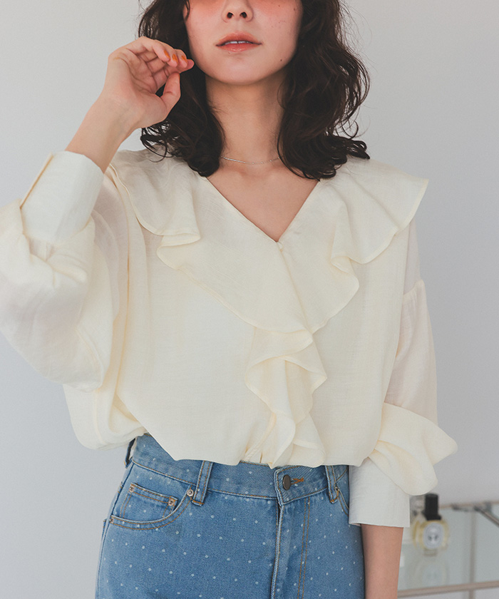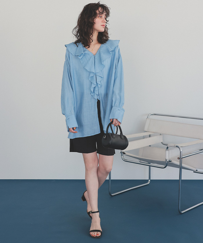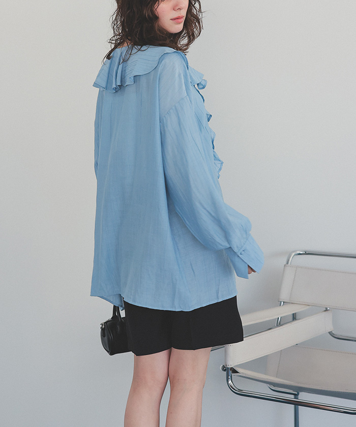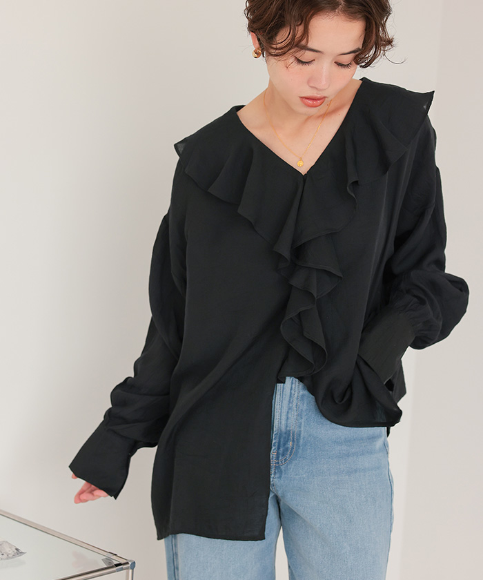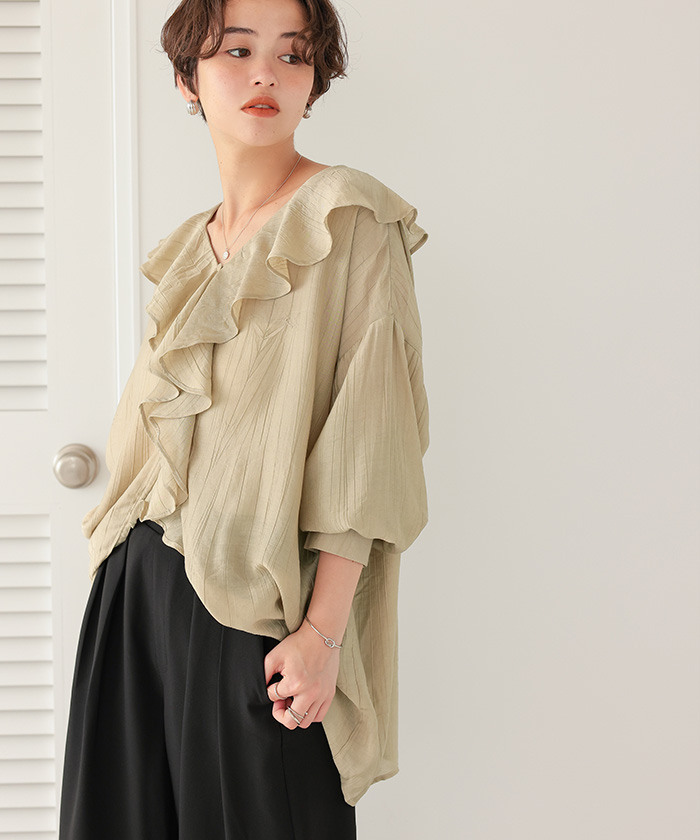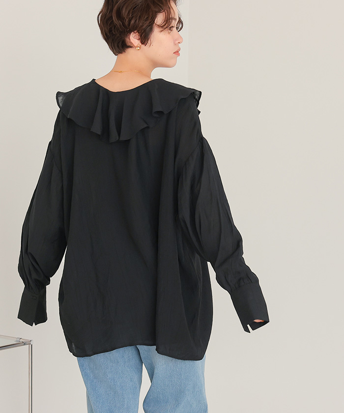 フリルカラーオーバーブラウス