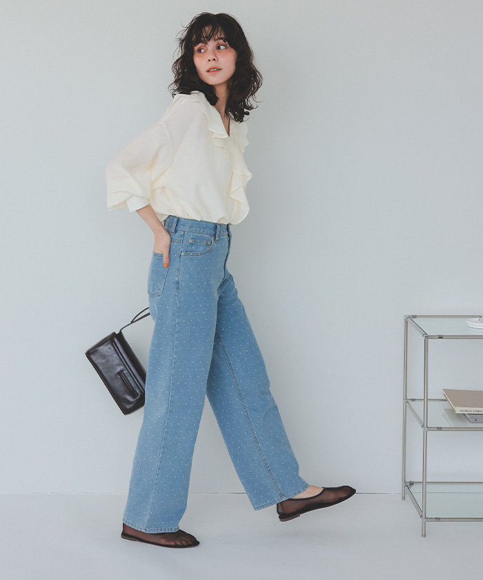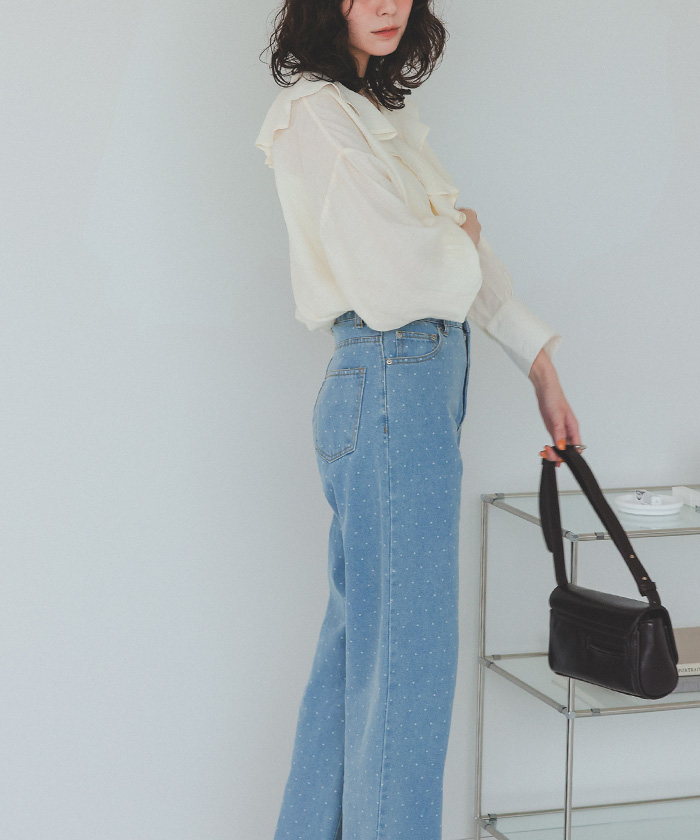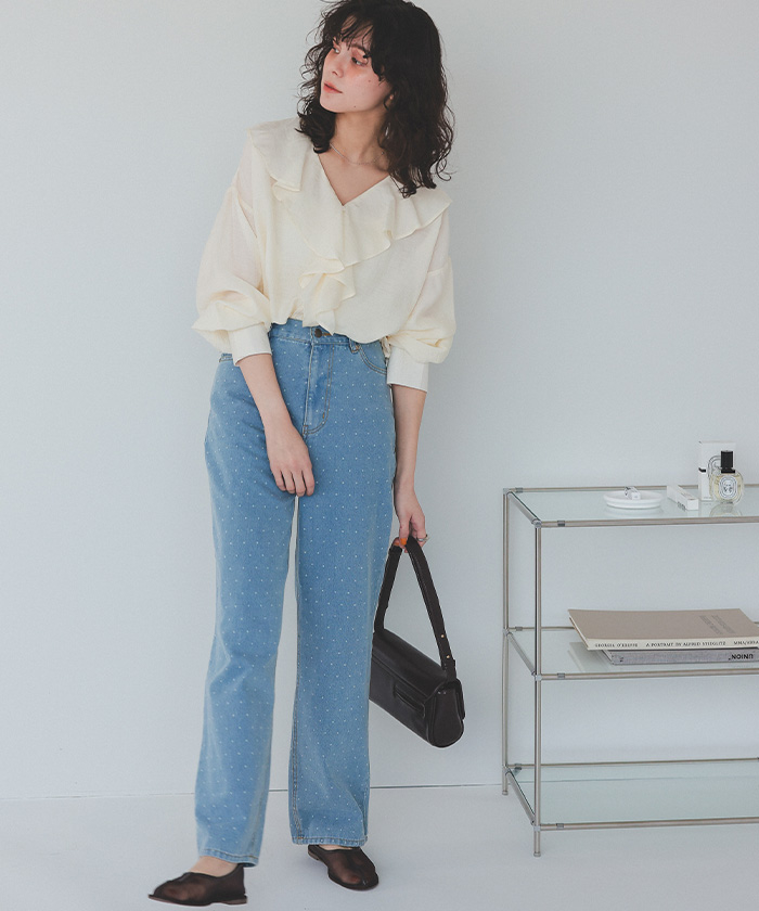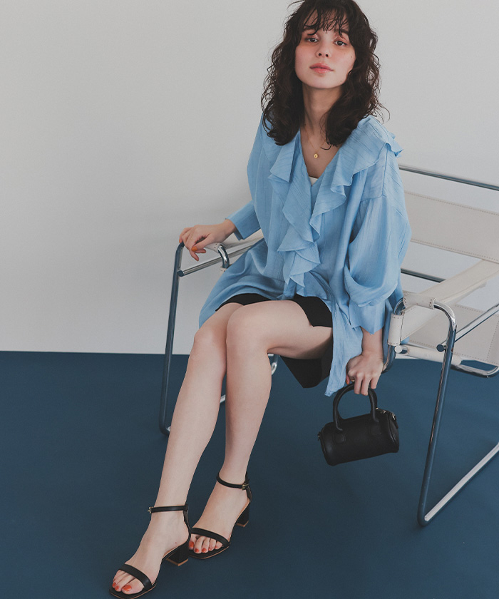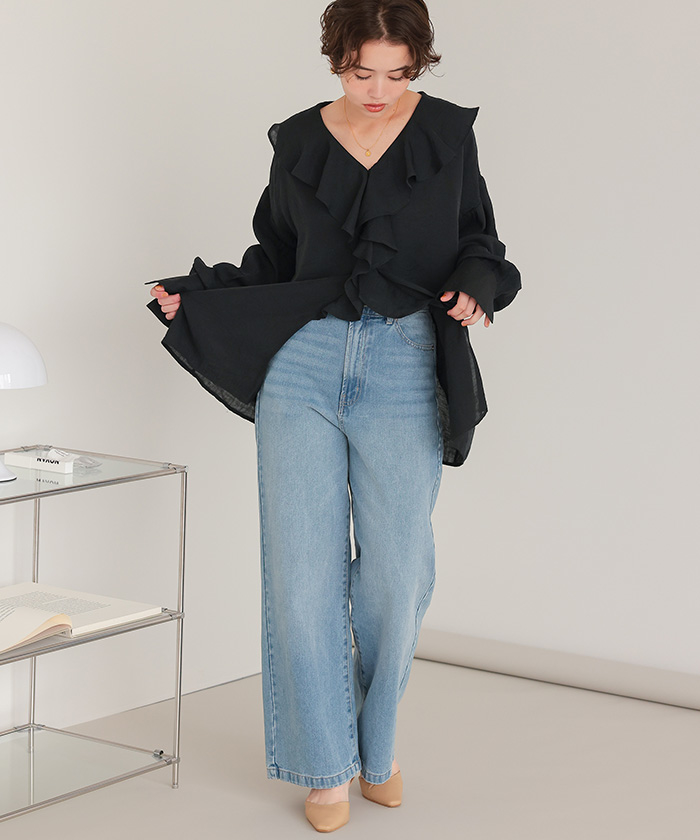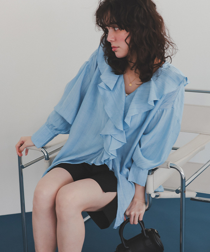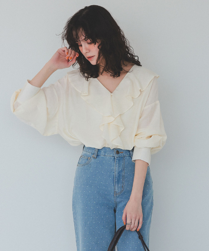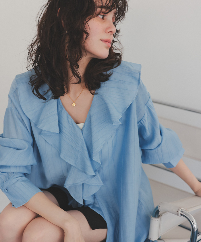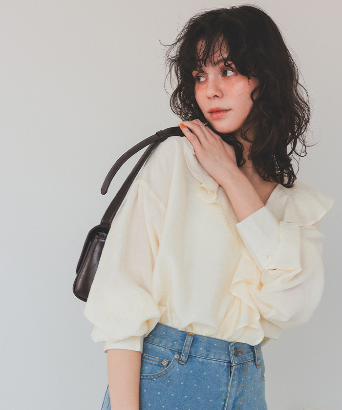 フリルカラーオーバーブラウス