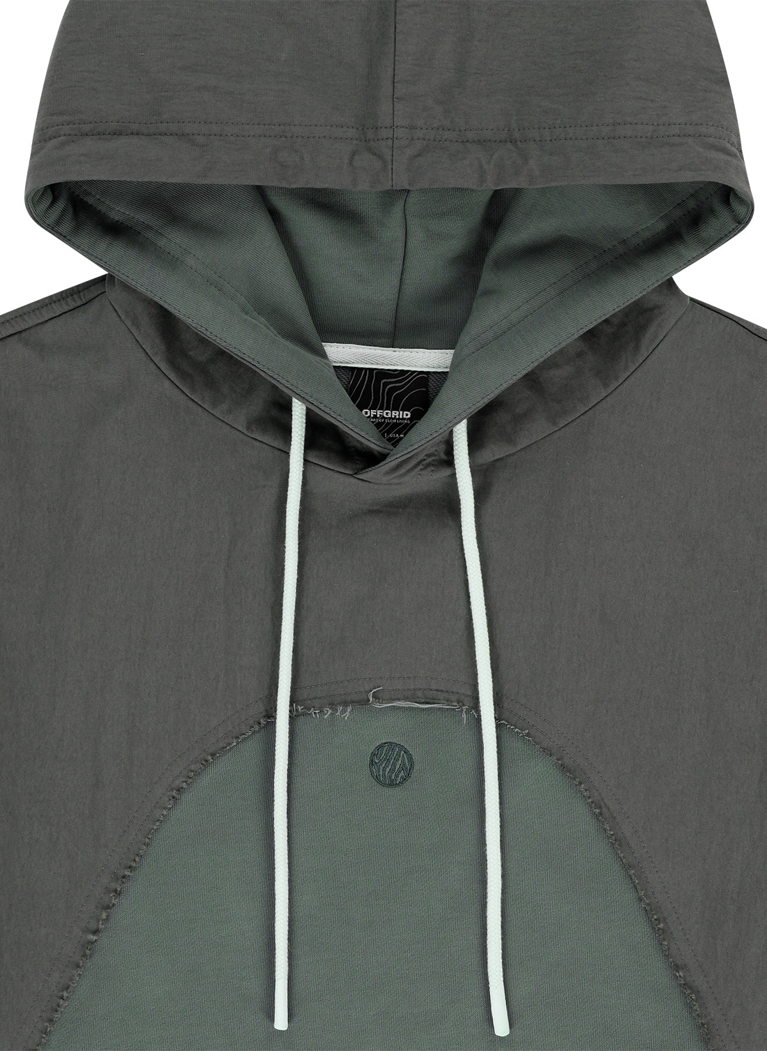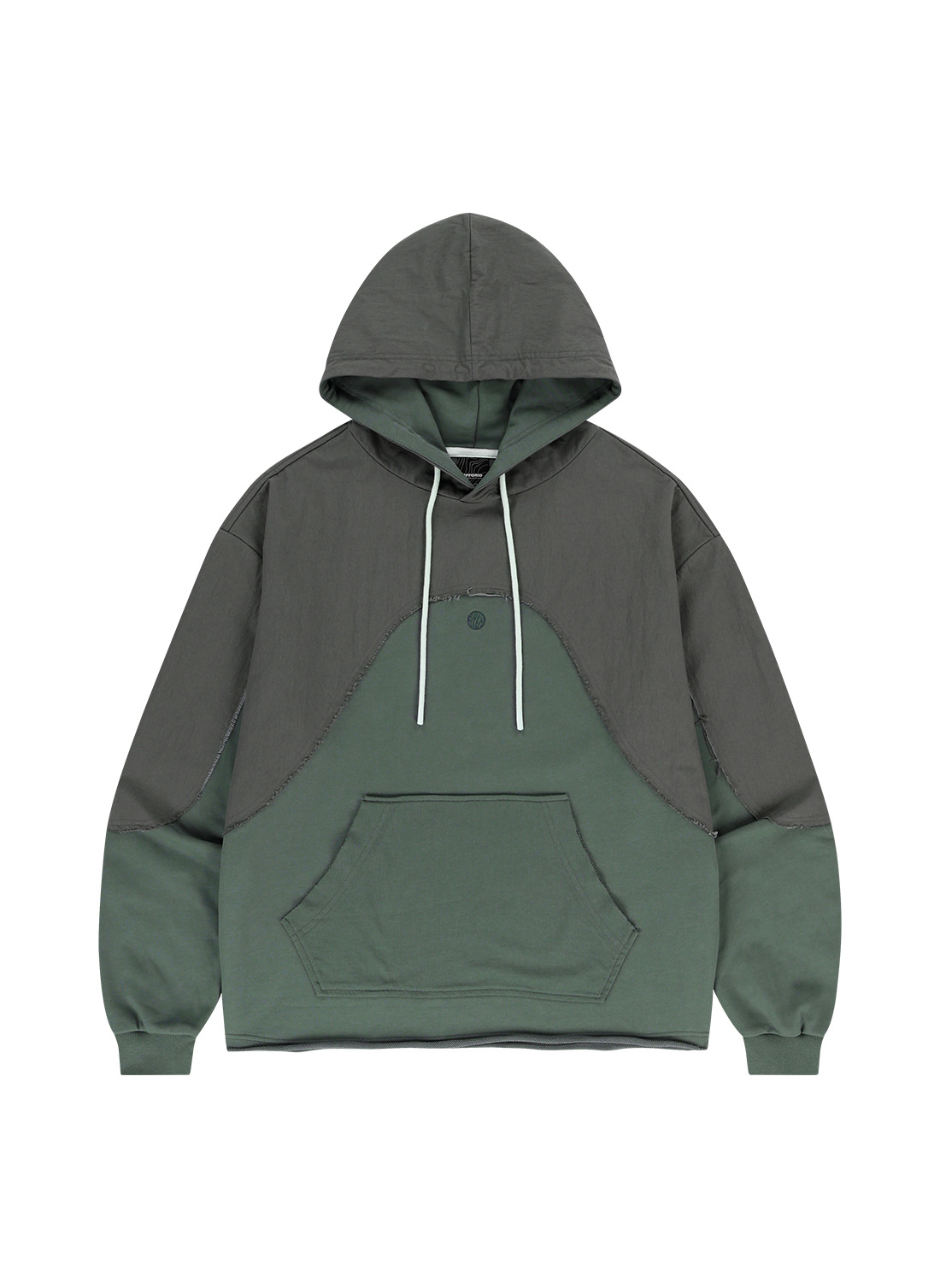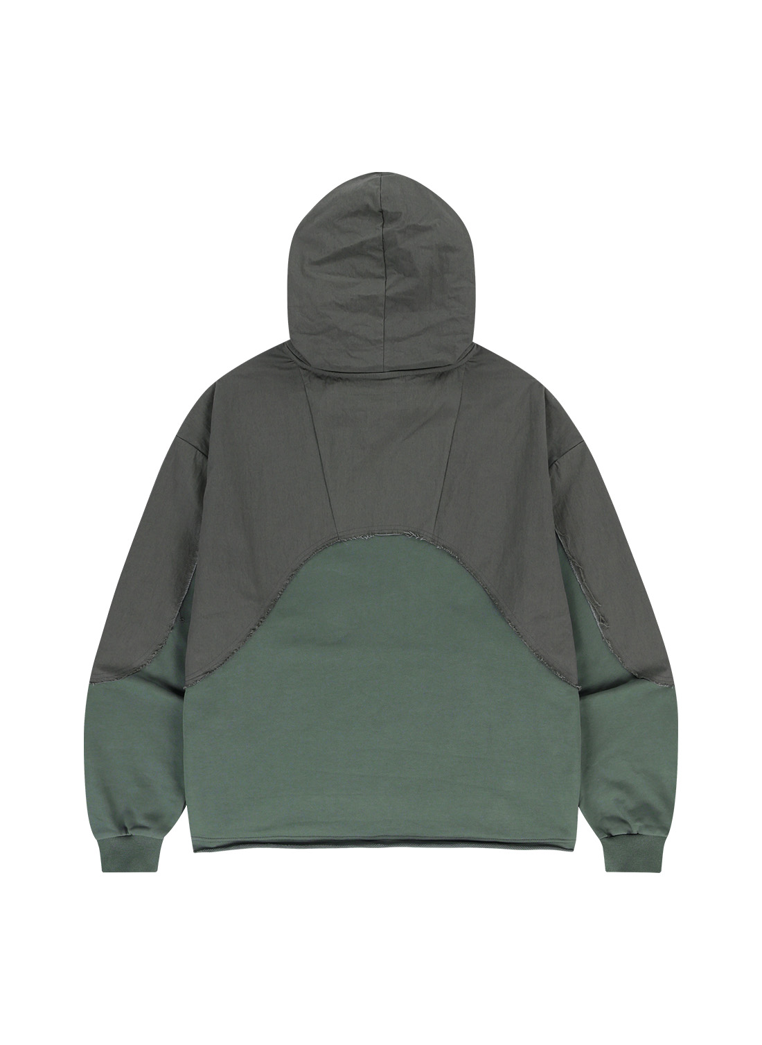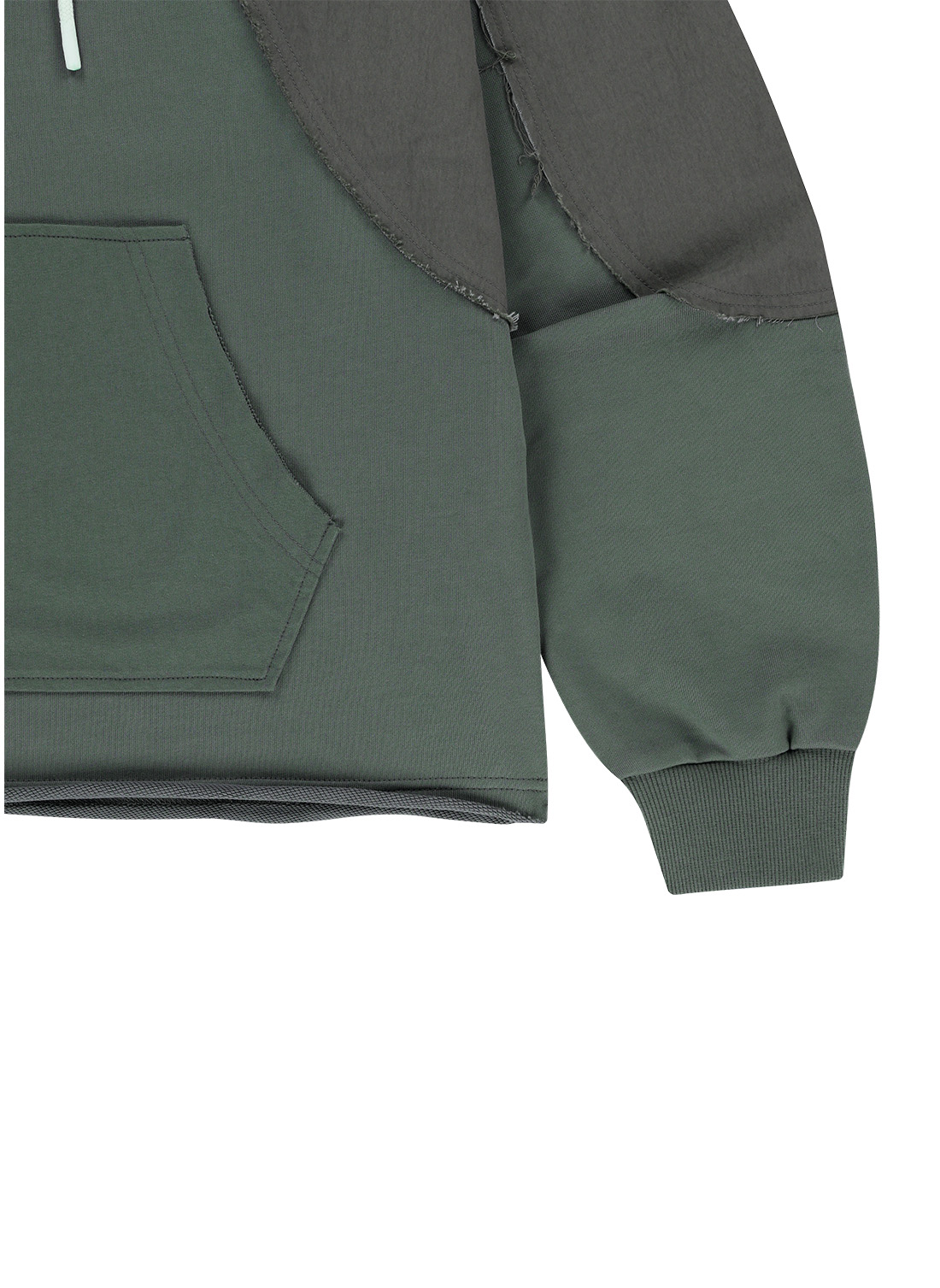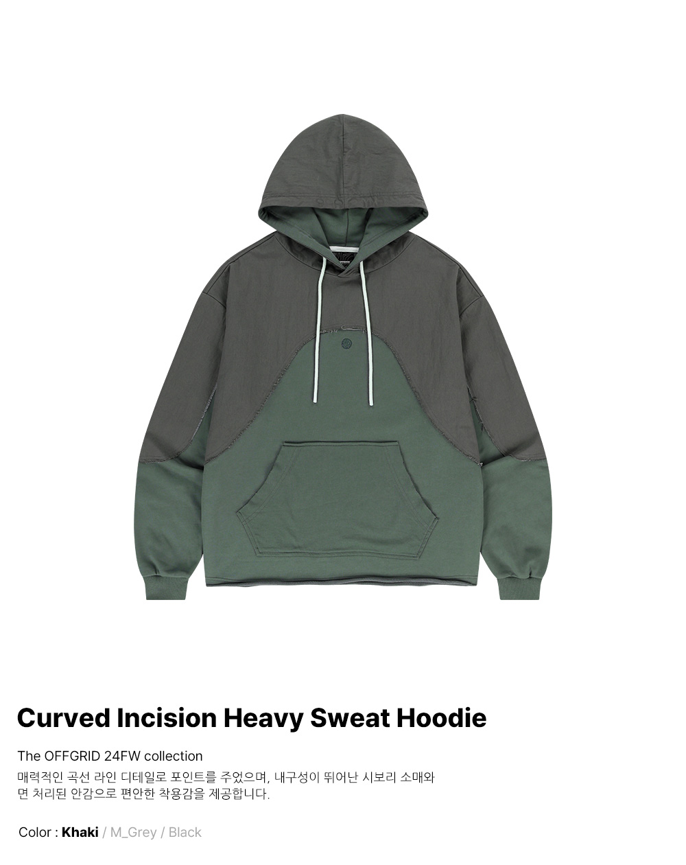 カーブドインシジョンヘビースウェットフードティーカーキ
