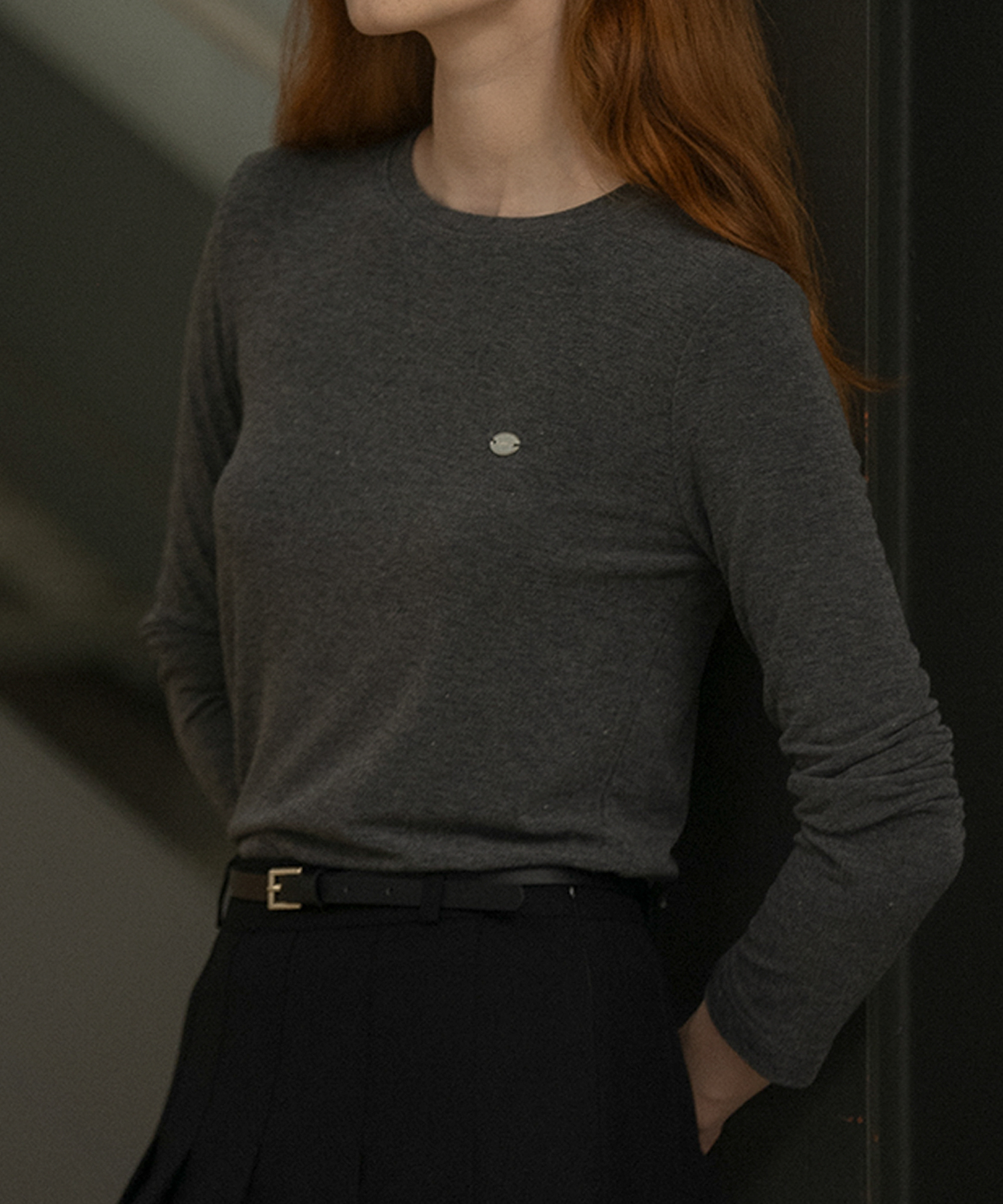 Basic soft lyocell T-shirt [KNFW03TS22]_Charcoal