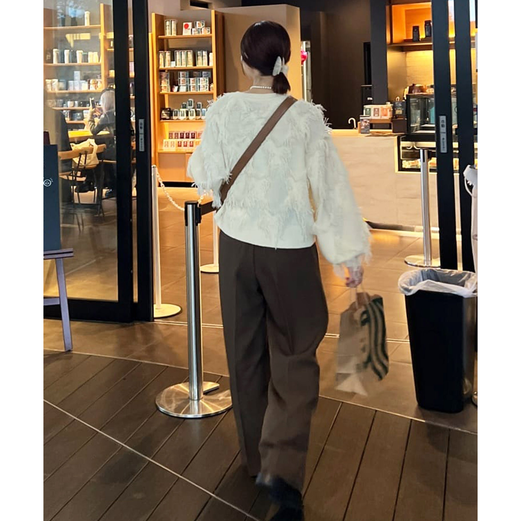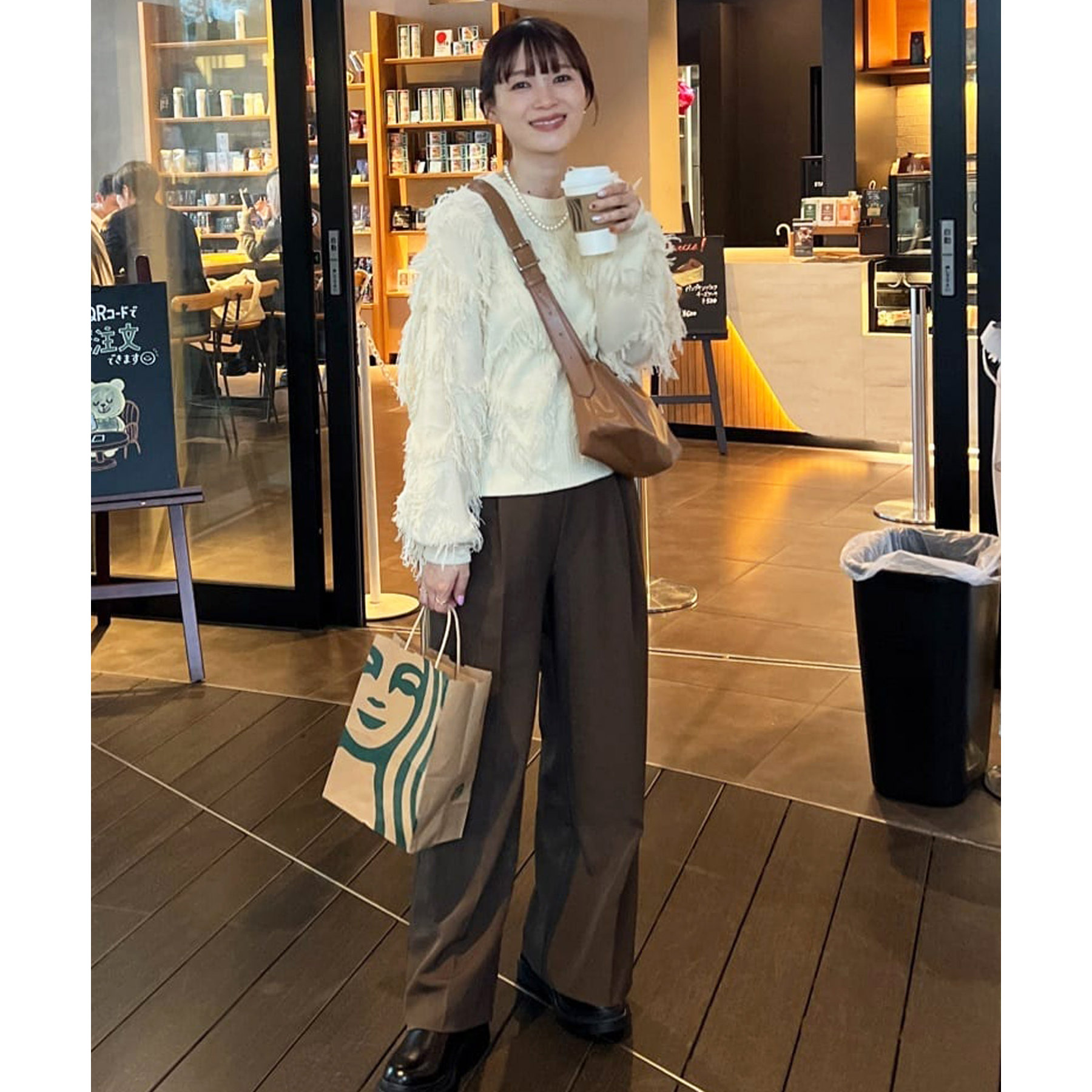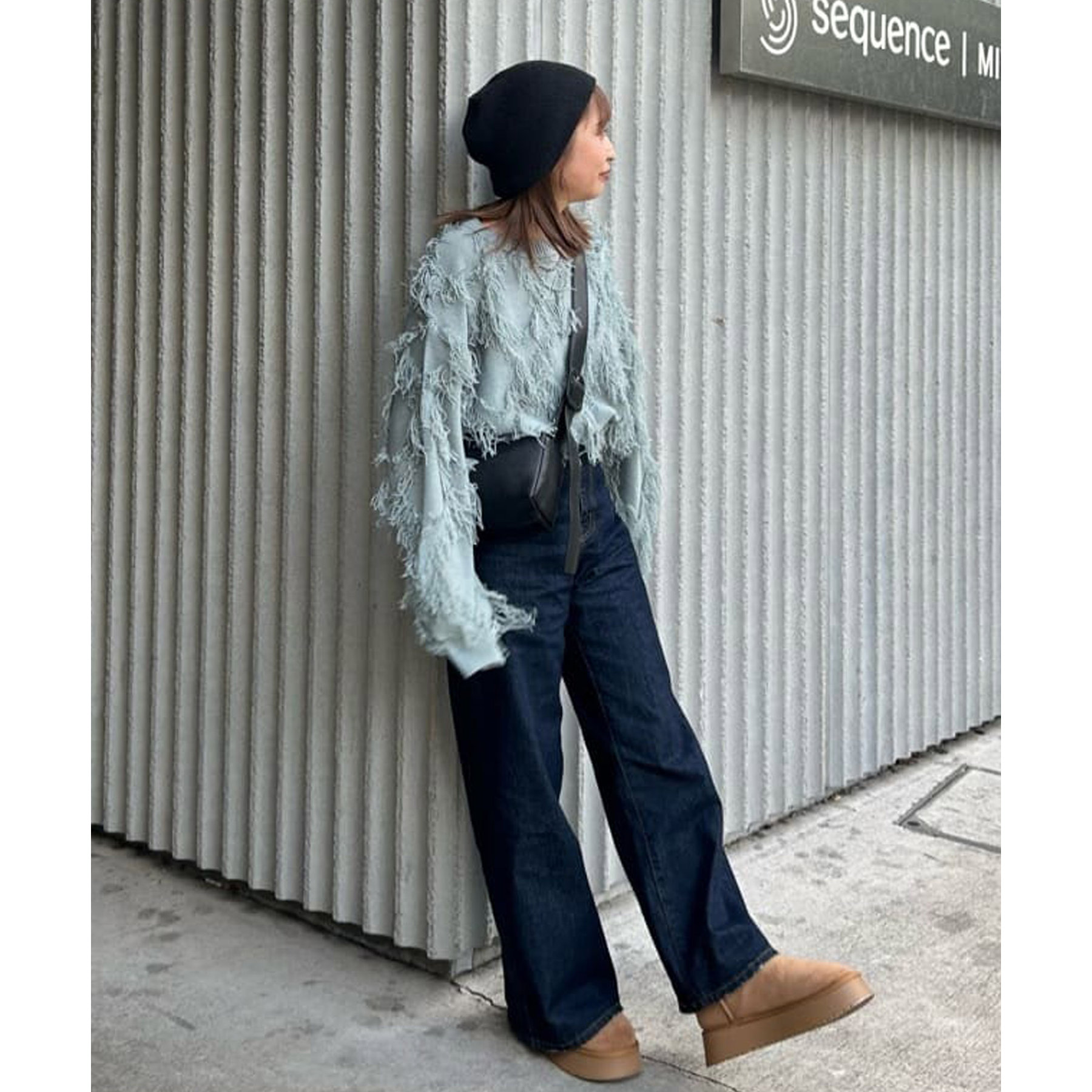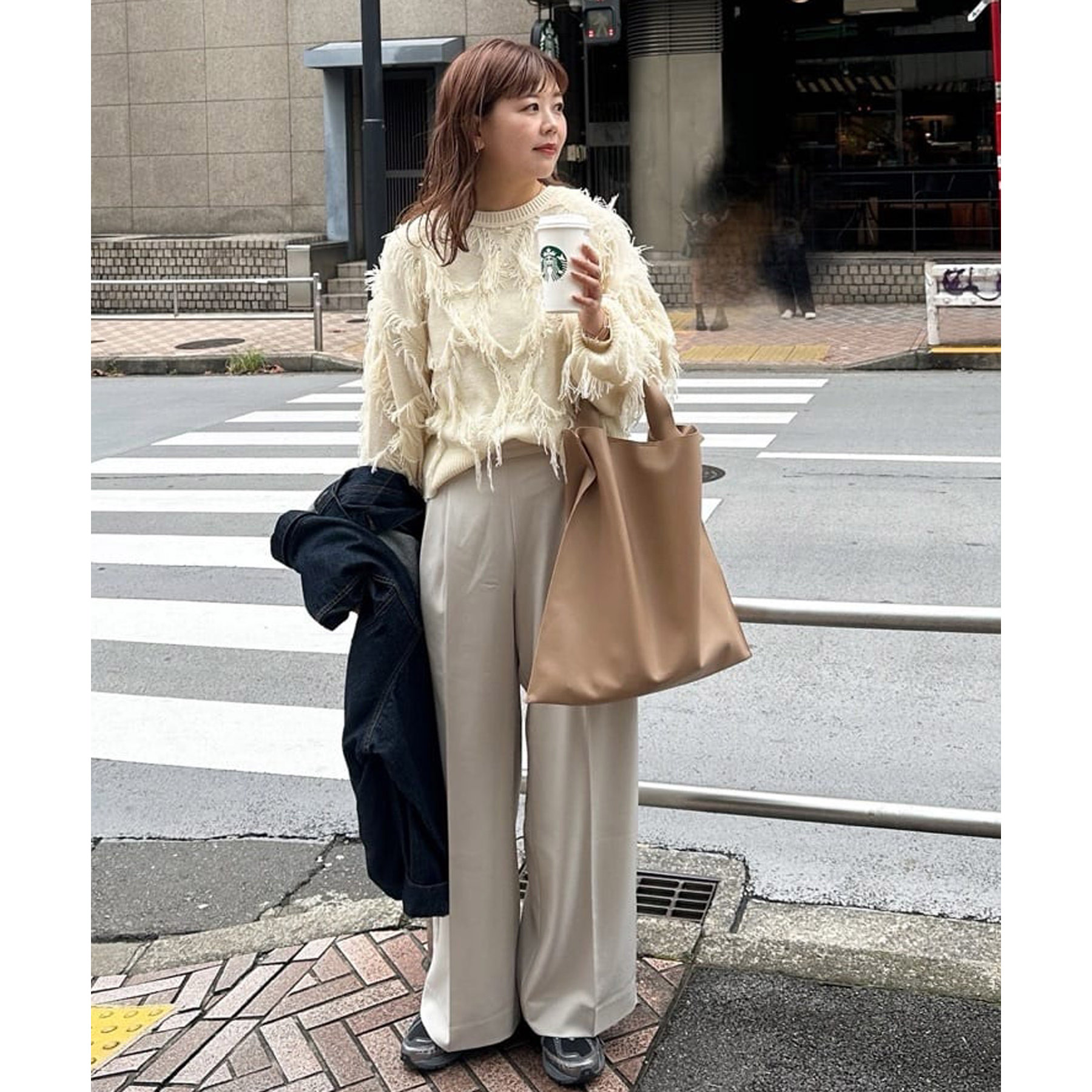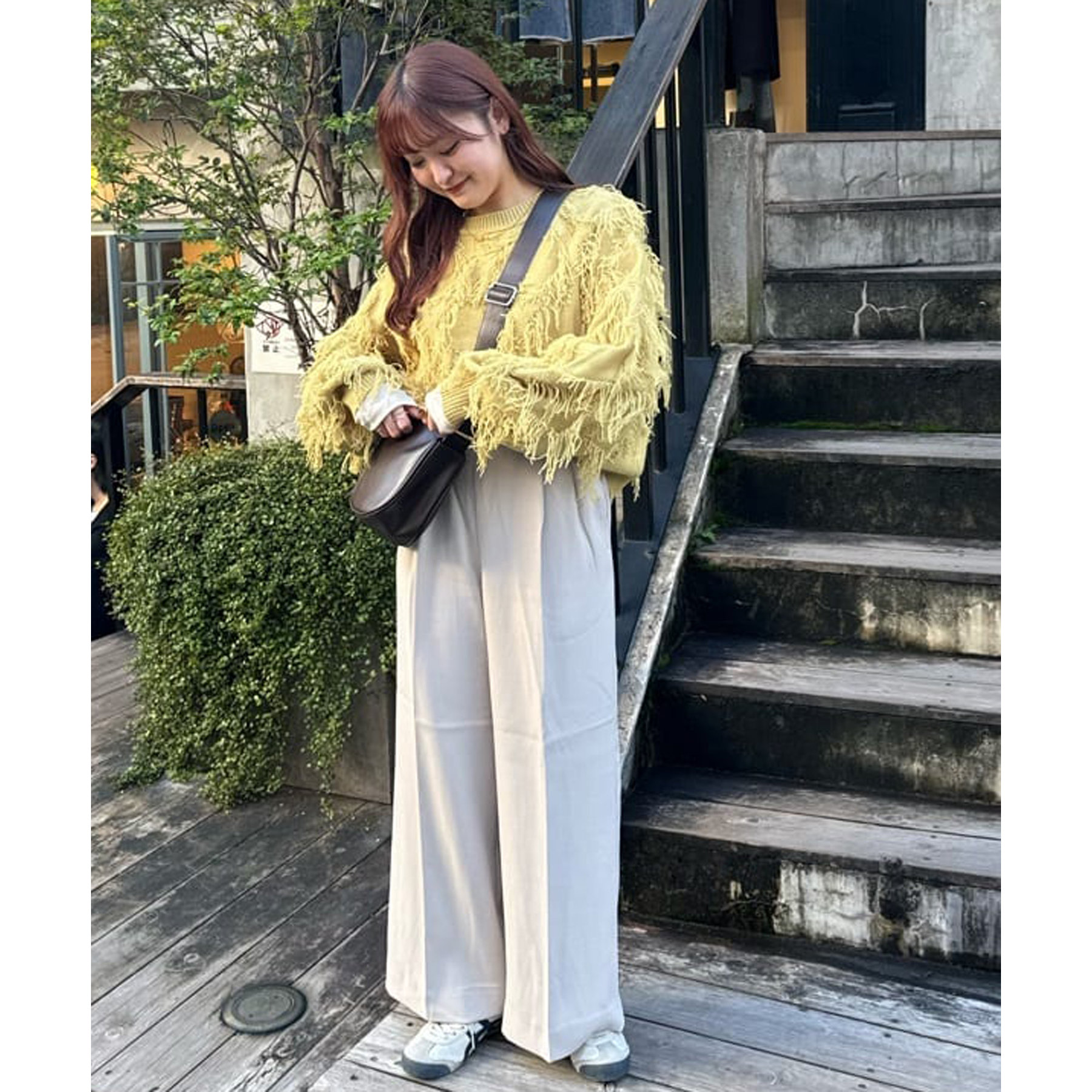 158cmスタッフ:フリンジの形がひし形になるようにクロスに入っているので、甘くなりすぎないです!インしてもごわつきにくい丈感〇