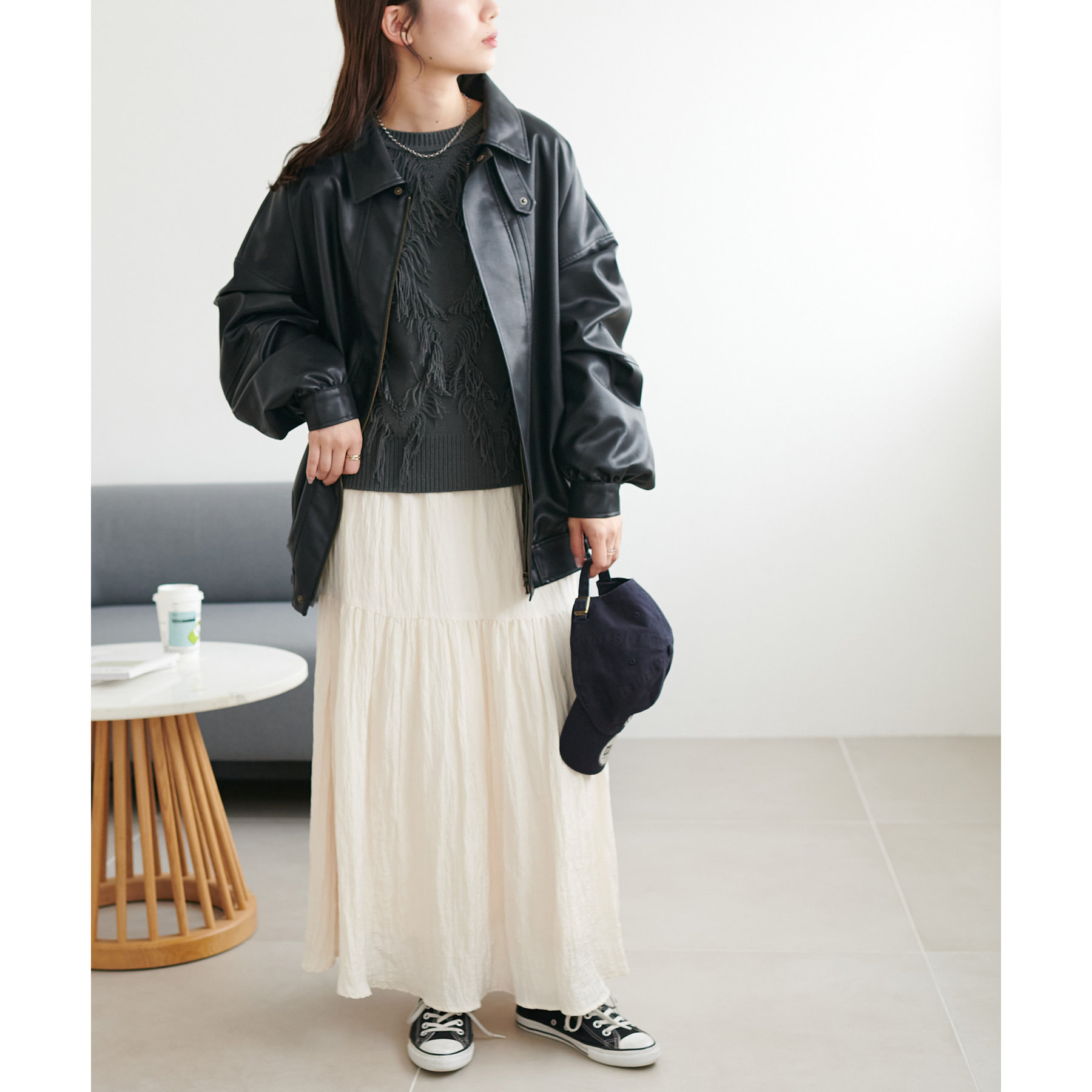 【WEB限定/サイズ展開あり】サテンワッシャーボリュームティアードスカート