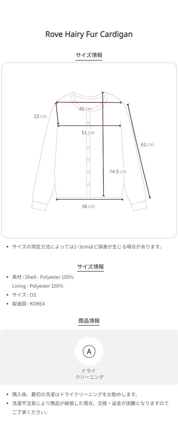 ※ 洗濯後の着用を推奨しており、洗濯後も着用時に自然な毛落ちが発生する場合があります。