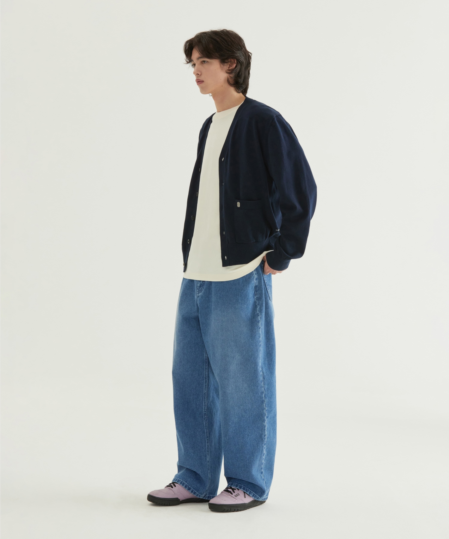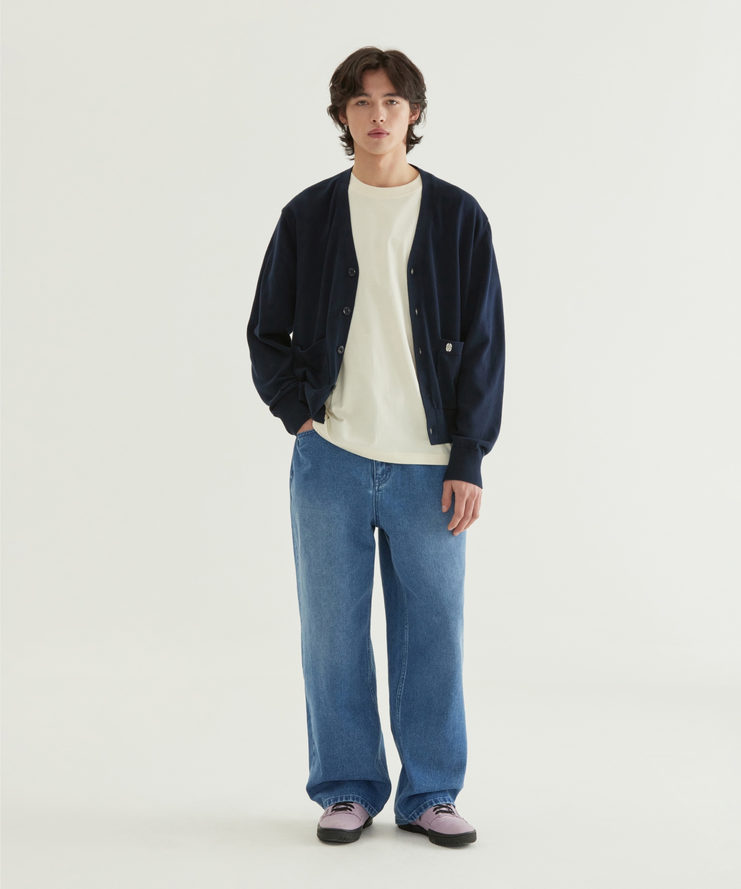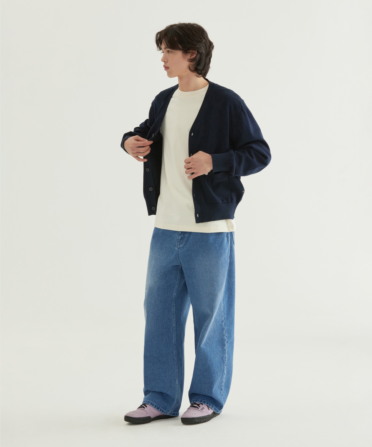 V-NECK KNIT CARDIGAN - Navy