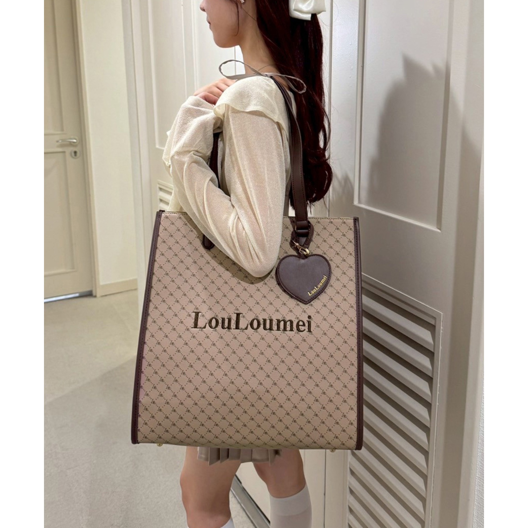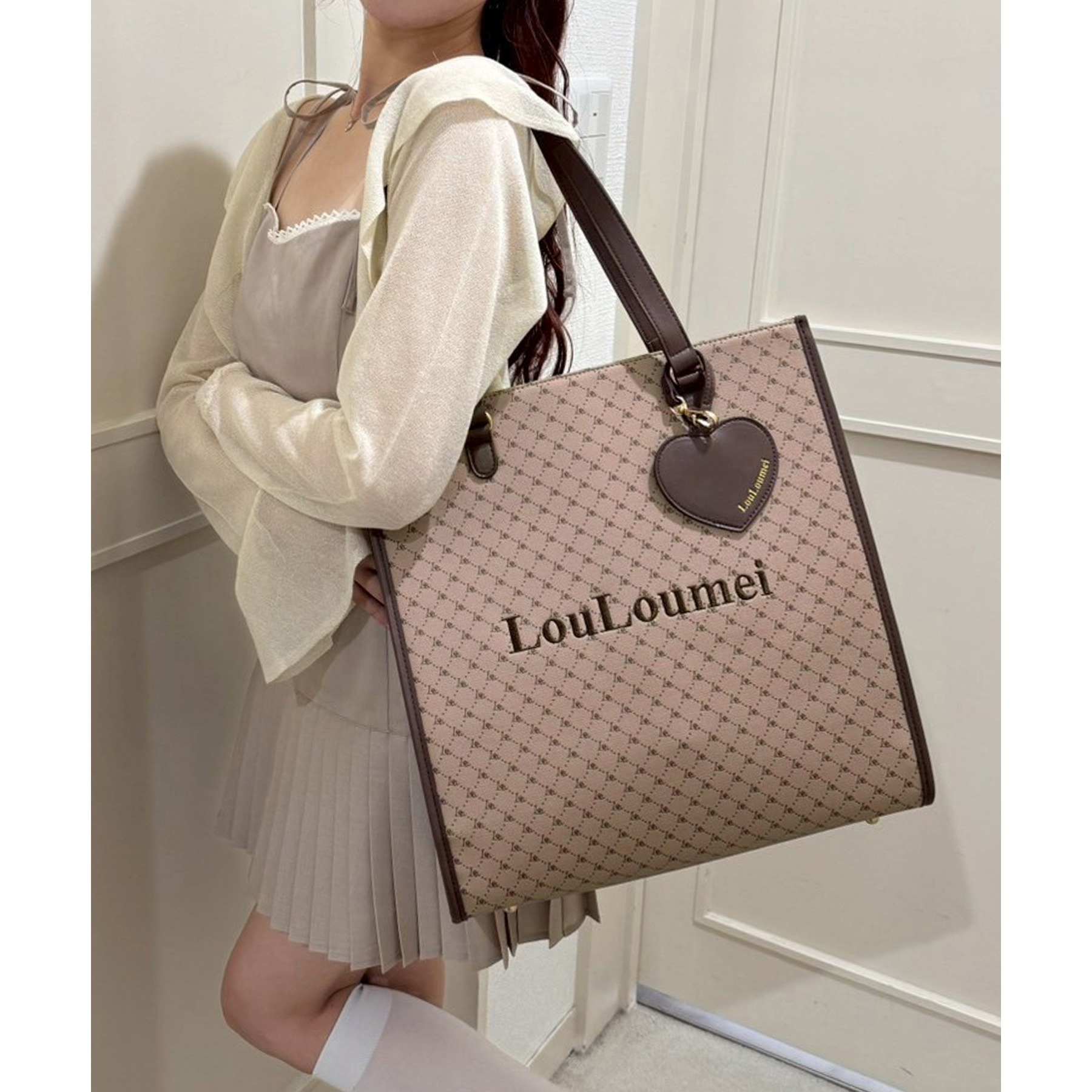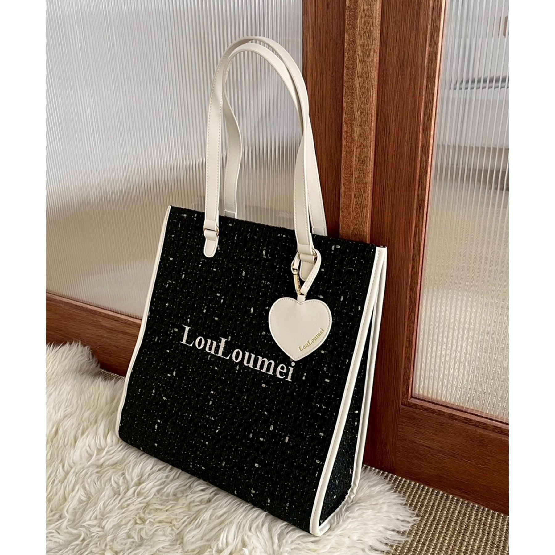 【LouLoumei】ハートチャーム付きトートバッグ/推し活にも/自立可能